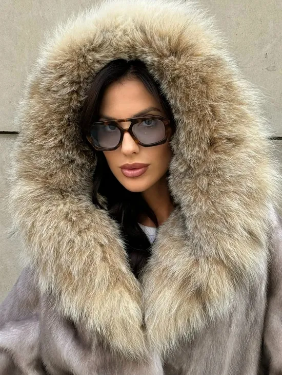 Норковые шубы с капюшоном из куницы