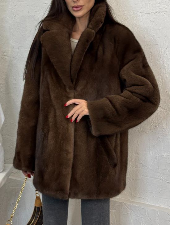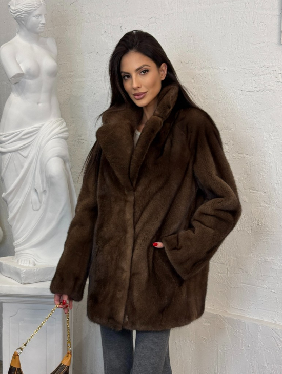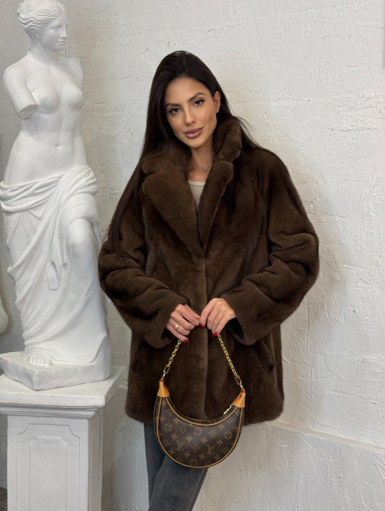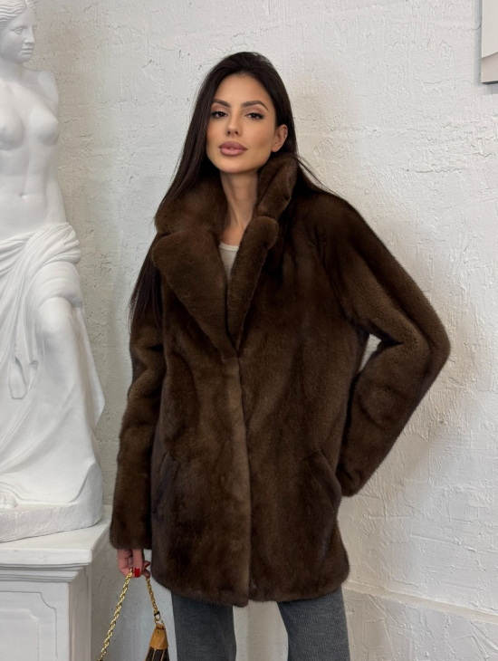 Полушубок женский из меха аукционной норки Браун Вельвет