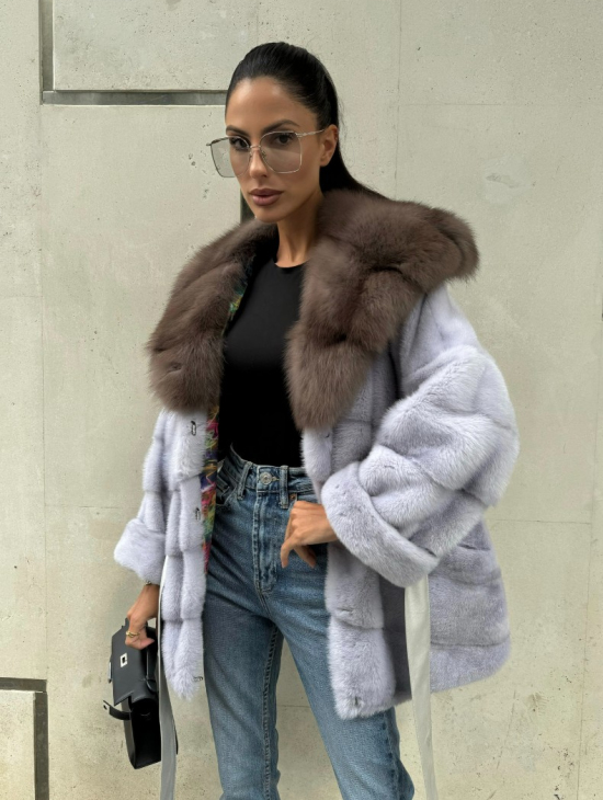 Женская норковая шуба в стиле «Бохо» с отделкой на воротнике и рукавах из меха песца