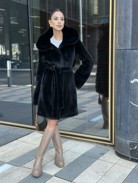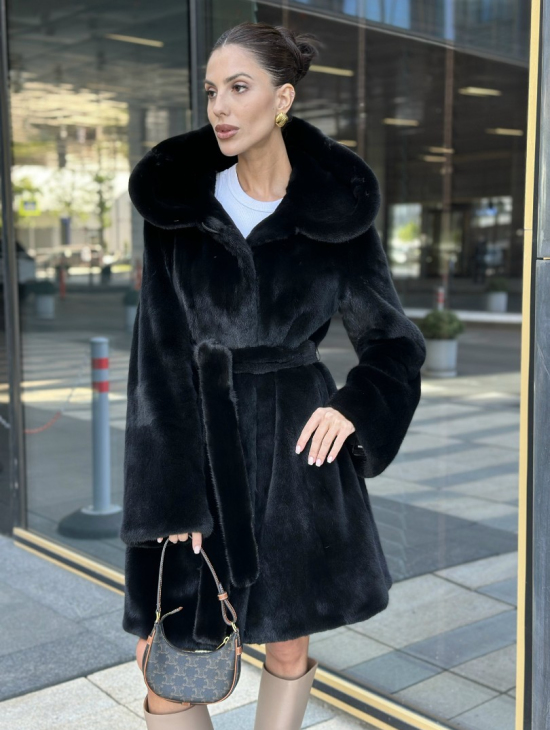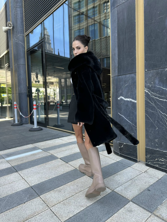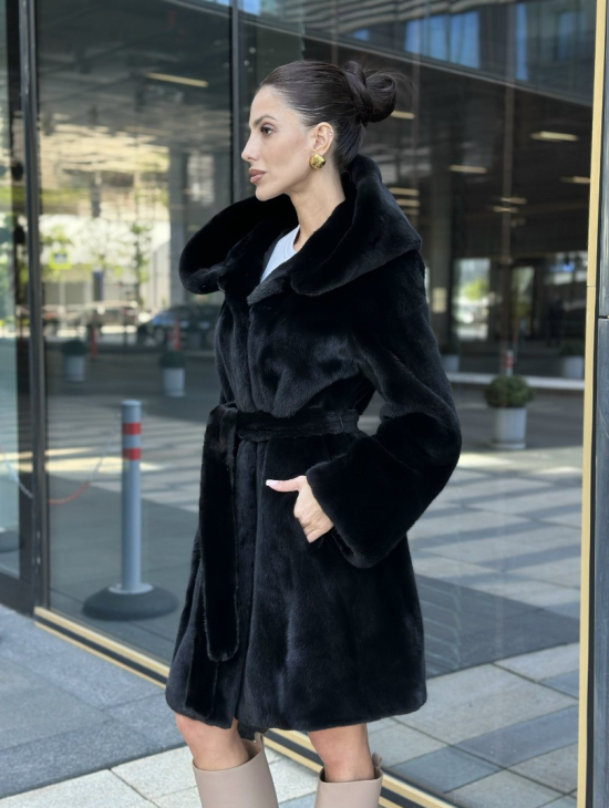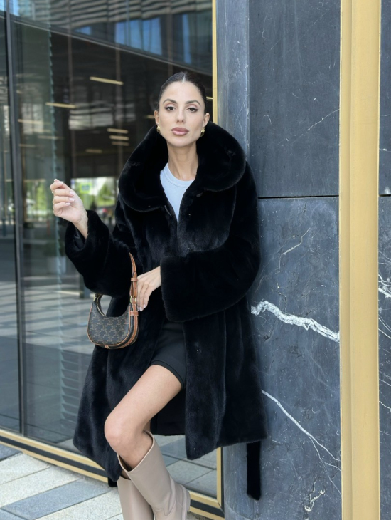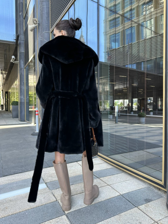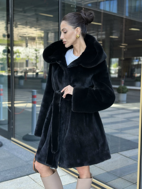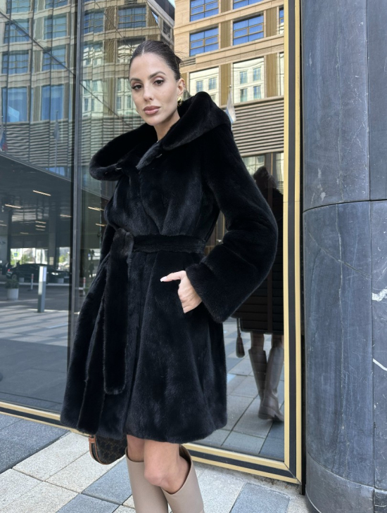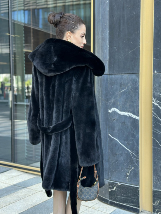 Шуба норковая с капюшоном, мех BLACKGLAMA