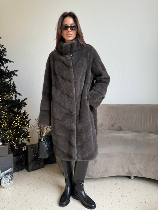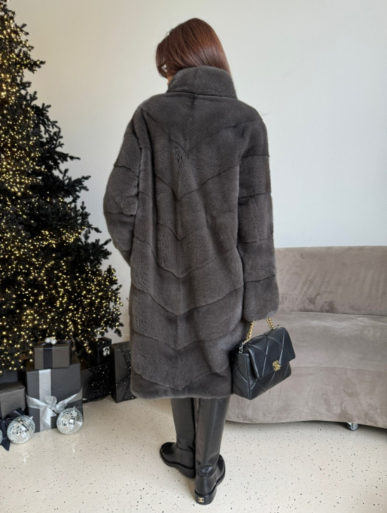Шуба из меха норки в стиле Oversize - цвет тиффани