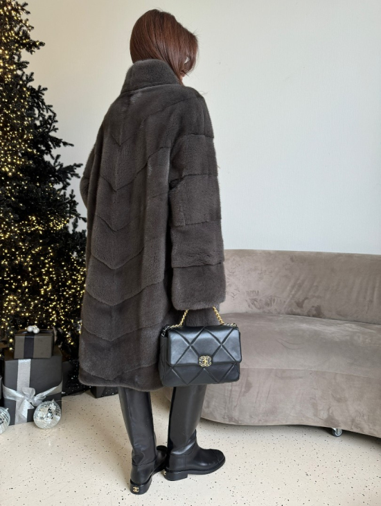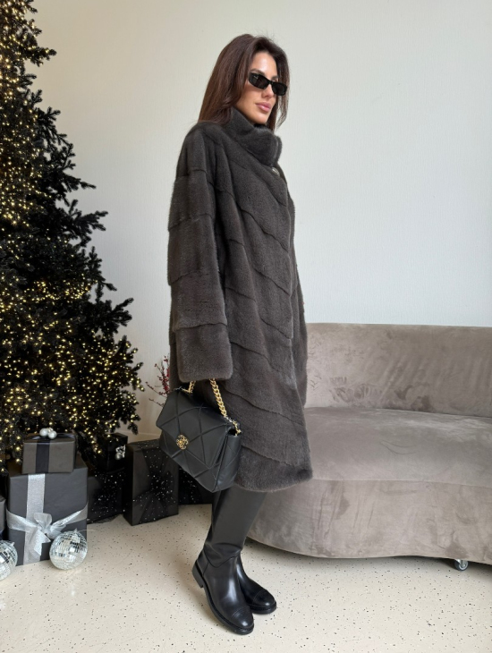 Шуба летучая мышь английский воротник, роспуск мех норка - цвет черный изумруд