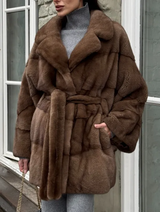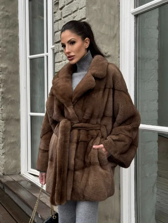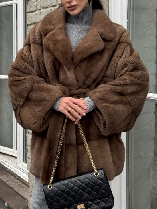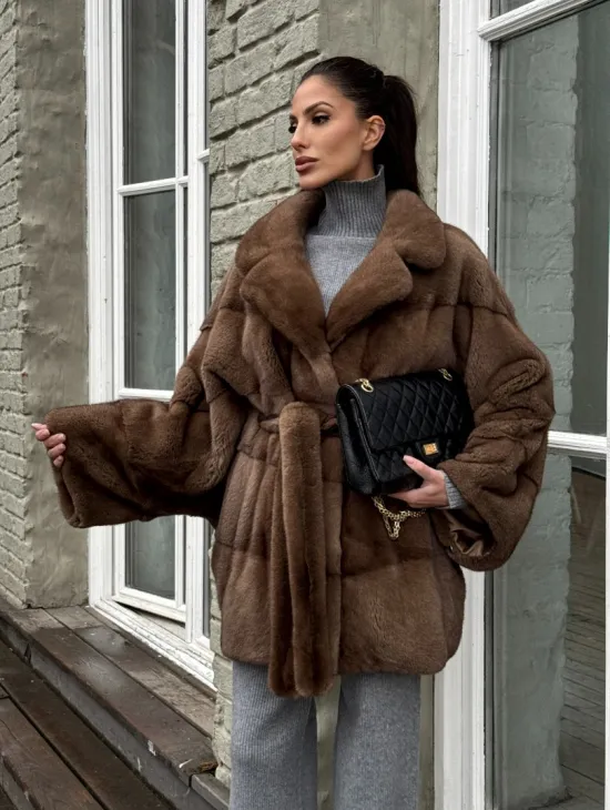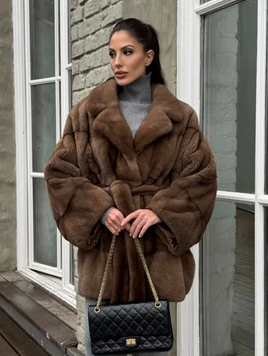 Модная шуба 2025 из меха норки NAFA премиум класса - фасон летучая мышь