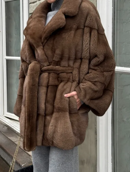 Premium шуба Летучая мышь из меха норки SAGA FURS с потайным меховым поясом