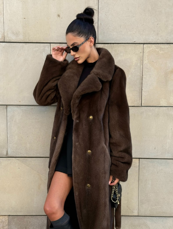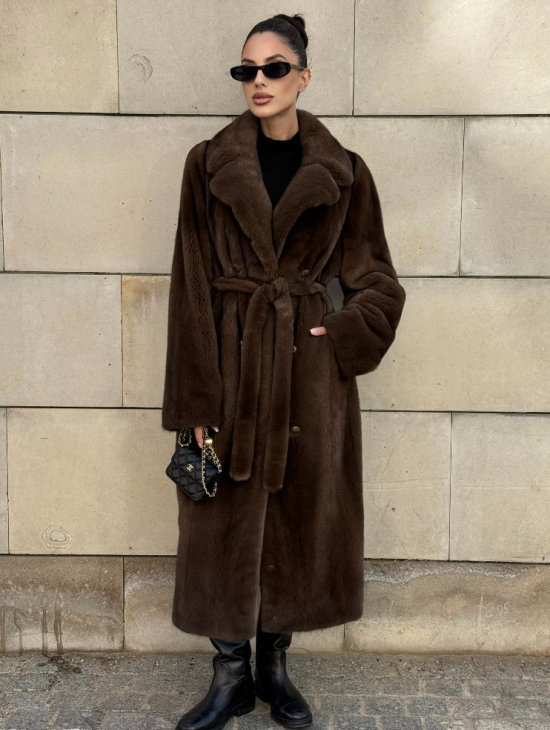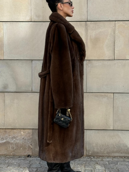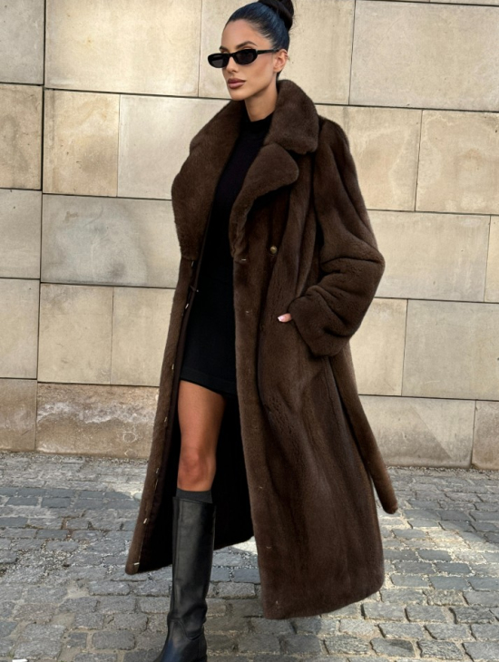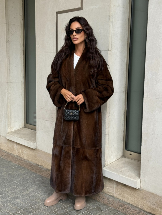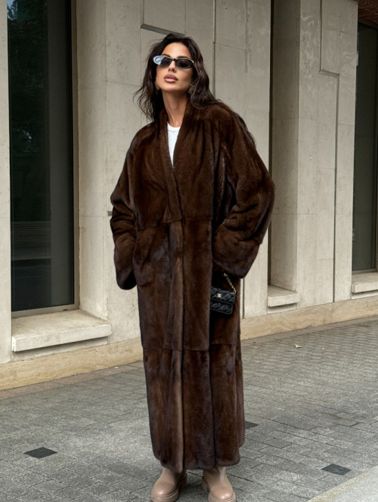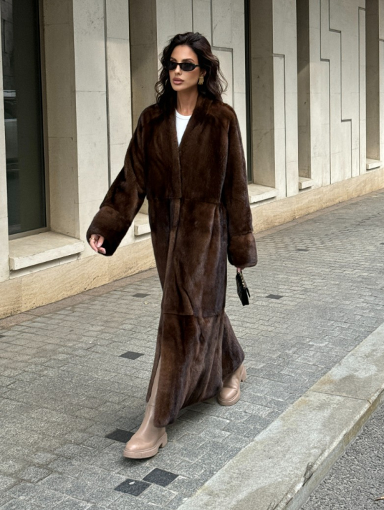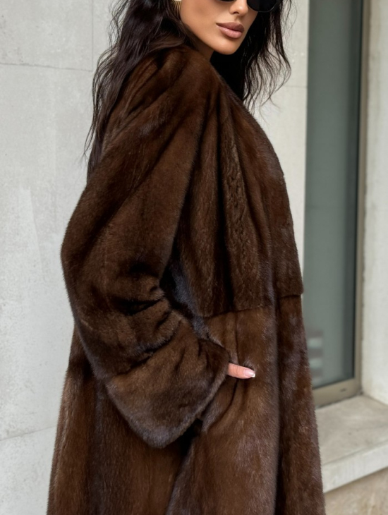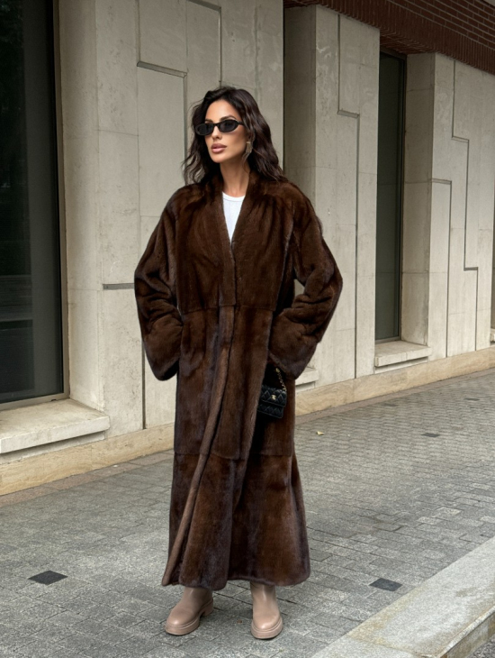 Шуба кимоно из меха североамериканской норки, английский воротник