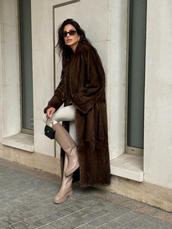 Длинная шуба ВИНТАЖ из меха скандинавской норки без воротника