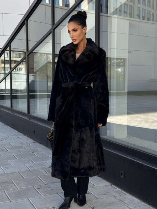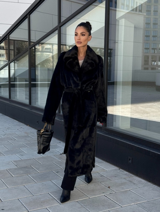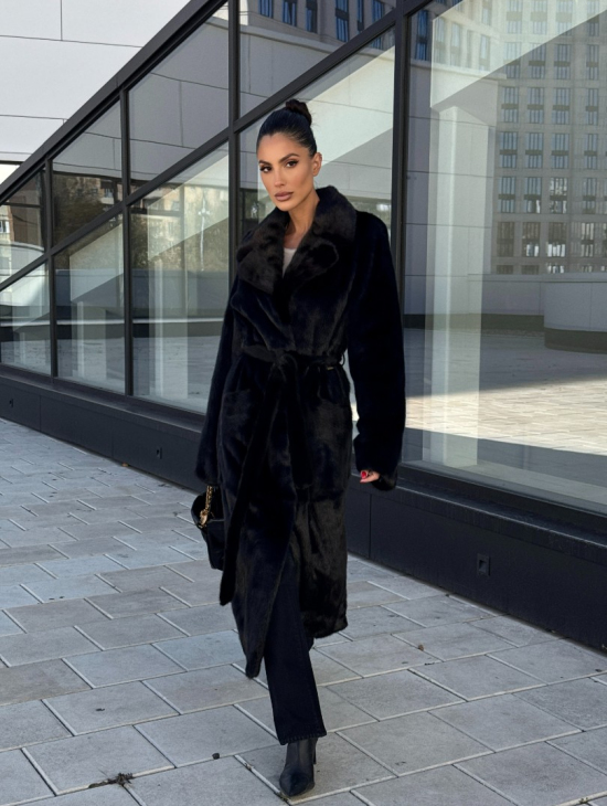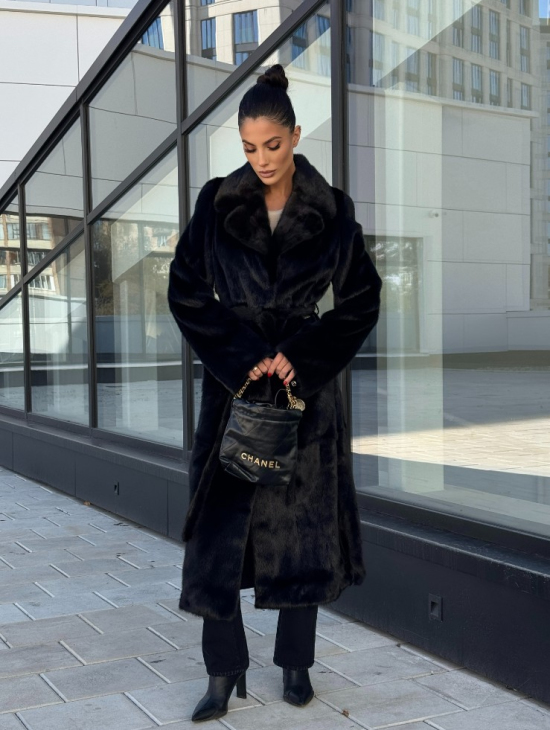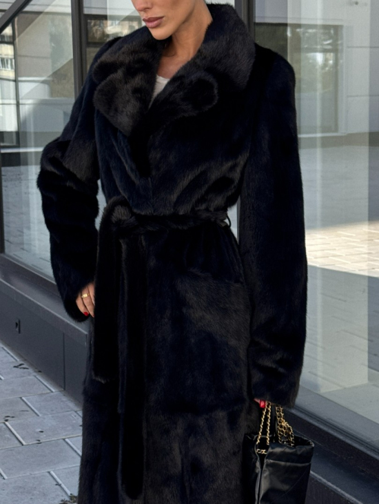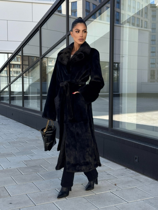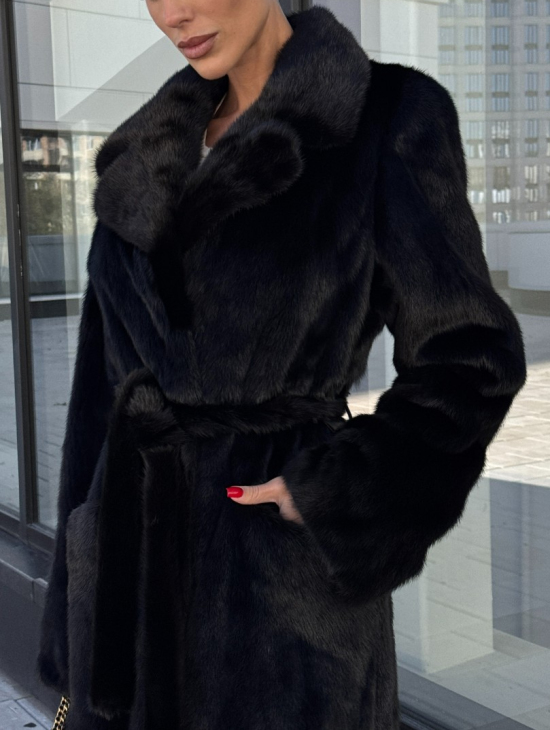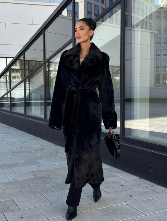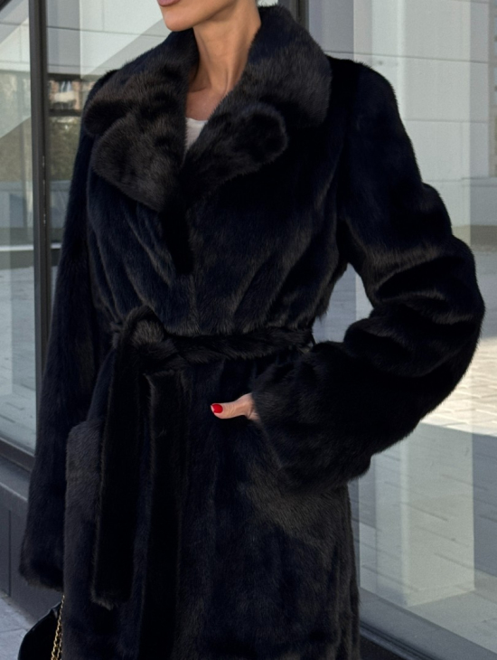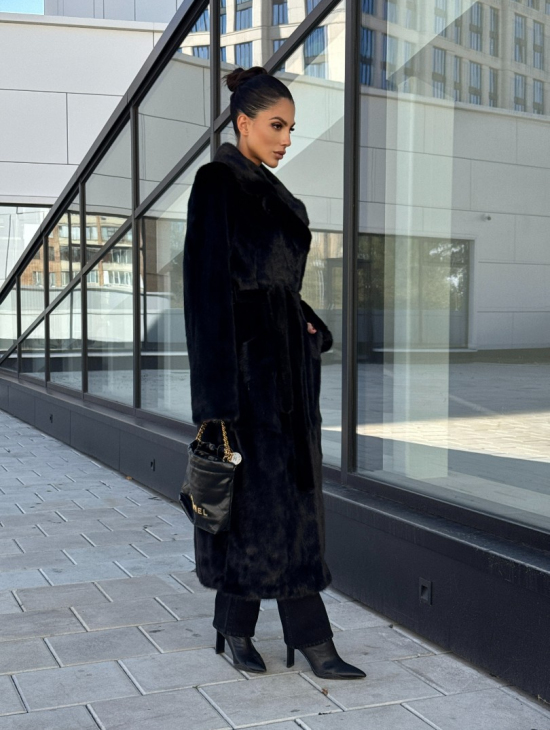 Классическая норковая шуба в финской норке Black с накладными карманами