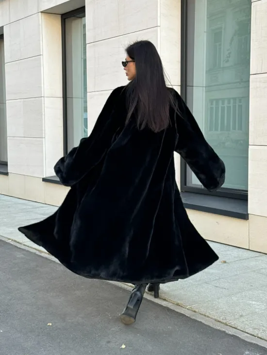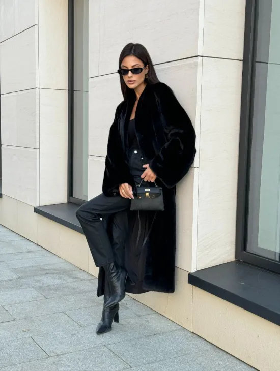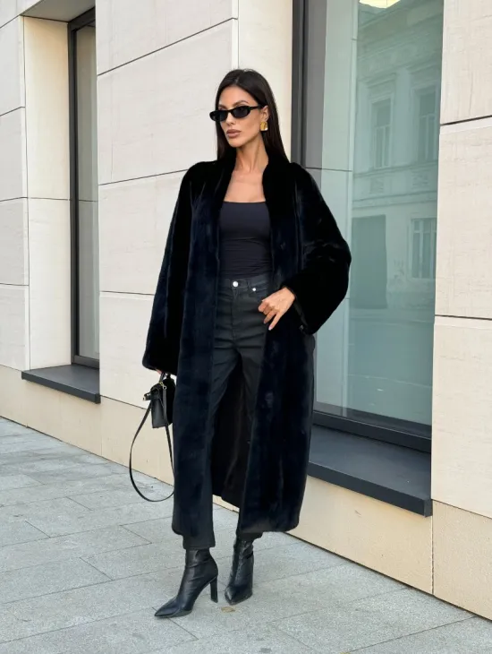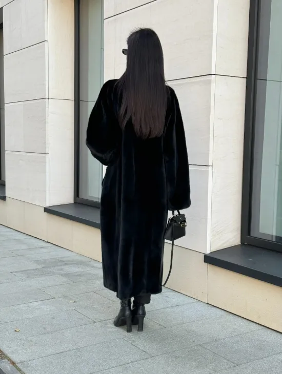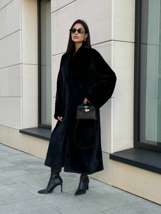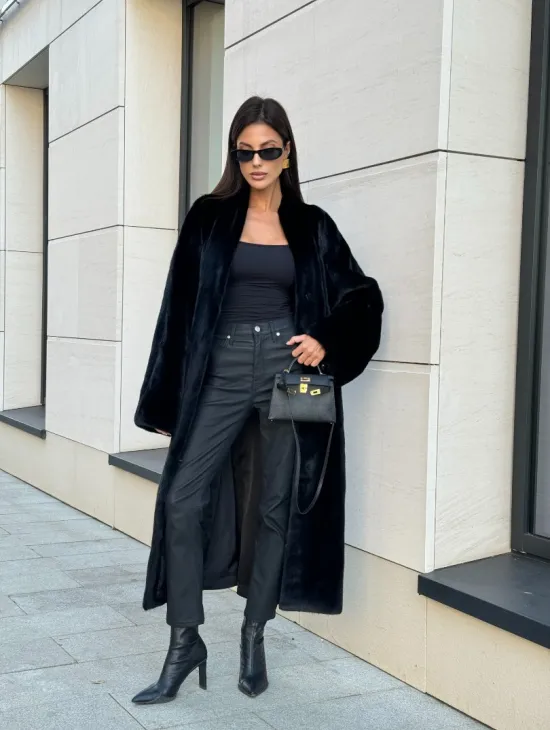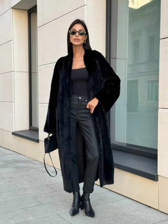 ЧЁРНАЯ НОРКОВАЯ ШУБА NAFA MINK С ПОЯСОМ В ПОЛ