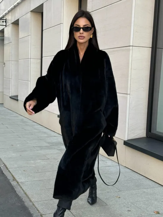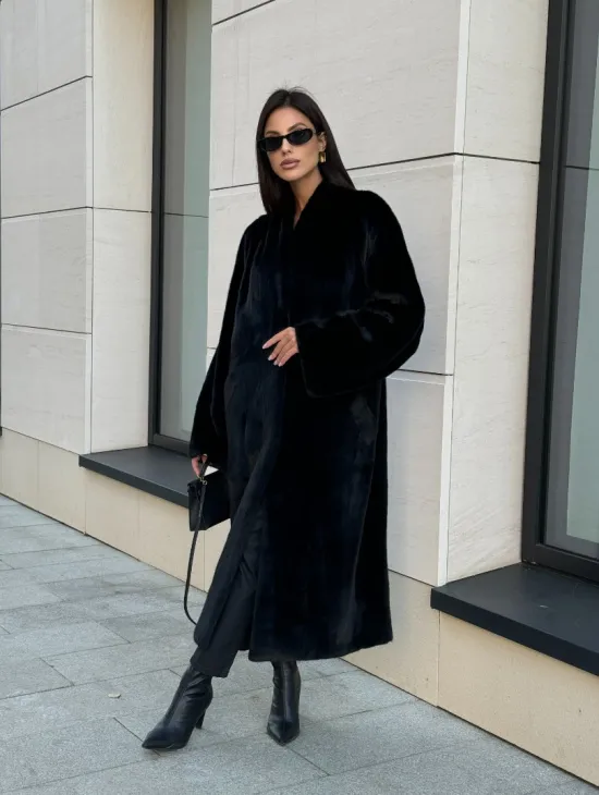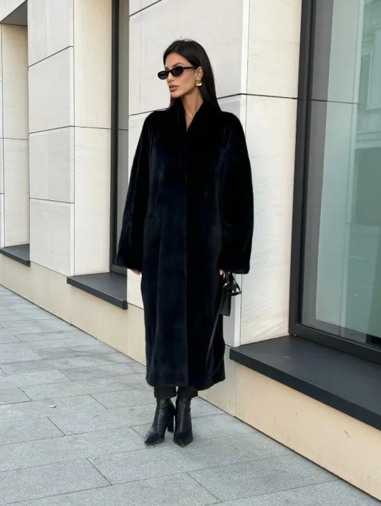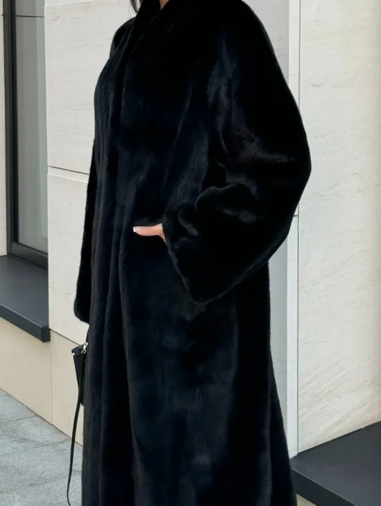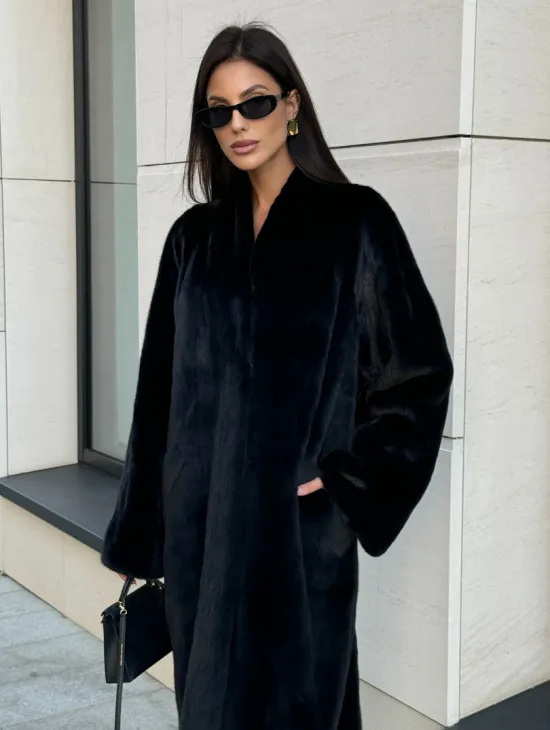 Длинная шуба кимоно Luxury Fashion из меха норки SAGA FURS - английский воротник
