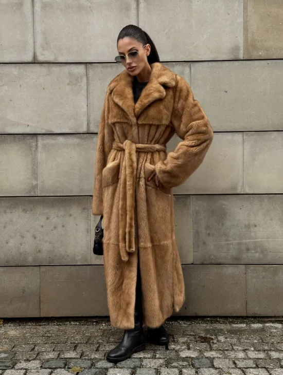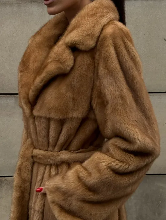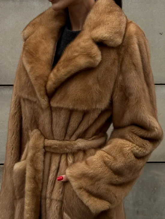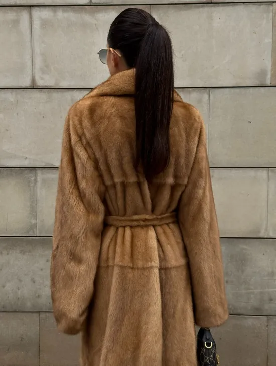 Шуба из меха аукционной норки Vintage Gold с меховым поясом