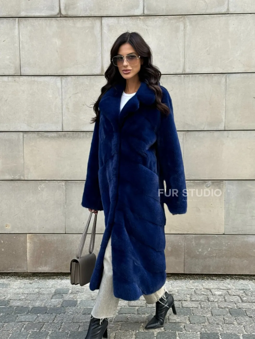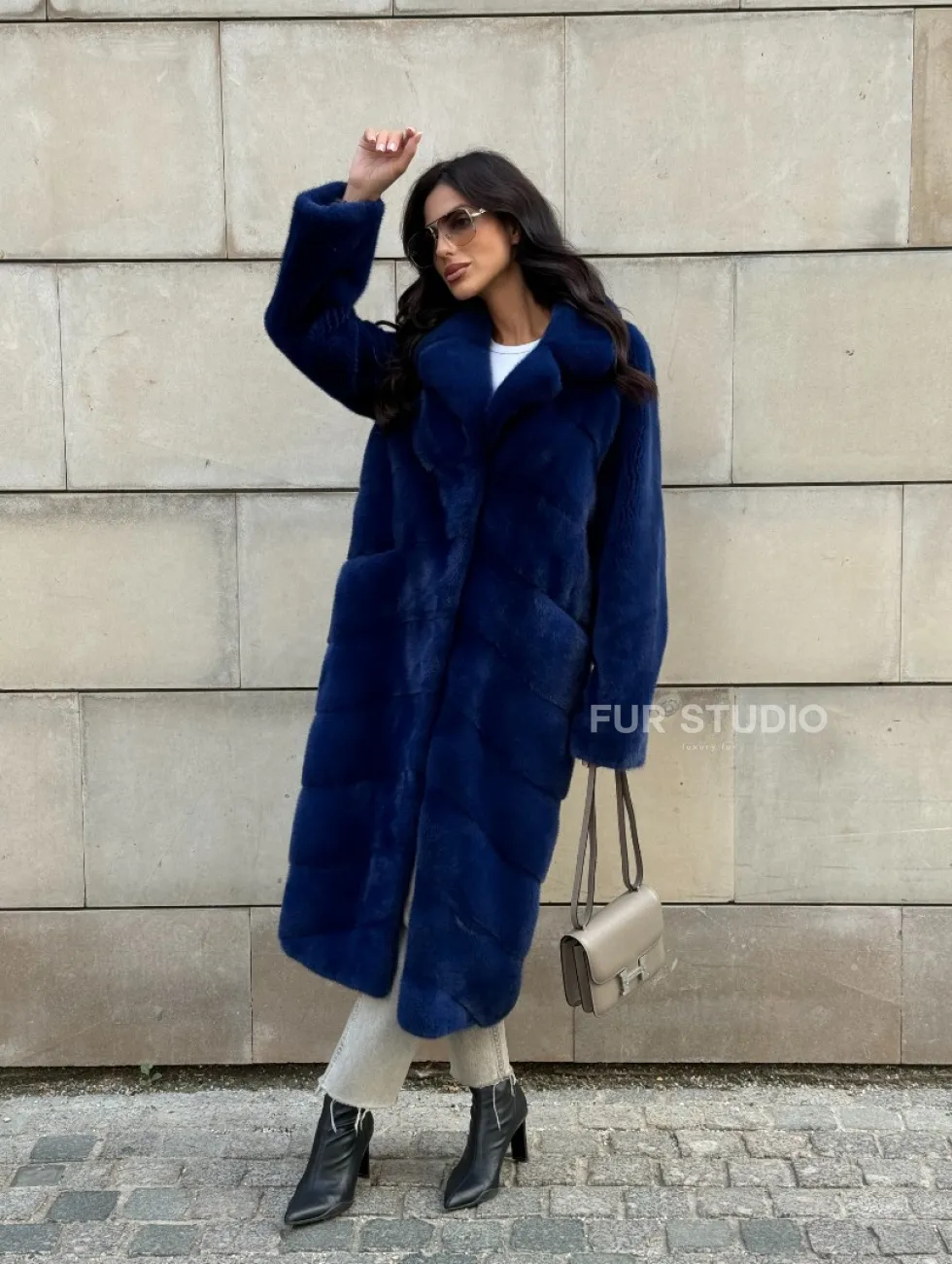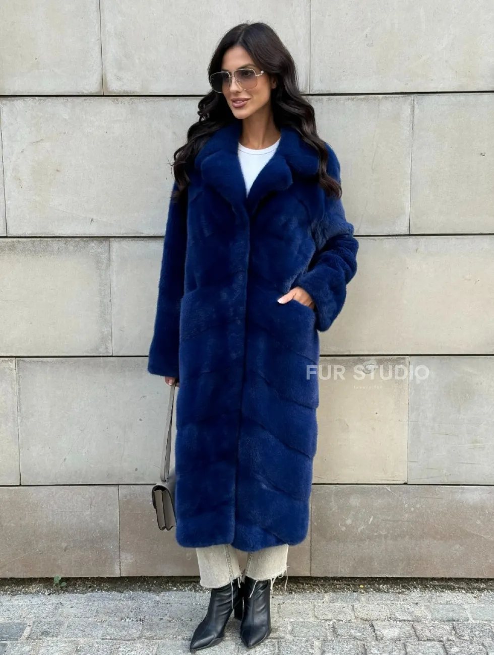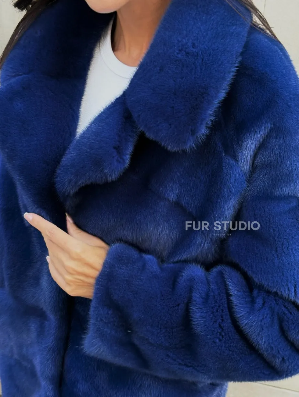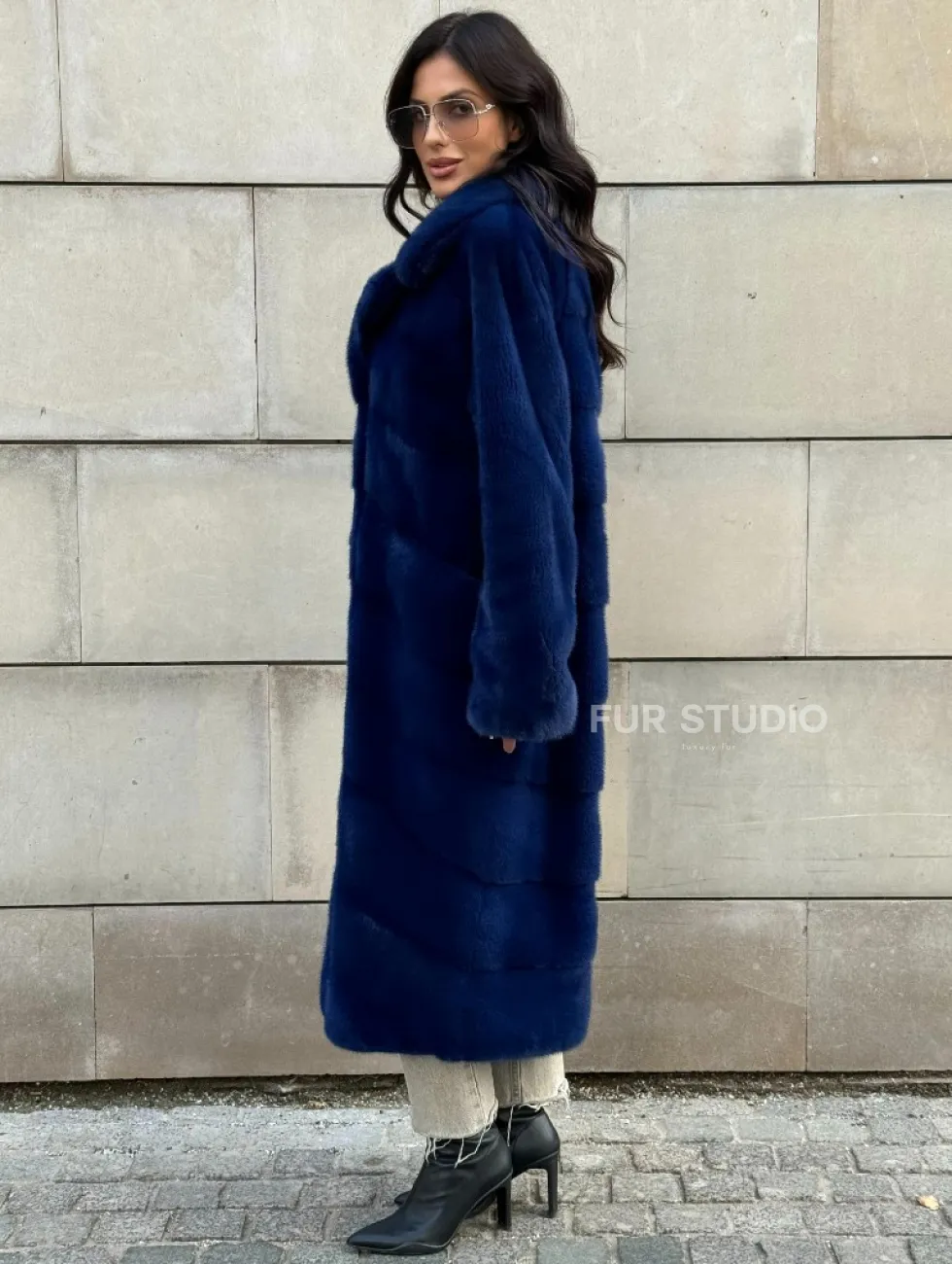Синяя шуба из аукционного меха норки - английский воротник доступна для покупки в нашем шоуруме Furs Studio в Чите. У нас так же есть доставка во все города России. Добавьте немного роскоши в свой гардероб с этой шубой, которая будет служить вам многие годы.