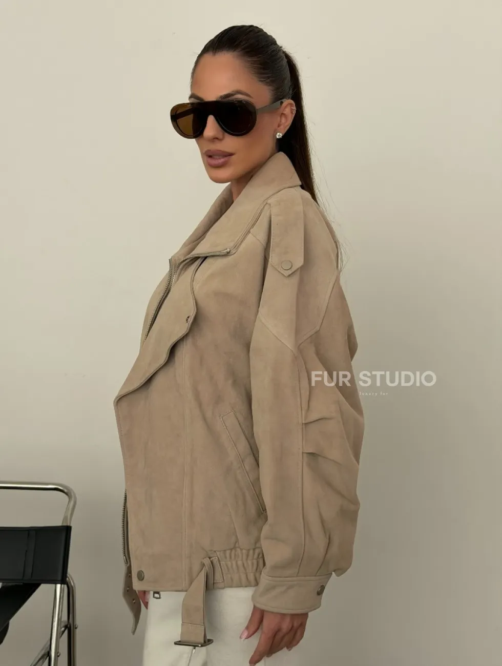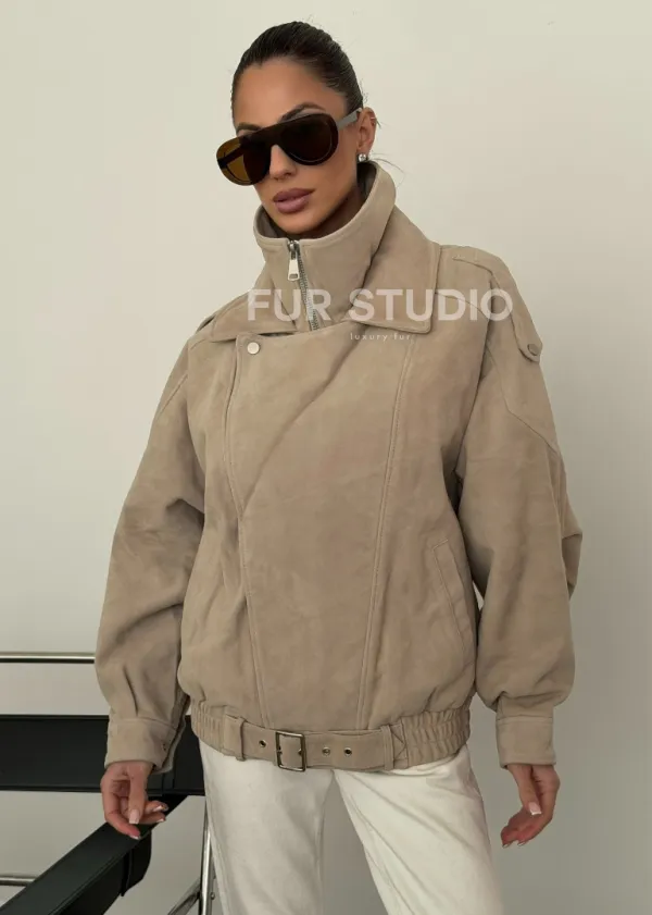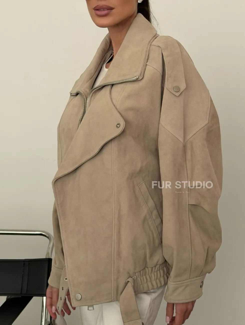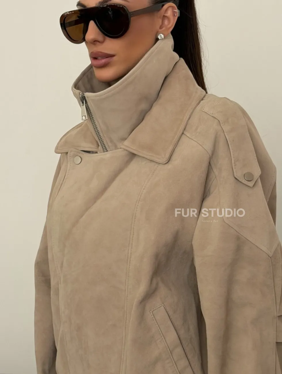 Современная куртка из замшевой кожи доступна для покупки в нашем шоуруме Furs Studio в Чите, где также предоставляется удобная доставка во все города России.