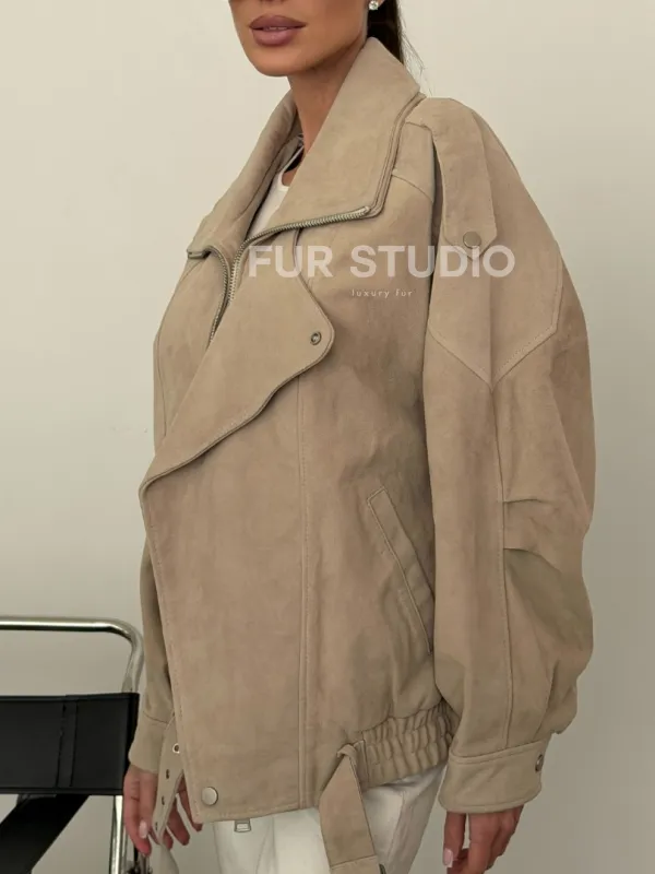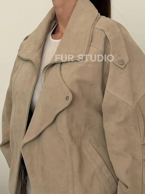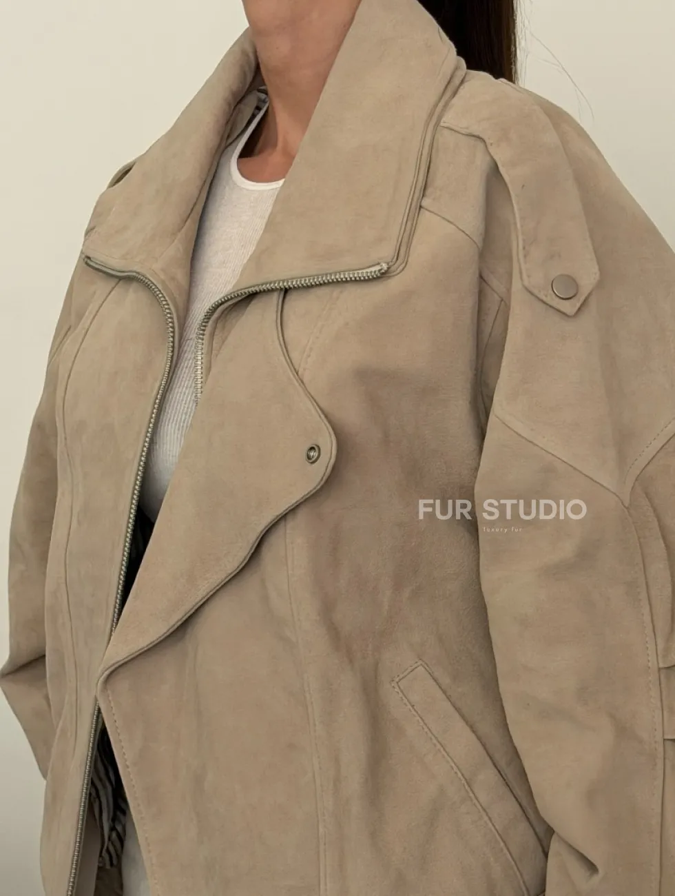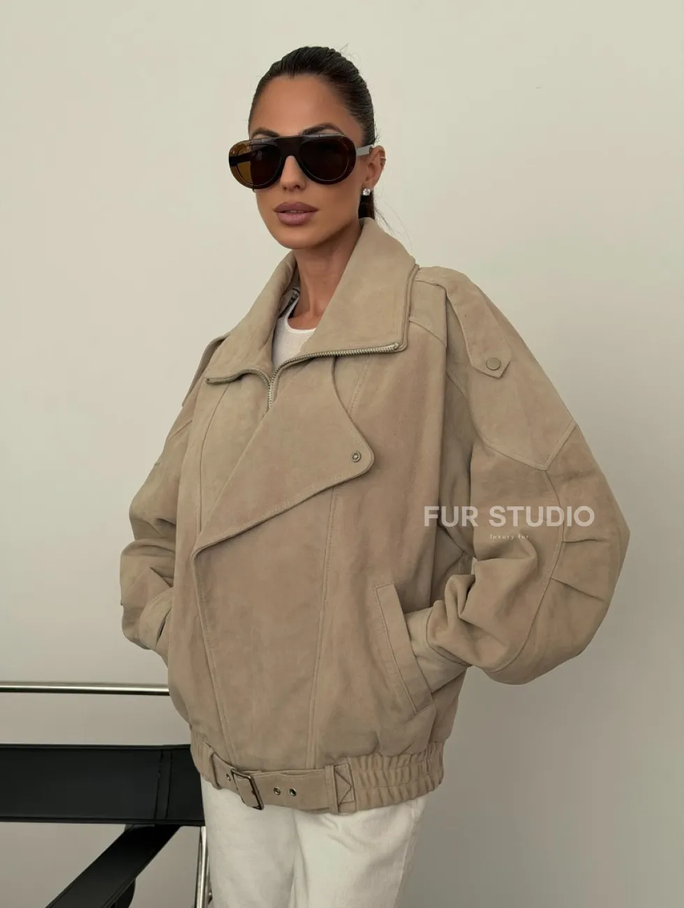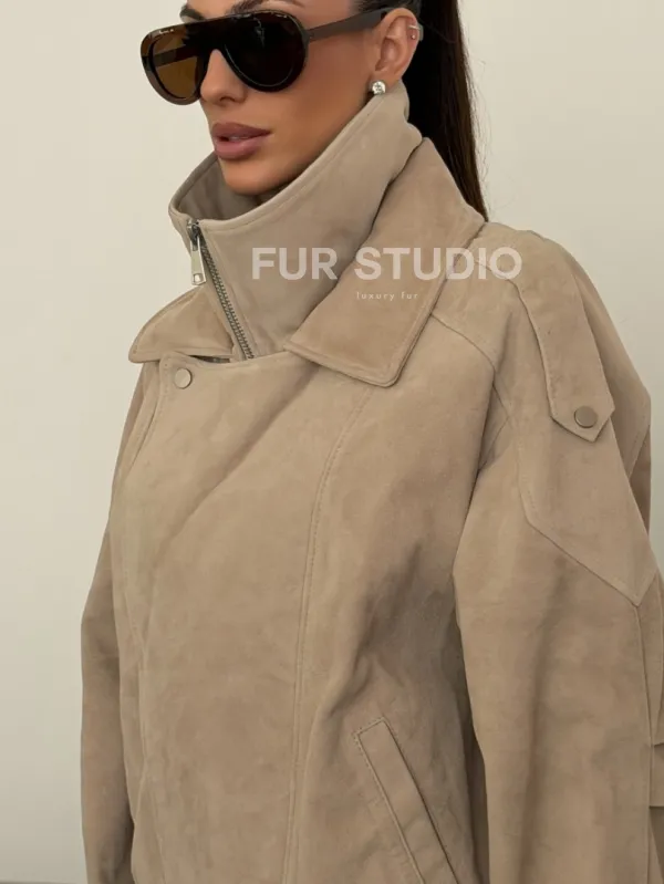 Современная куртка из замшевой кожи доступна для покупки в нашем шоуруме Furs Studio в Чите, где также предоставляется удобная доставка во все города России.