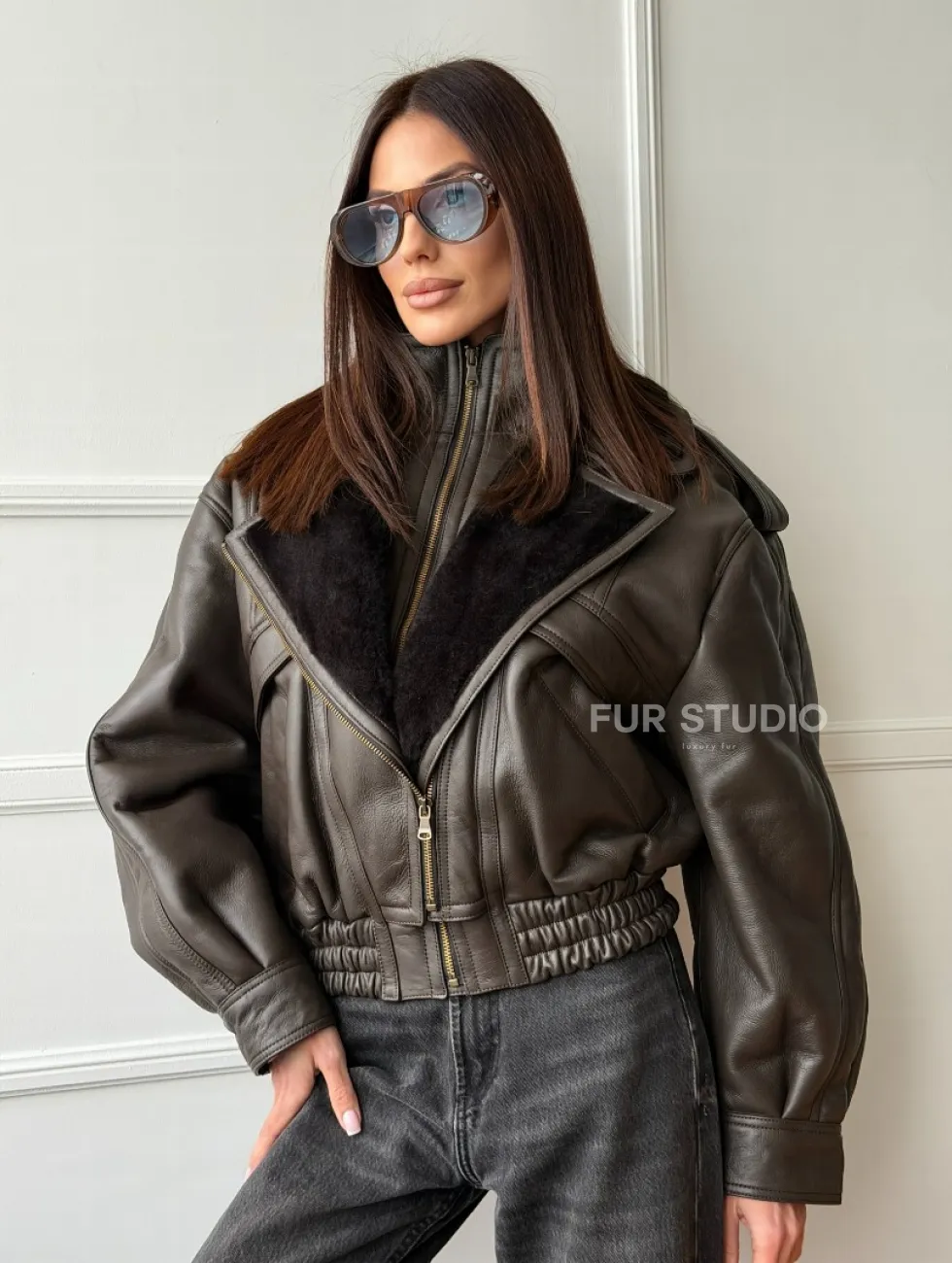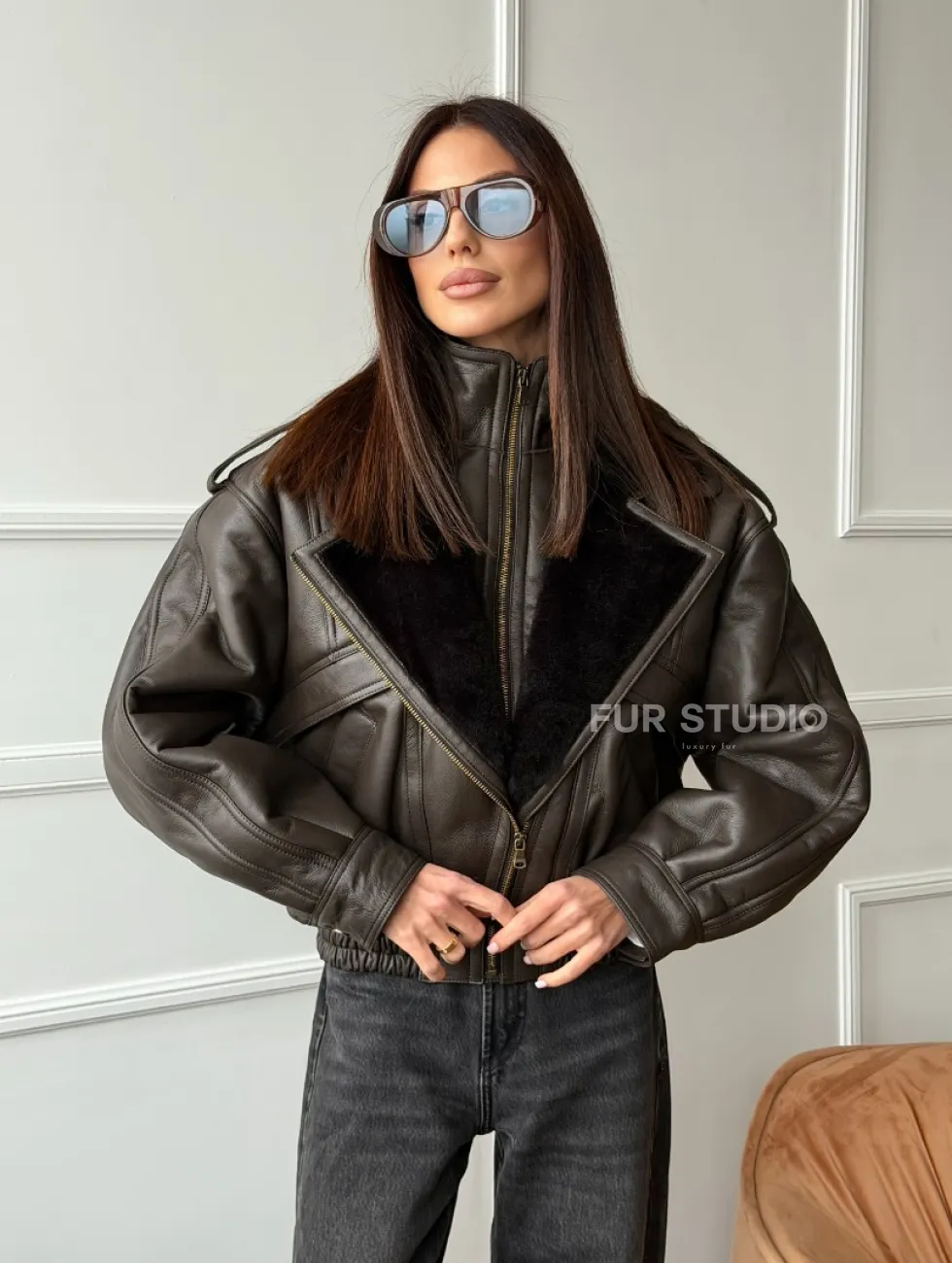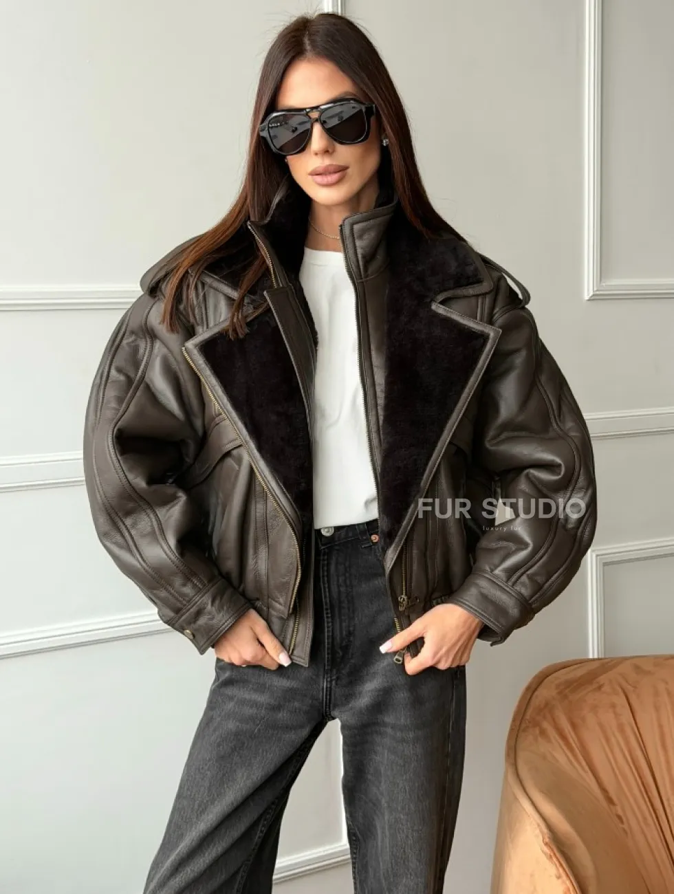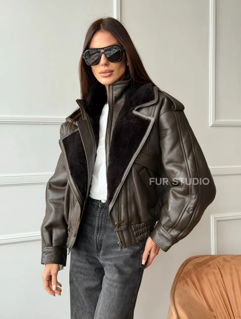 Стильная куртка - дубленка из овчины. Модель предлагается в размерах от 42 до 48. Оптимальная длина моделей 55-60 см подчеркивает линии вашей фигуры. Эта дубленка станет неотъемлемой частью гардероба для тех, кто предпочитает роскошь и утонченность натуральной кожи.