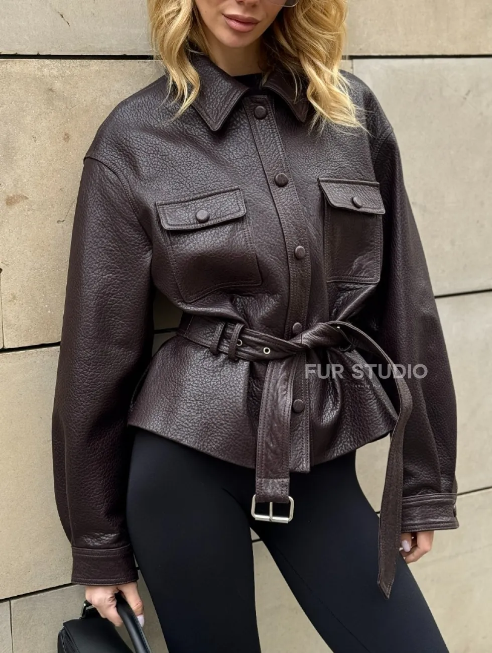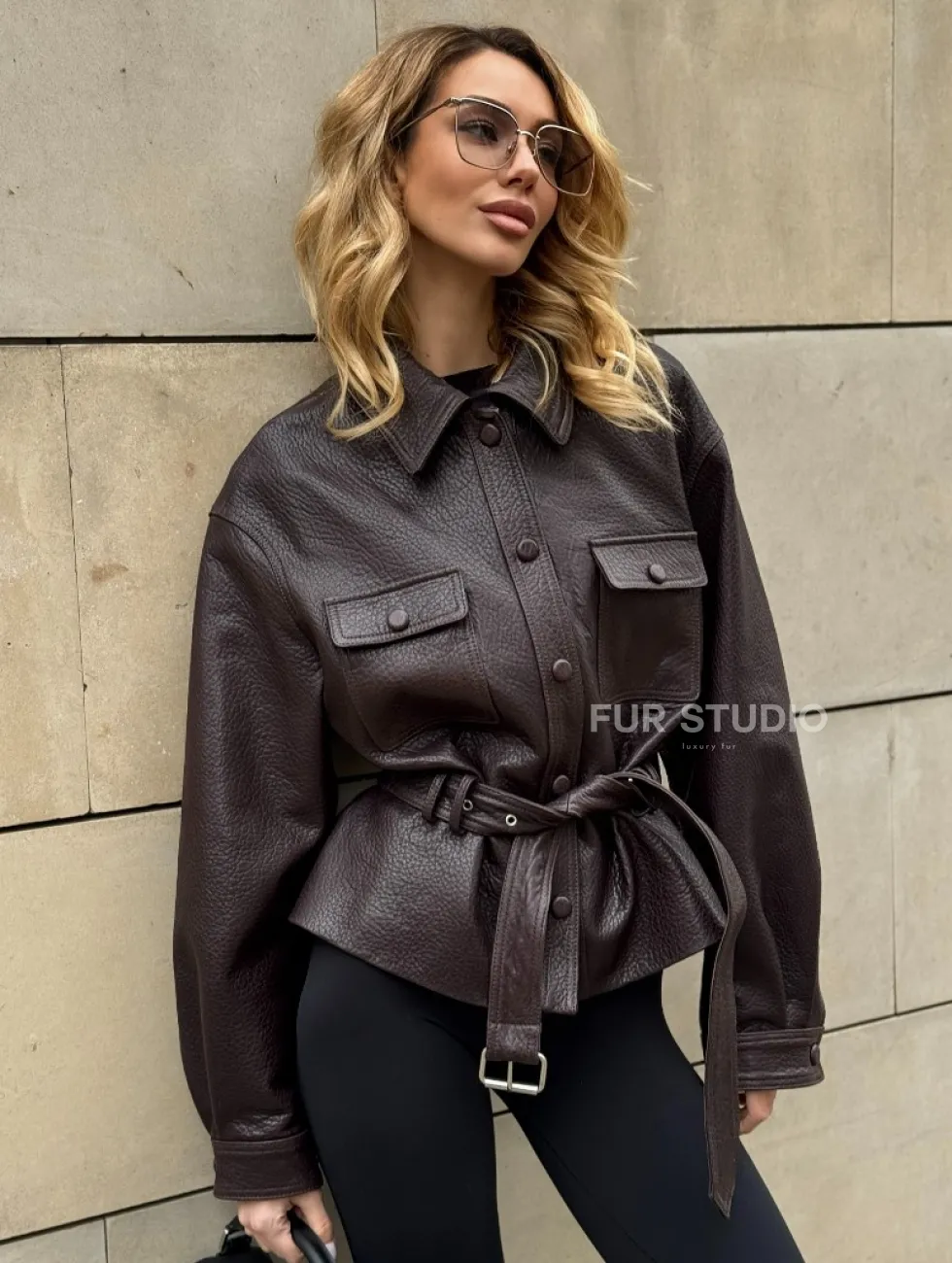 Стильная куртка - рубашка из натуральной кожи Joomba средней длины доступна для покупки в нашем шоуруме Furs Studio в Чите, где также предоставляется удобная доставка во все города России.