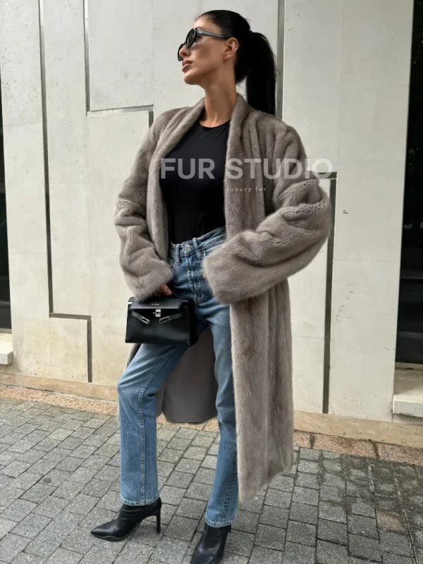 Мех данной шубы аукционная норка, цвет серый. Предлагается в размерах от 42 до 50. Длина модели 105-110 см, что выгодно подчеркивает фигуру девушек. Эта модель идеально подойдет для девушек и женщин, предпочитающих роскошные натуральные меха.