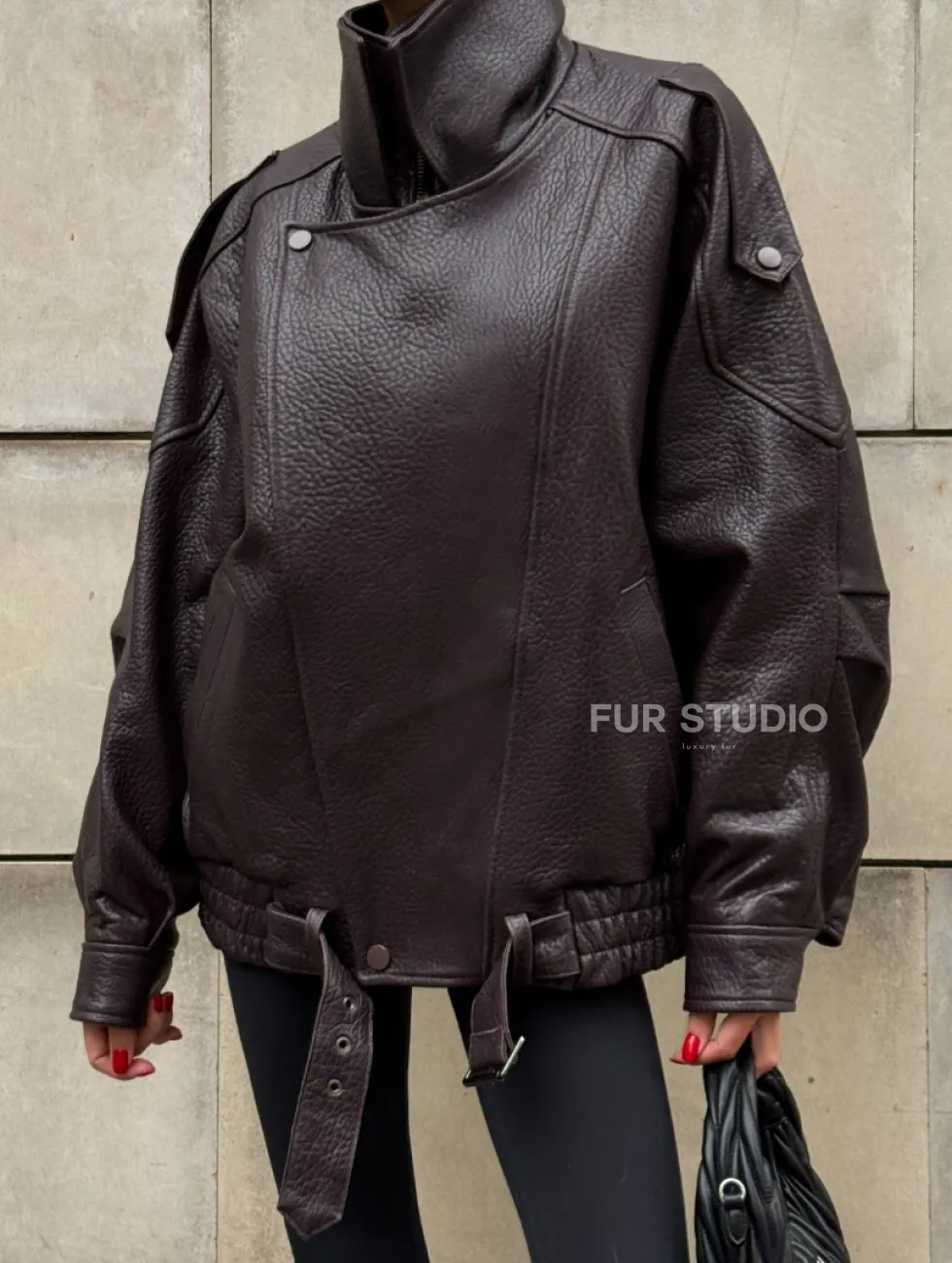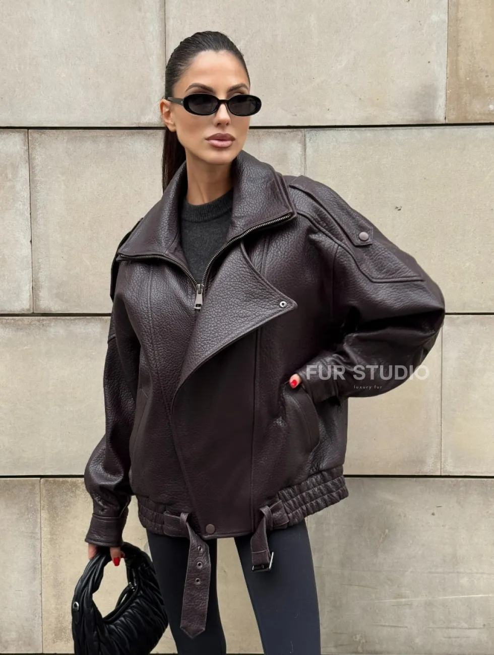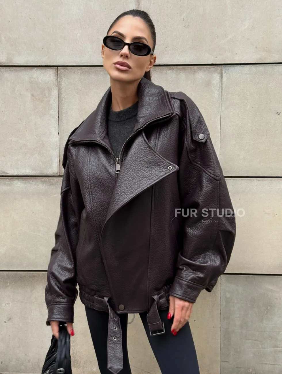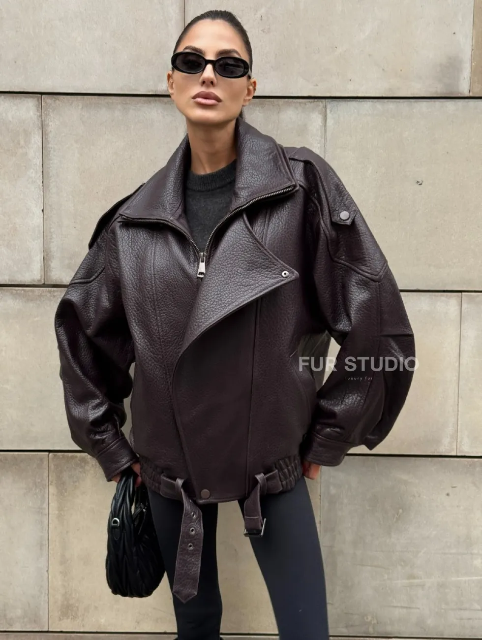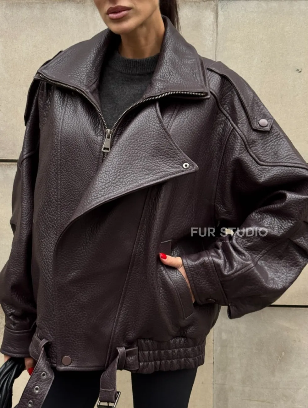 Стильная женская куртка из натуральной зернистой кожи COLLECTION DARK BURGUNDY доступна для покупки в нашем шоуруме Furs Studio в Чите, где также предоставляется удобная доставка во все города России.