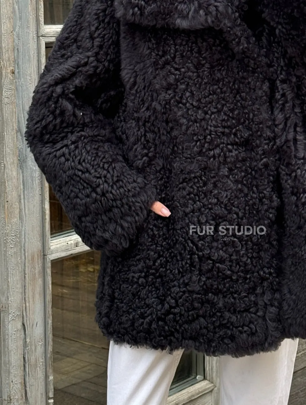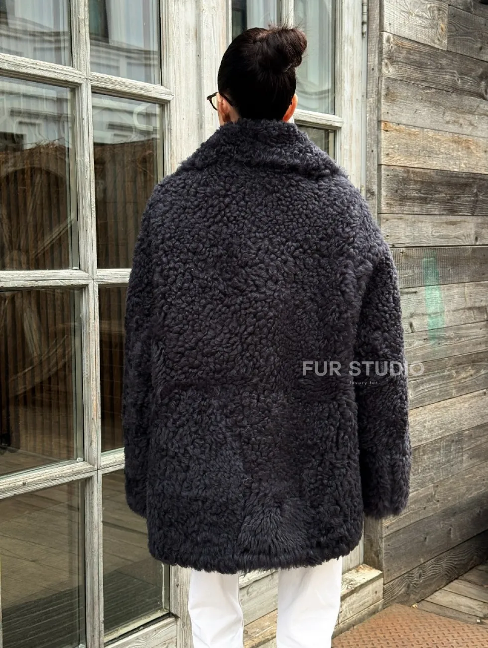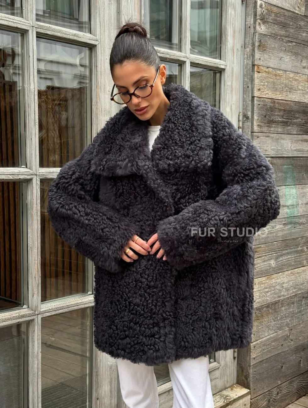 Стильный полушубок из натурального меха тиградо с большим отложным воротником - цвет графит доступна для покупки в нашем шоуруме Furs Studio в Чите, а также предлагается удобная доставка во все города России. Обогатите свой гардероб этой дубленкой, которая прослужит вам многие годы, добавив немного роскоши в ваш повседневный образ.
