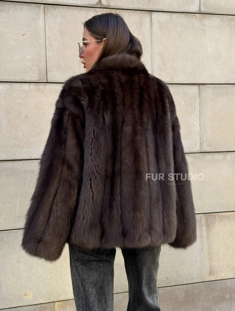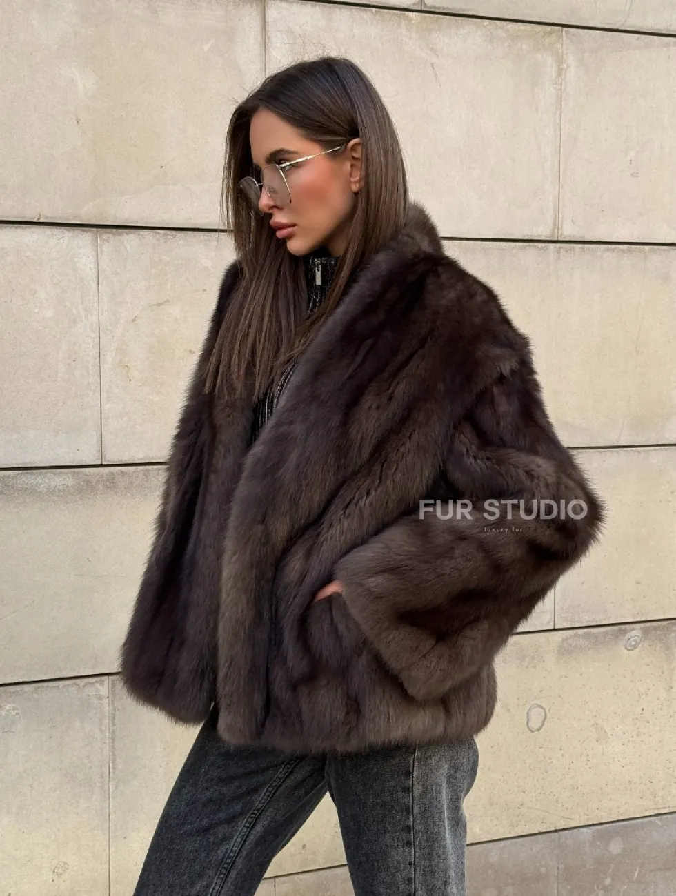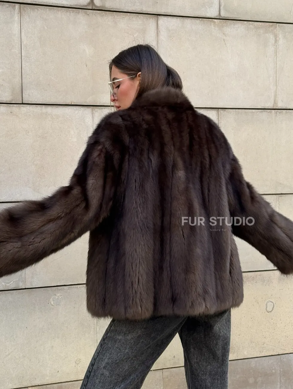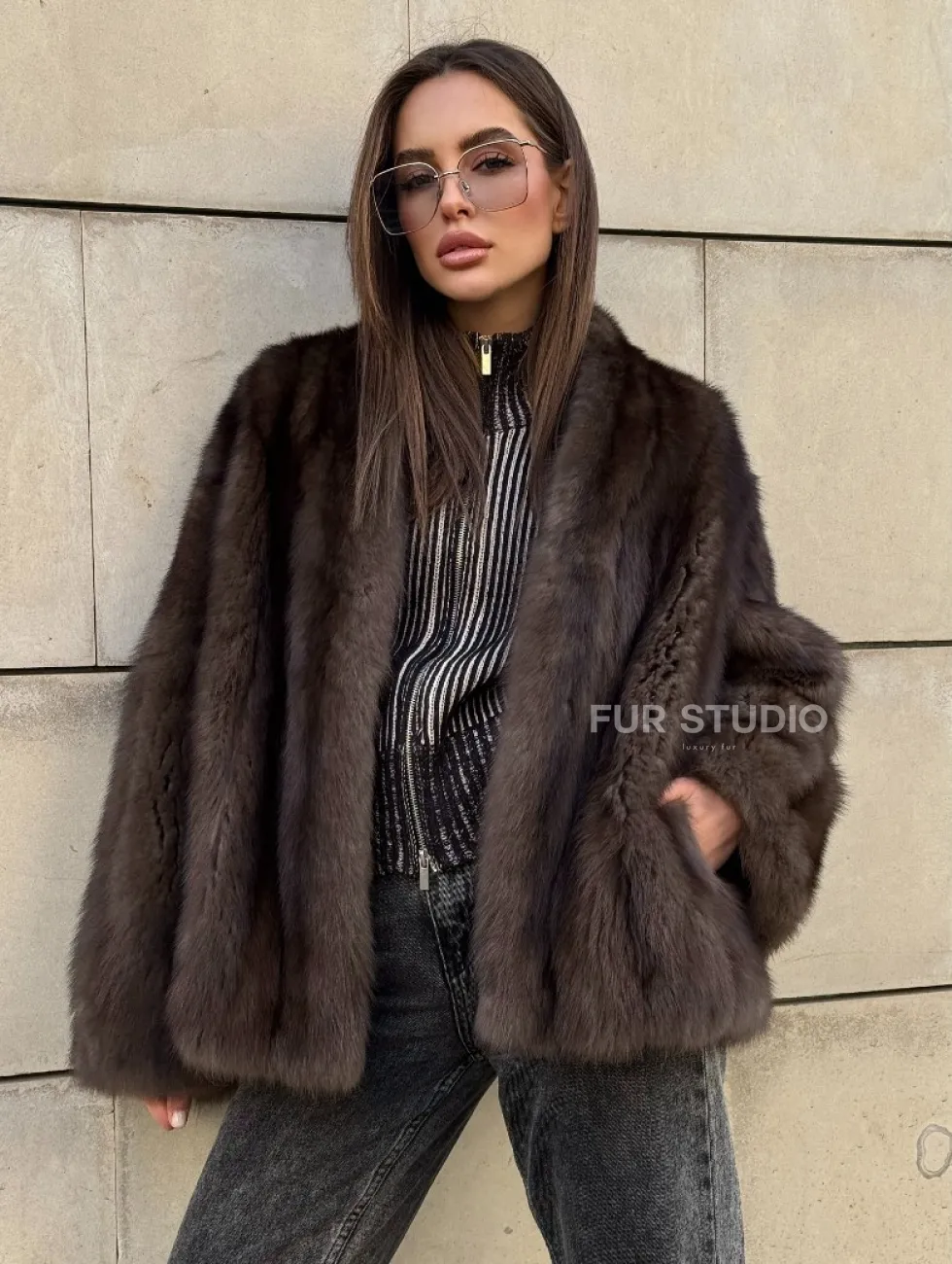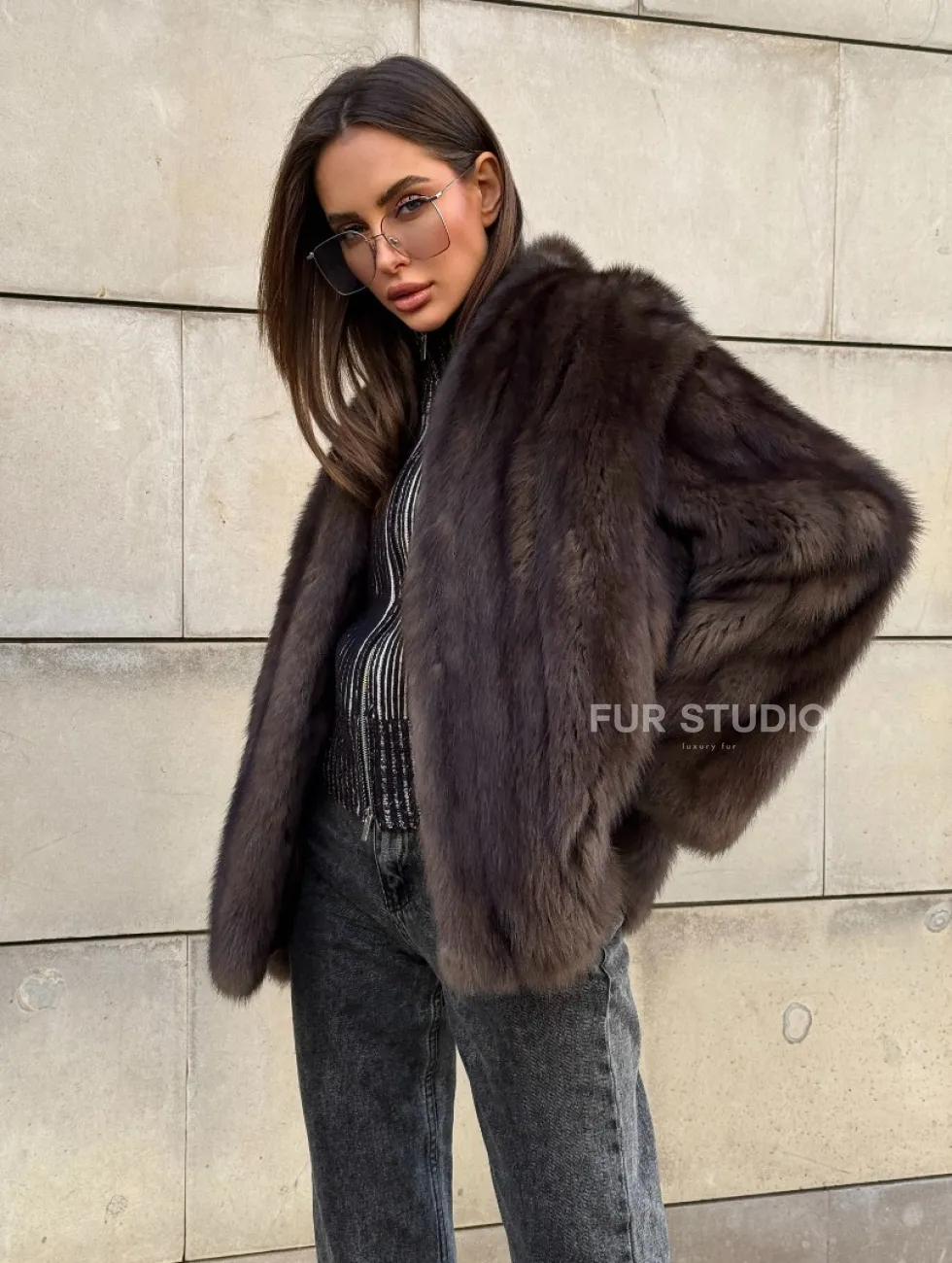 Стильный жакет - полушубок из куницы с V-образным воротником доступна для покупки в нашем шоуруме Furs Studio в Чите. У нас так же есть доставка во все города России. Добавьте немного роскоши в свой гардероб с этой шубой, которая будет служить вам многие годы.