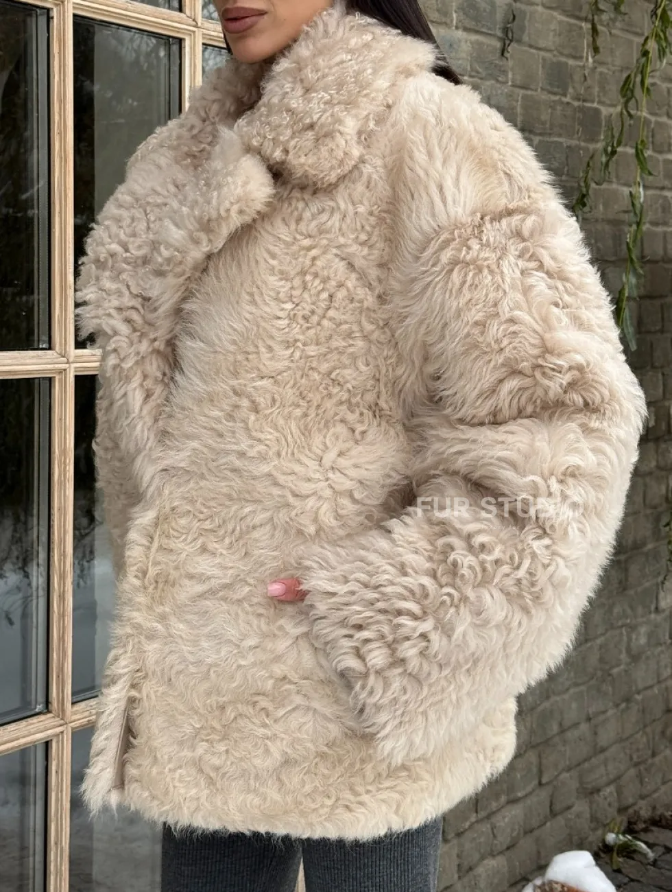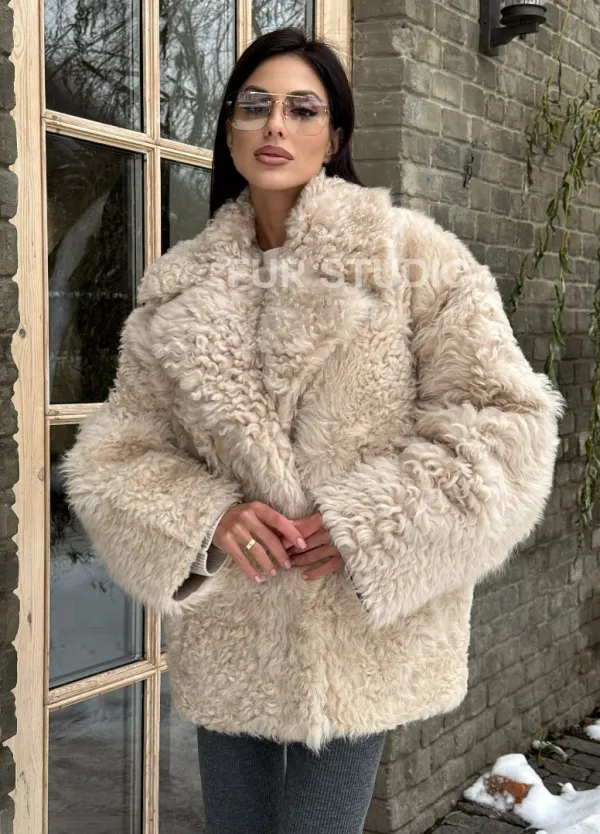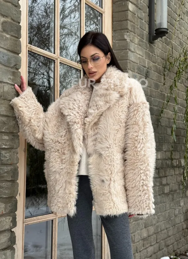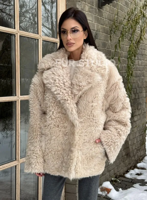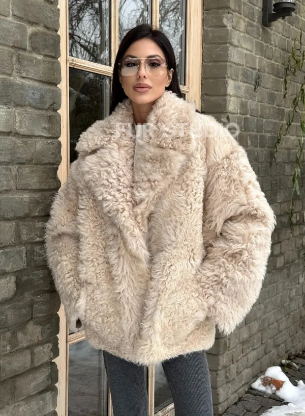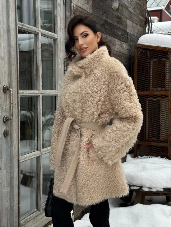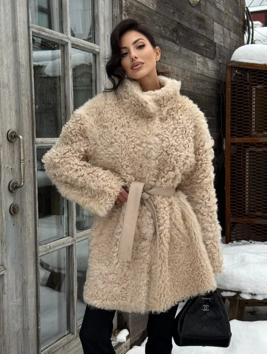 Светлая короткая шуба из испанской овчины доступна для покупки в нашем шоуруме Furs Studio в Чите, а также предлагается удобная доставка во все города России. Обогатите свой гардероб этой дубленкой, которая прослужит вам многие годы, добавив немного роскоши в ваш повседневный образ.