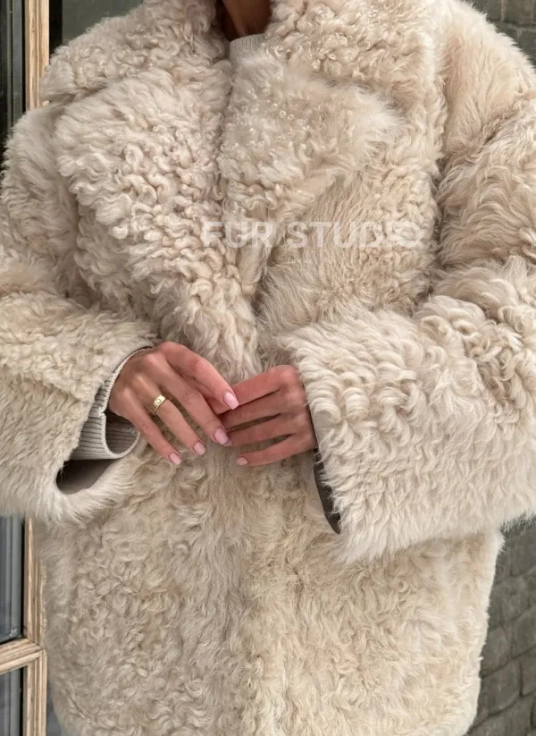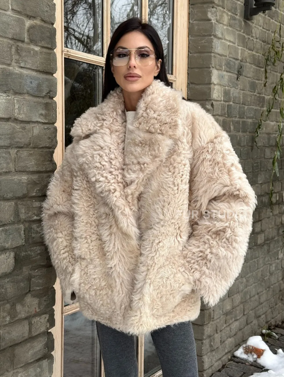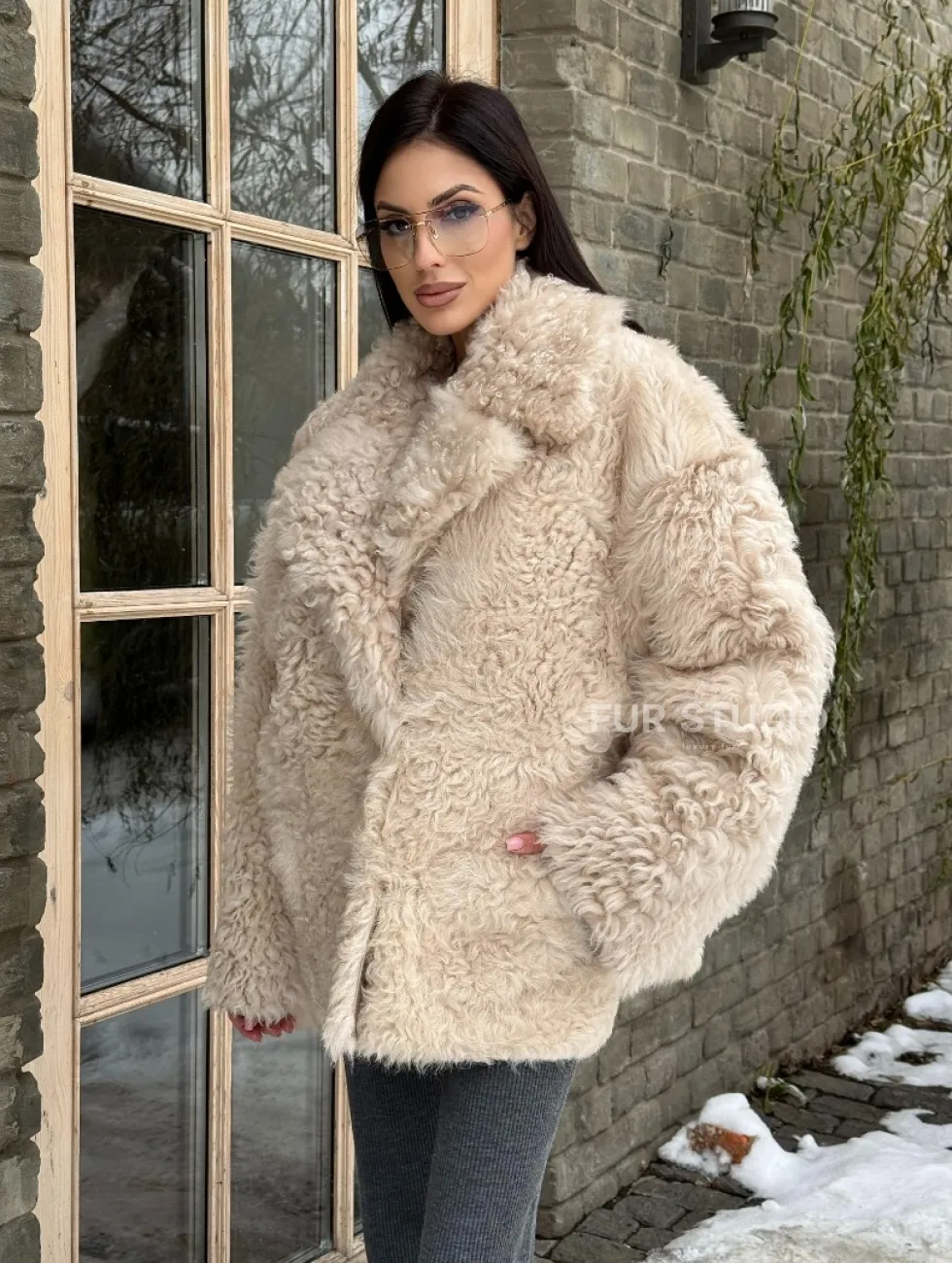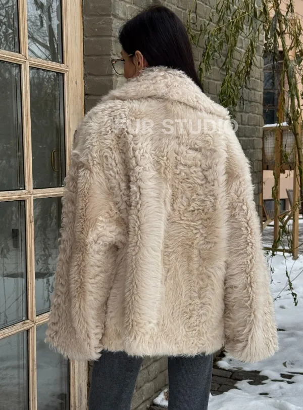Светлая короткая шуба из испанской овчины доступна для покупки в нашем шоуруме Furs Studio в Чите, а также предлагается удобная доставка во все города России. Обогатите свой гардероб этой дубленкой, которая прослужит вам многие годы, добавив немного роскоши в ваш повседневный образ.