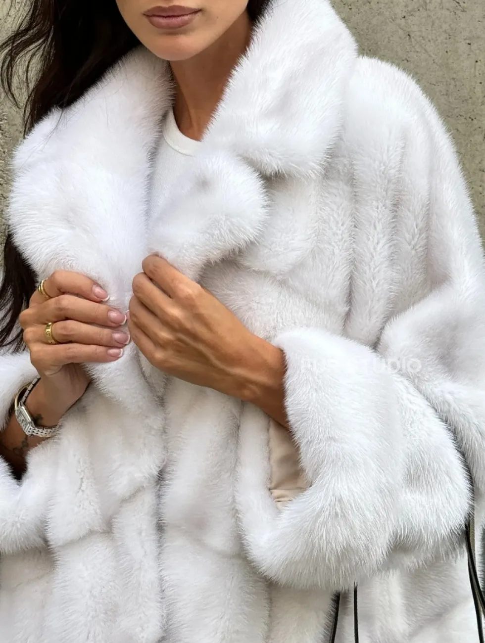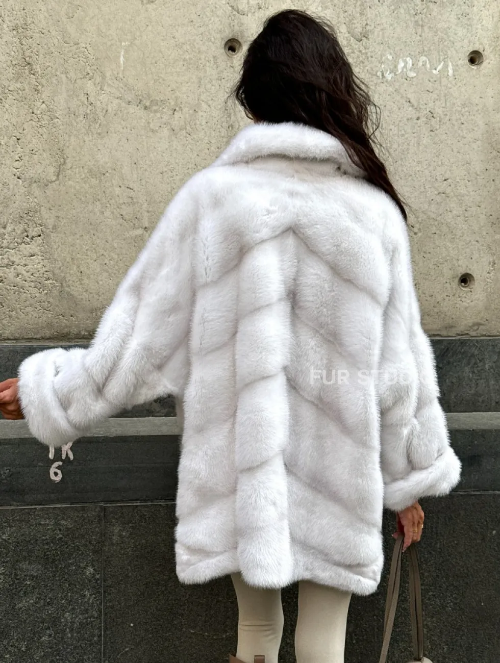 Мех данной шубы аукционная норка, цвет белый. Предлагается в размерах от 42 до 50. Длина модели 75-80 см, что выгодно подчеркивает фигуру девушек. Эта модель идеально подойдет для девушек и женщин, предпочитающих роскошные натуральные меха.