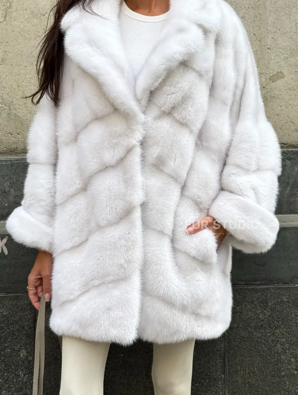 Светлый полушубок из натурального меха норки, английский воротник доступна для покупки в нашем шоуруме Furs Studio в Чите. У нас так же есть доставка во все города России. Добавьте немного роскоши в свой гардероб с этой шубой, которая будет служить вам многие годы.