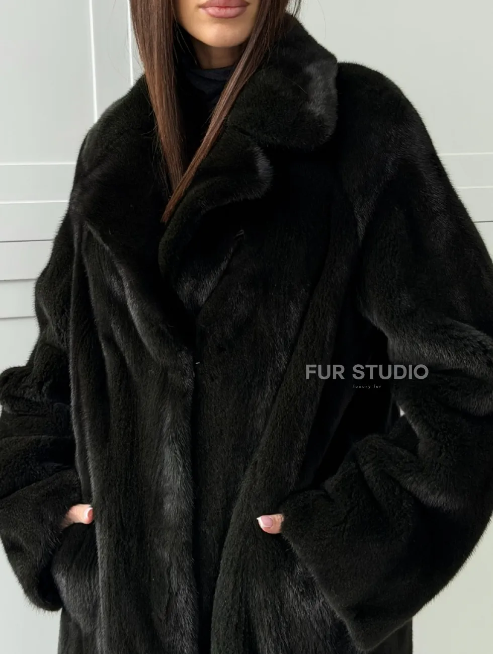 Темная норковая шуба в росшив - английский воротник "Kopenhagen Fur" доступна для покупки в нашем шоуруме Furs Studio в Чите. У нас так же есть доставка во все города России. Добавьте немного роскоши в свой гардероб с этой шубой, которая будет служить вам многие годы.