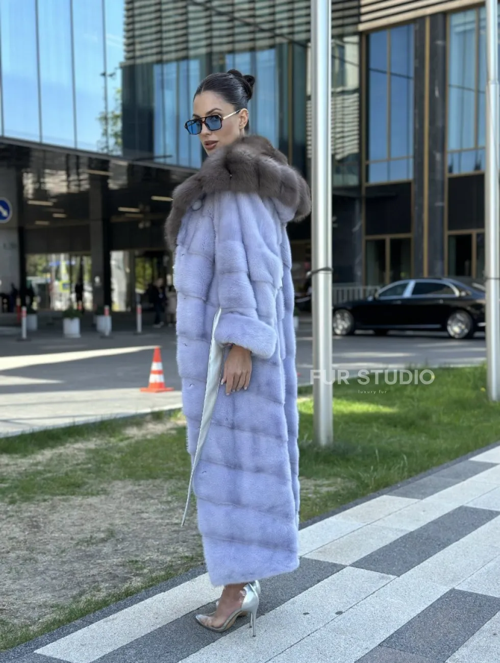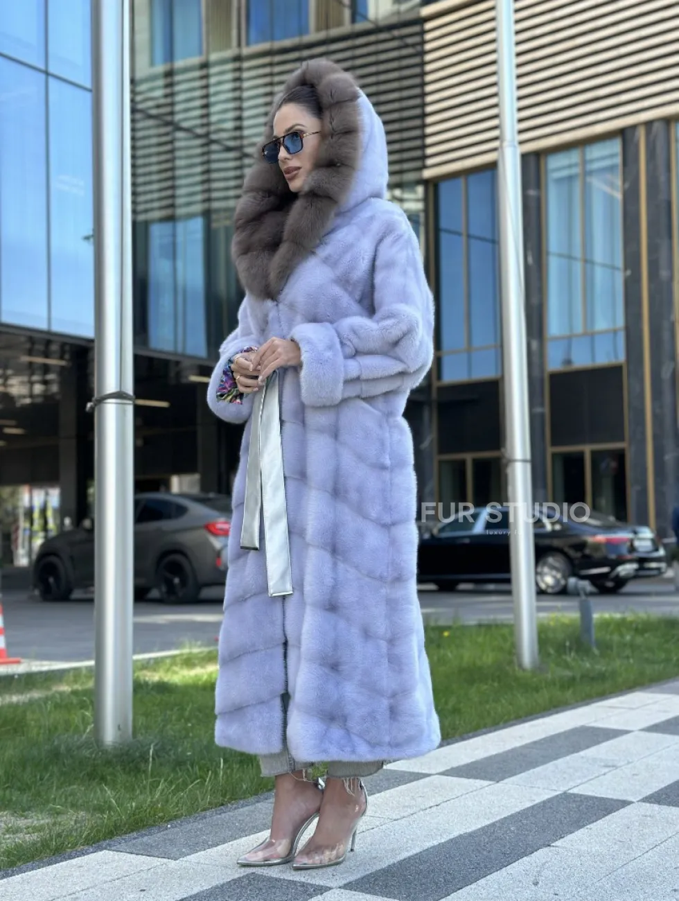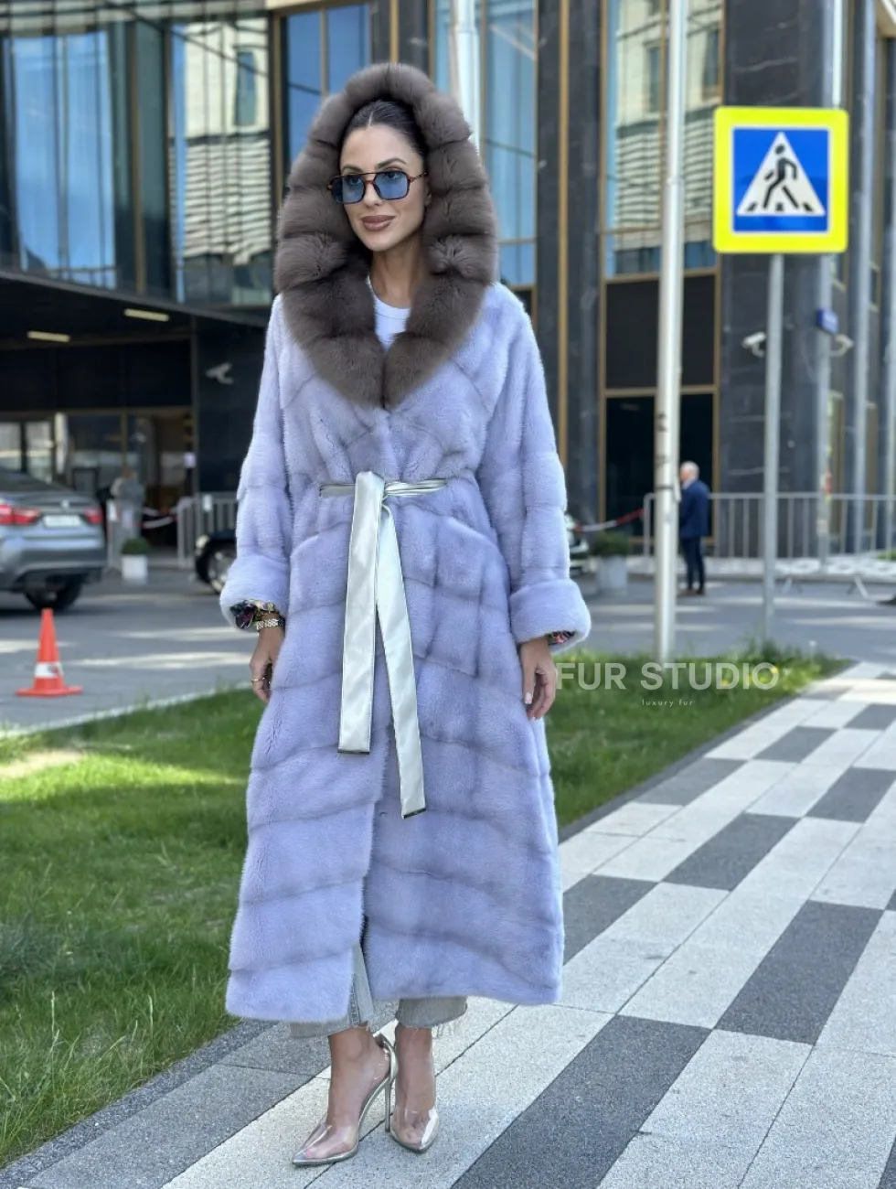 Изделие прекрасно гармонирует с любой одеждой: брюки, юбки и вечерний туалет. Необычный пояс подчеркнет изящную талию. Прямой крой зрительно увеличит рост и скроет недостатки фигуры. Добавьте в образ статусную сумочку, и вы будете выглядеть роскошно. Купить удлиненную норковую шубу с капюшоном из куницы могут девушки, которые любят экспериментировать и не боятся восхищения.