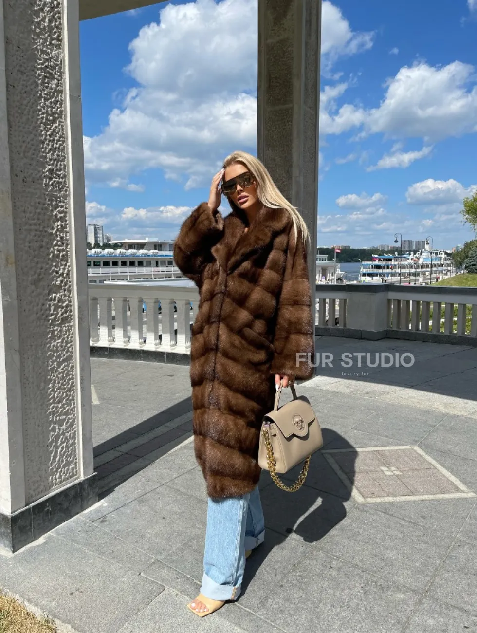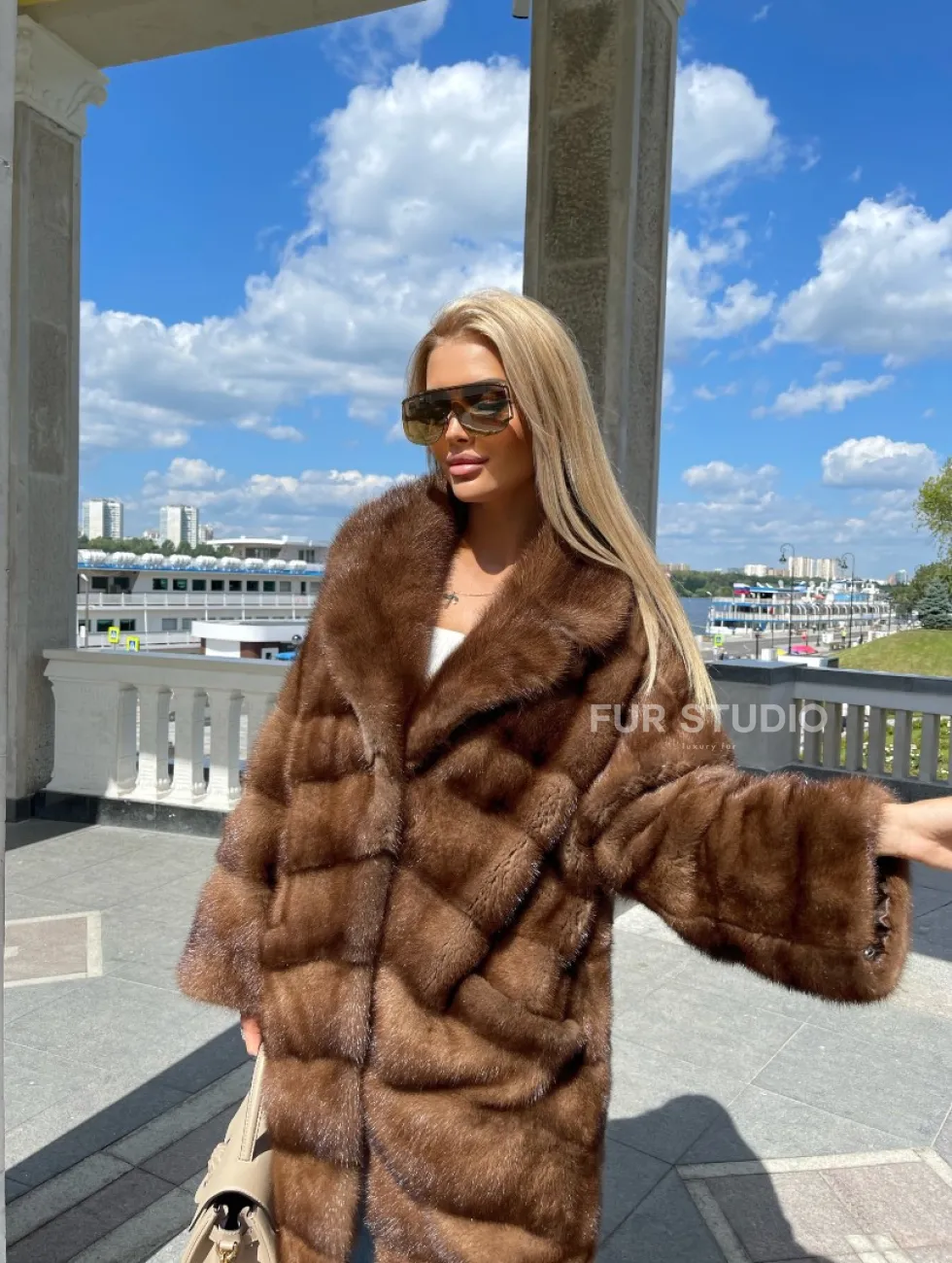 Удлиненная норковая шуба в цвете соболь – выбор истинных леди. Каждая женщина должна иметь в своем гардеробе шубу из норки. Шуба – указывает на уровень и статус ее владелицы. Изделие делает ваш образ шикарным и роскошным. Качество верхней одежды будет радовать ее владелицу долгие годы.