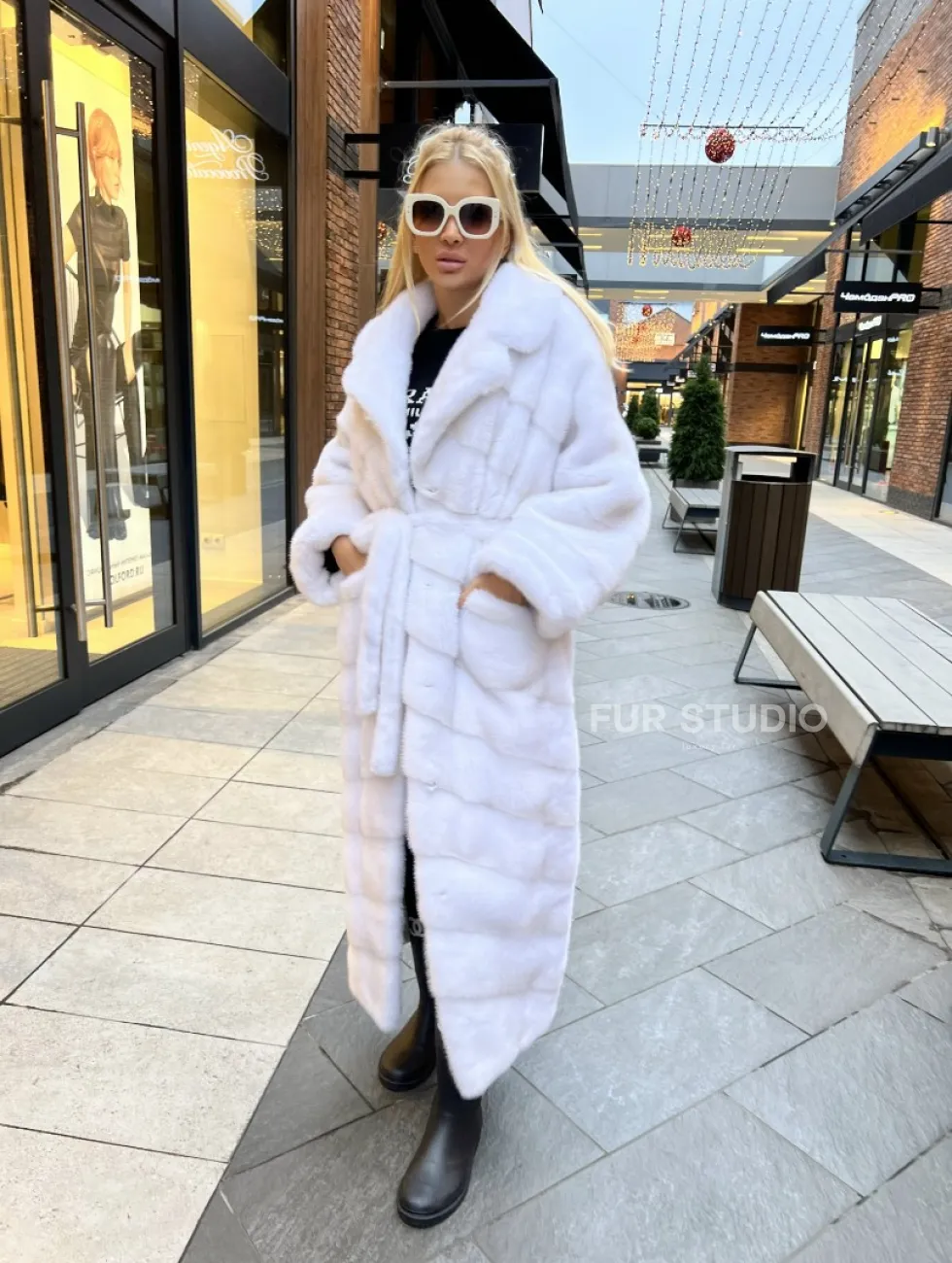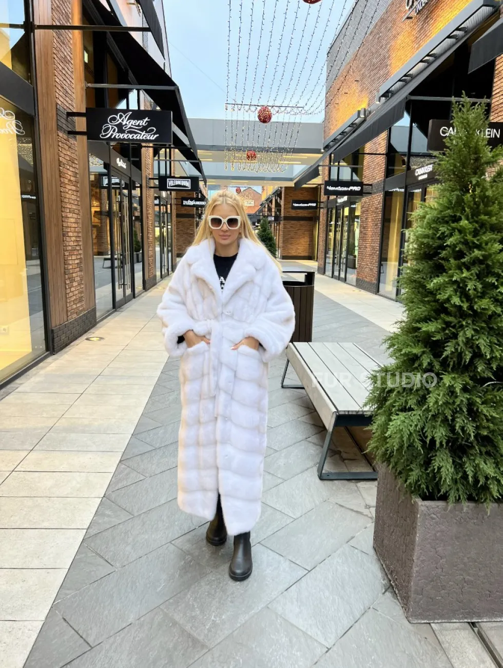 Широкие манжеты выделяют изящные кисти. Удобные карманы не дадут замерзнуть ручкам в холода. Необычный пояс подчеркивает талию и создает силуэт “песочных часов”. Качество изделия будет радовать не один год. Купить удлиненную шубу из меха аукционной норки в цвете паломино могут женщины, которые любят выглядеть роскошно в любое время года.