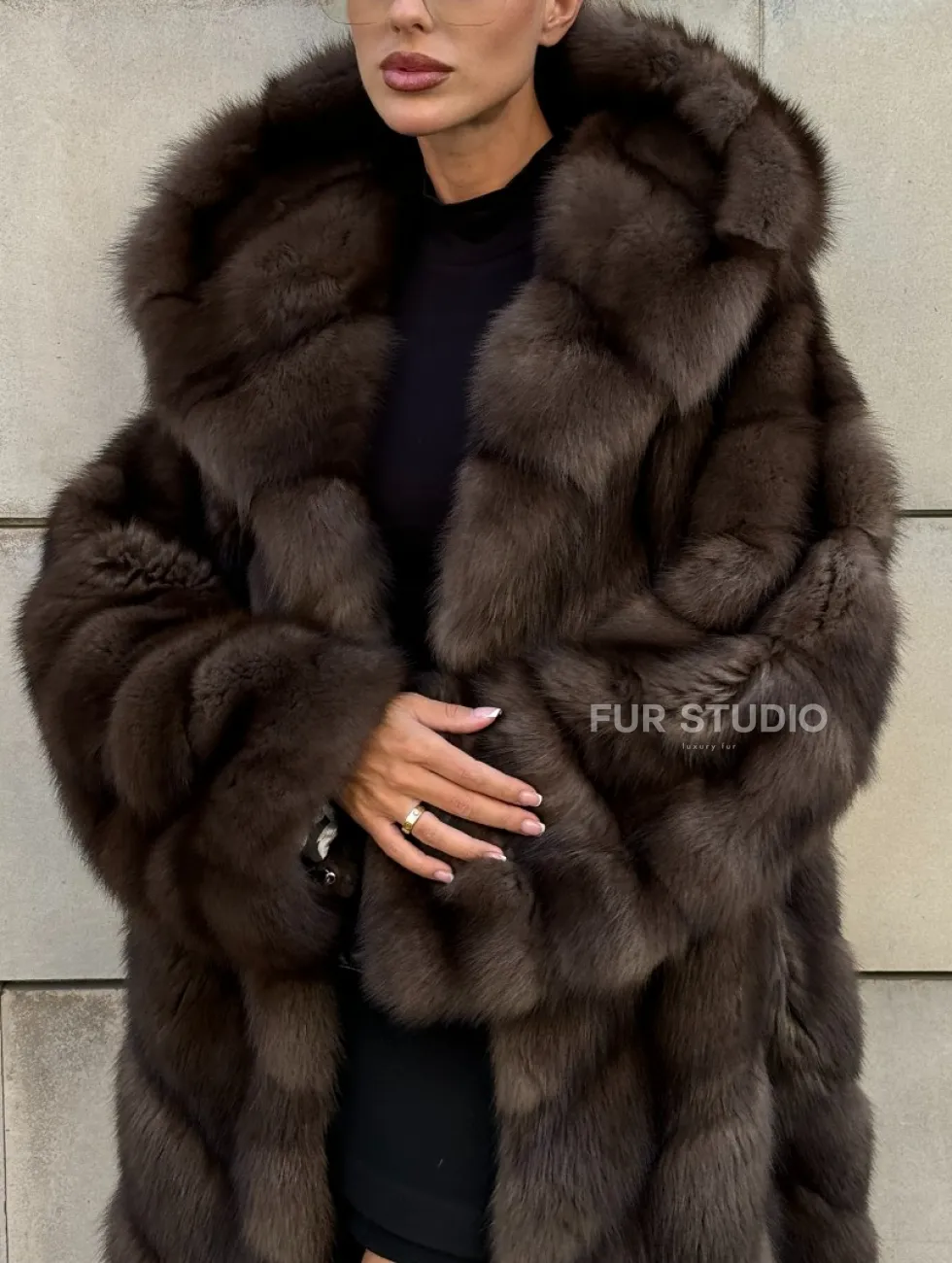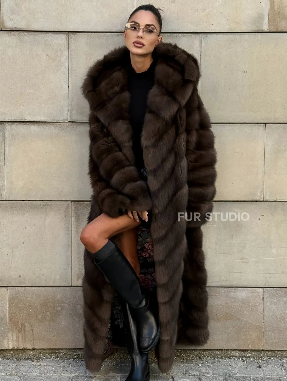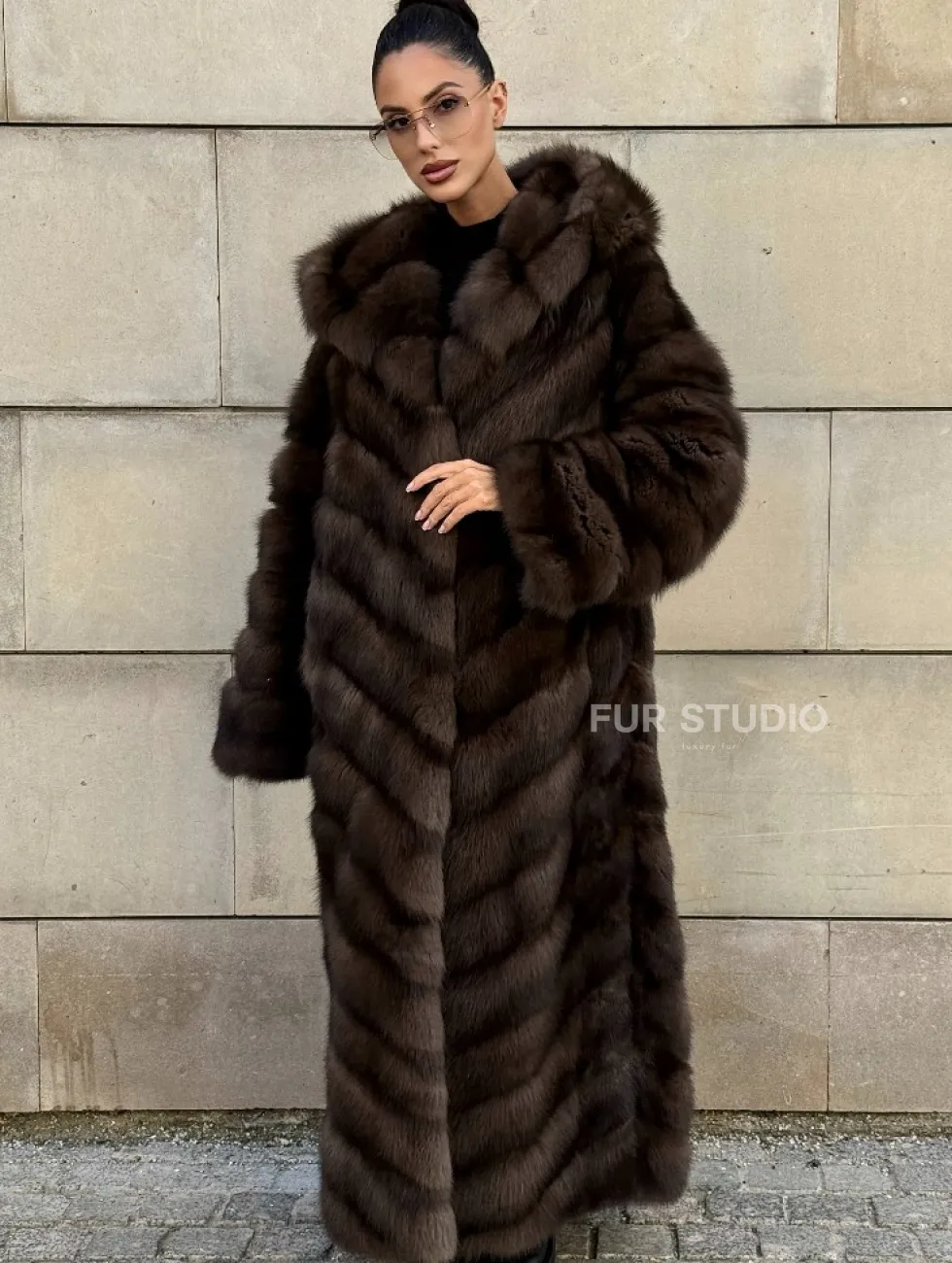 Удлиненная шуба из меха куницы с капюшоном доступна для покупки в нашем шоуруме Furs Studio в Чите. У нас так же есть доставка во все города России. Добавьте немного роскоши в свой гардероб с этой шубой, которая будет служить вам многие годы.