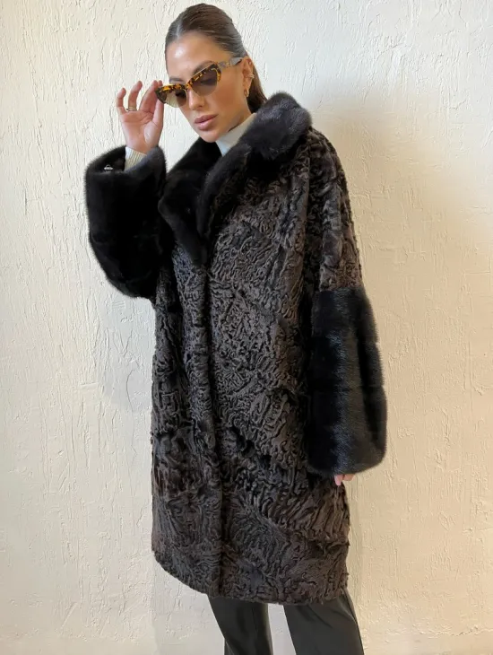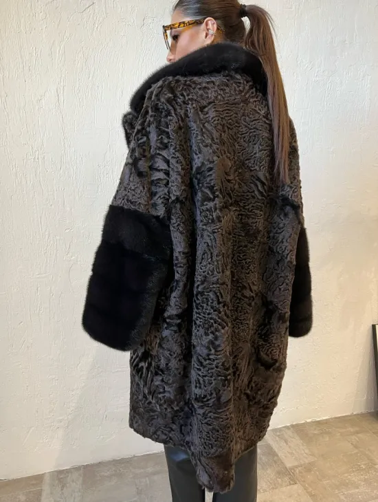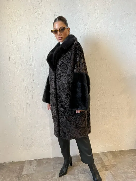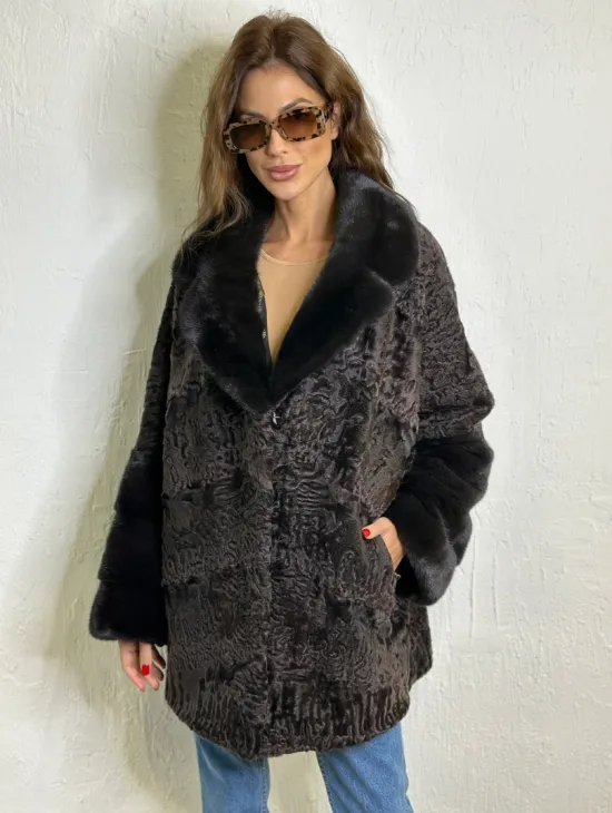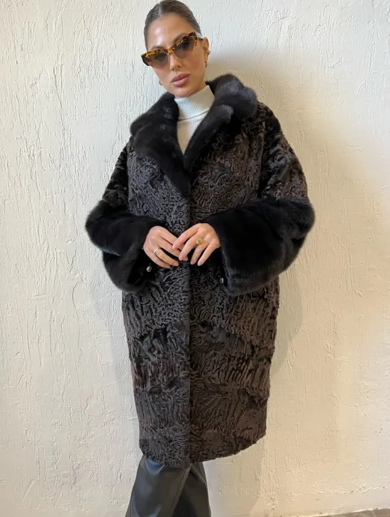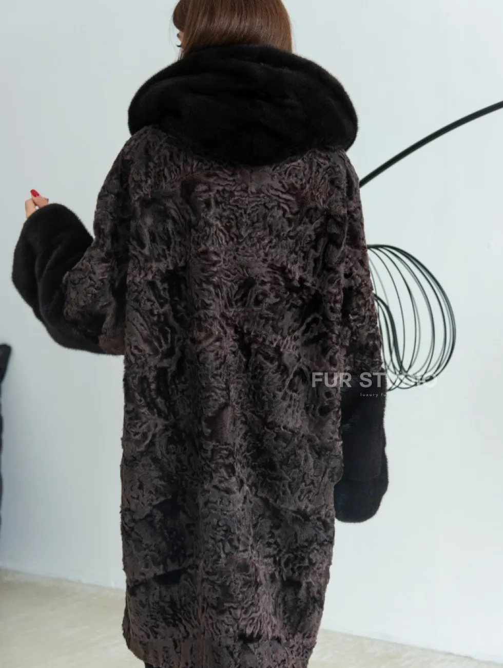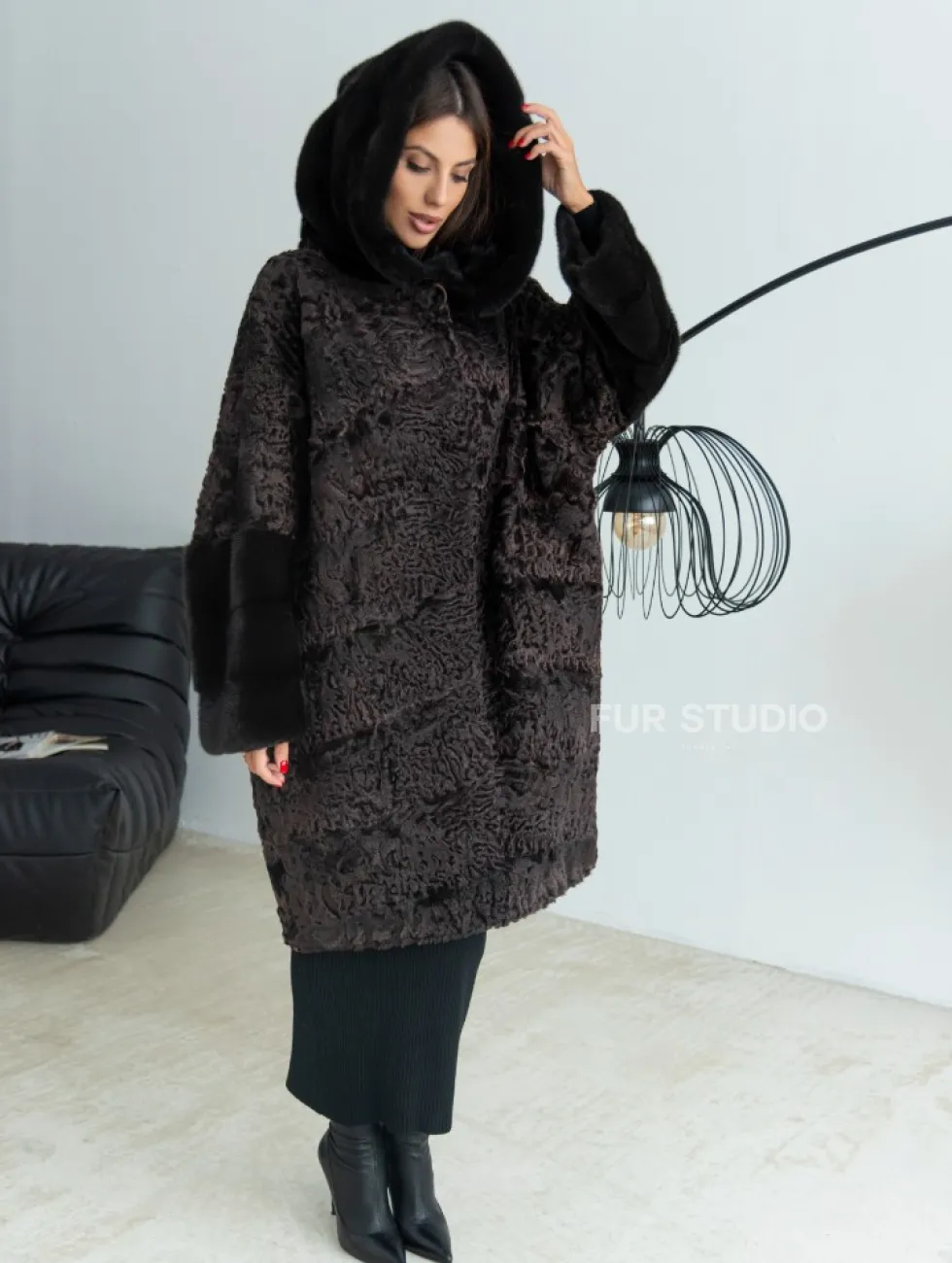 Уголь шуба из каракульчи и норки с капюшоном доступна для покупки в нашем шоуруме Furs Studio в Чите. У нас так же есть доставка во все города России. Добавьте немного роскоши в свой гардероб с этой шубой, которая будет служить вам многие годы.