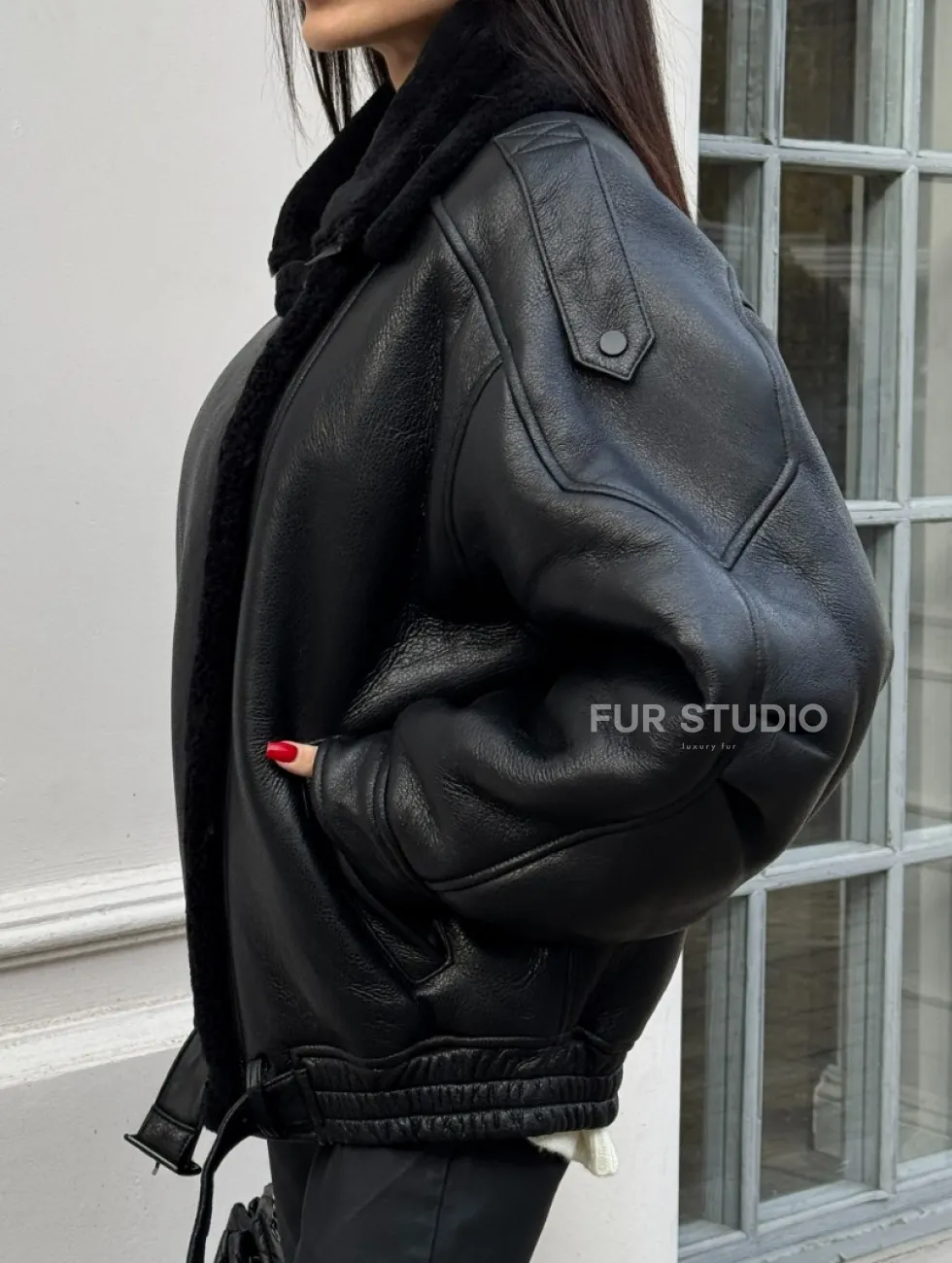 Укороченная женская дубленка - бомбер с двойным воротником доступна для покупки в нашем шоуруме Furs Studio в Чите, а также предлагается удобная доставка во все города России. Обогатите свой гардероб этой дубленкой, которая прослужит вам многие годы, добавив немного роскоши в ваш повседневный образ.
