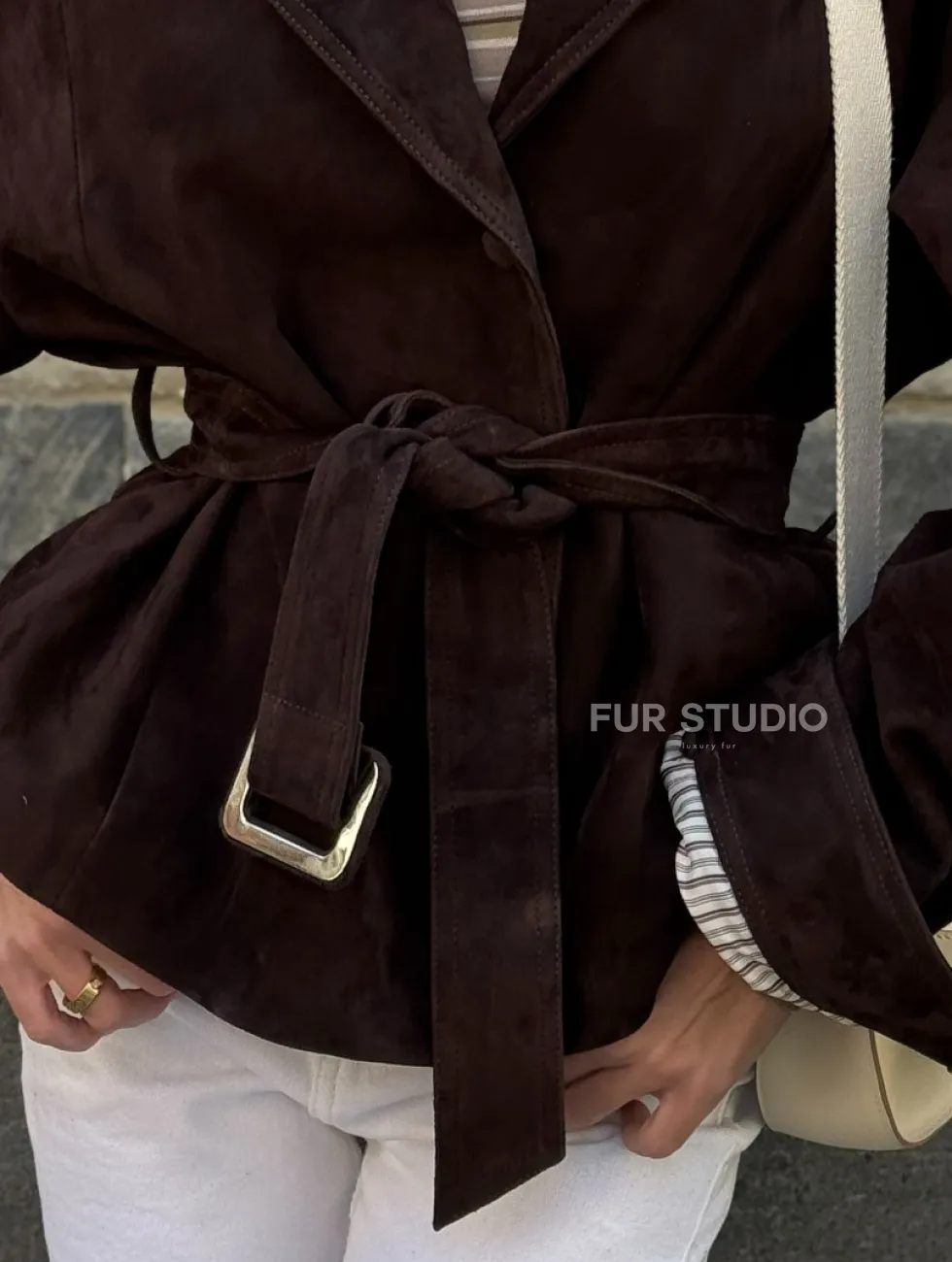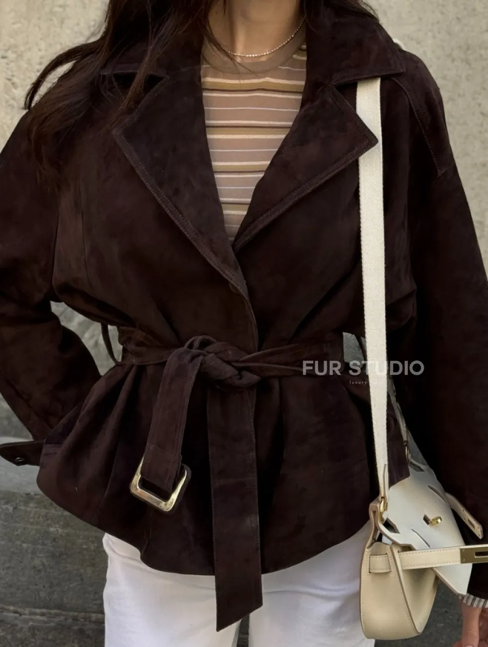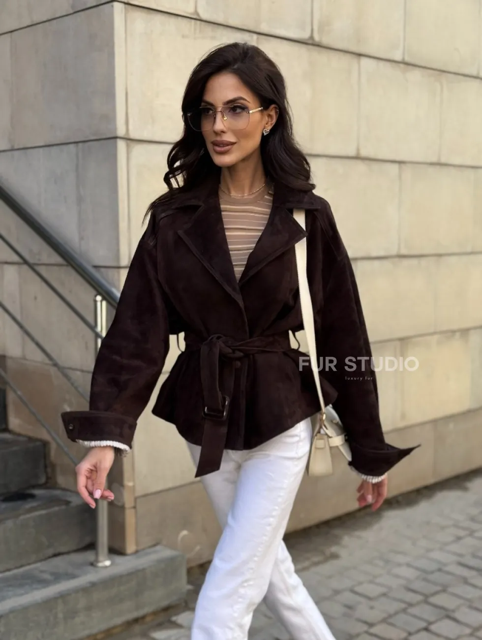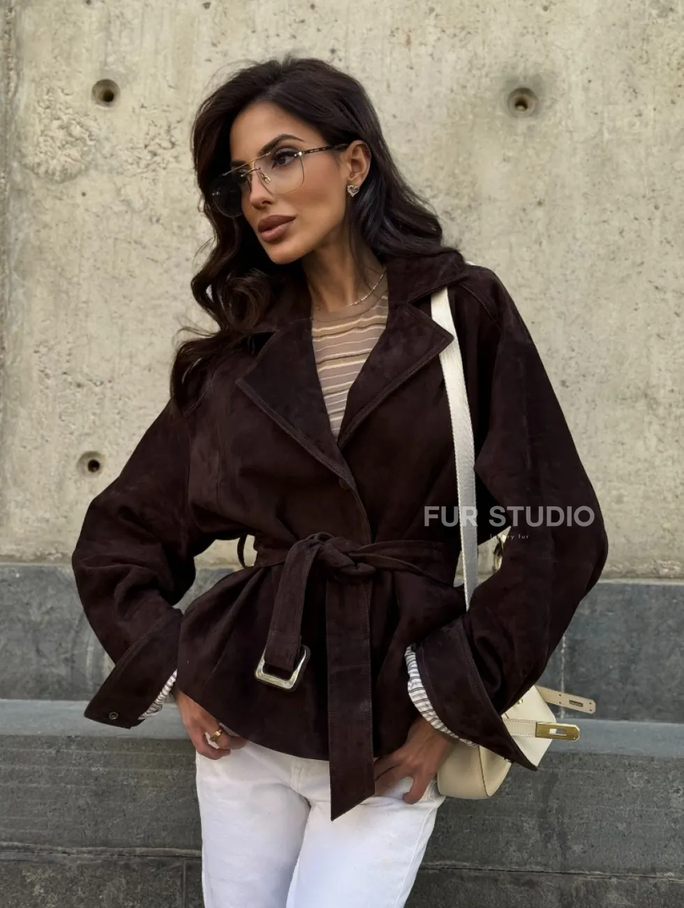 Жакет - куртка из замшевой кожи LUX с поясом доступна для покупки в нашем шоуруме Furs Studio в Чите, где также предоставляется удобная доставка во все города России.
