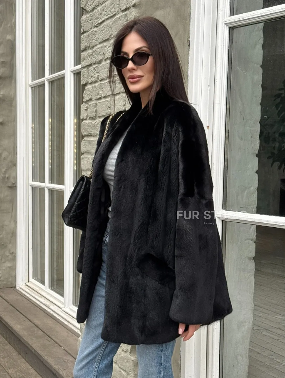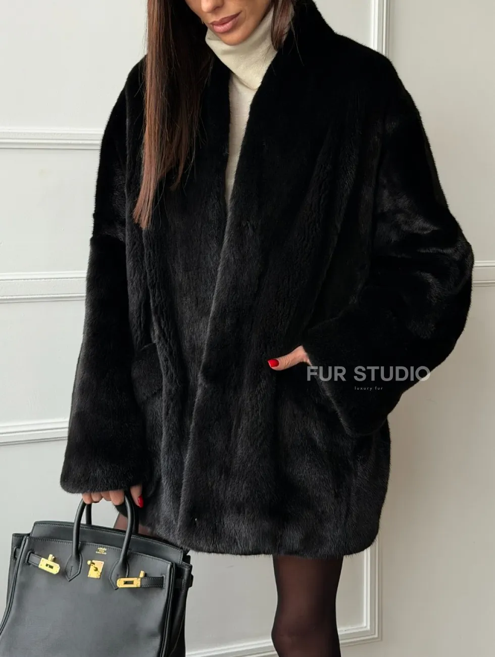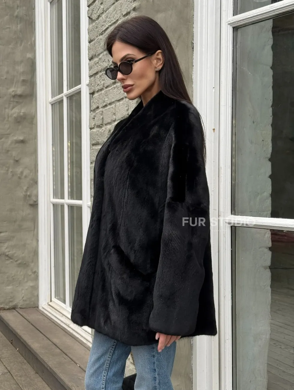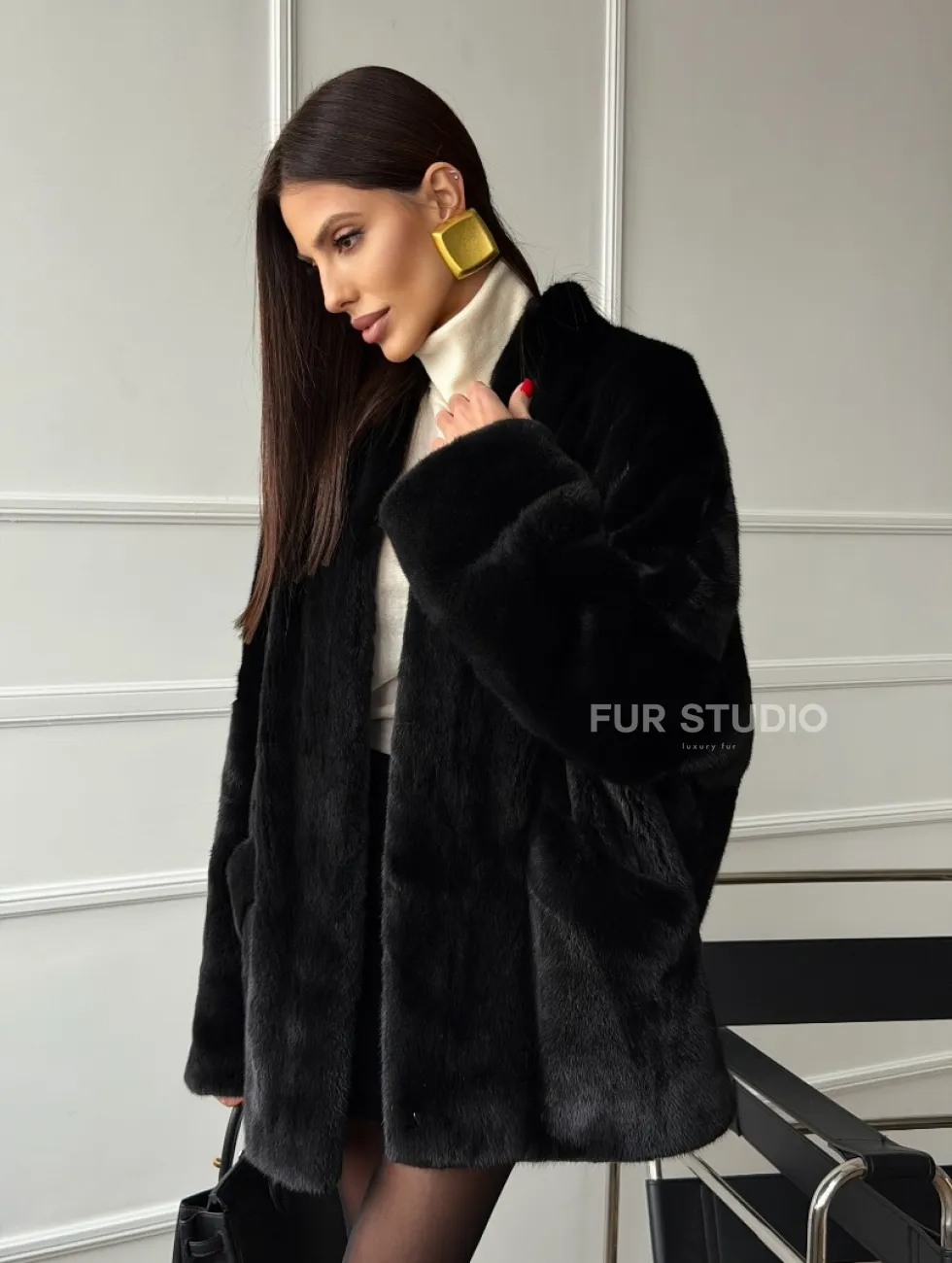 Жакет - шуба из норки BLACKGLAMA с V-образным воротником, косыми карманами доступна для покупки в нашем шоуруме Furs Studio в Чите. У нас так же есть доставка во все города России. Добавьте немного роскоши в свой гардероб с этой шубой, которая будет служить вам многие годы.