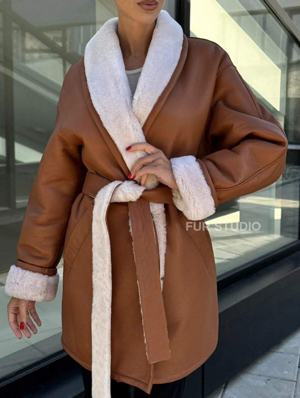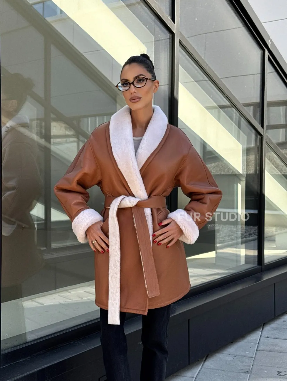 Женская дублёнка на запах с поясом - цвет кэмел доступна для покупки в нашем шоуруме Furs Studio в Чите, а также предлагается удобная доставка во все города России. Обогатите свой гардероб этой дубленкой, которая прослужит вам многие годы, добавив немного роскоши в ваш повседневный образ.