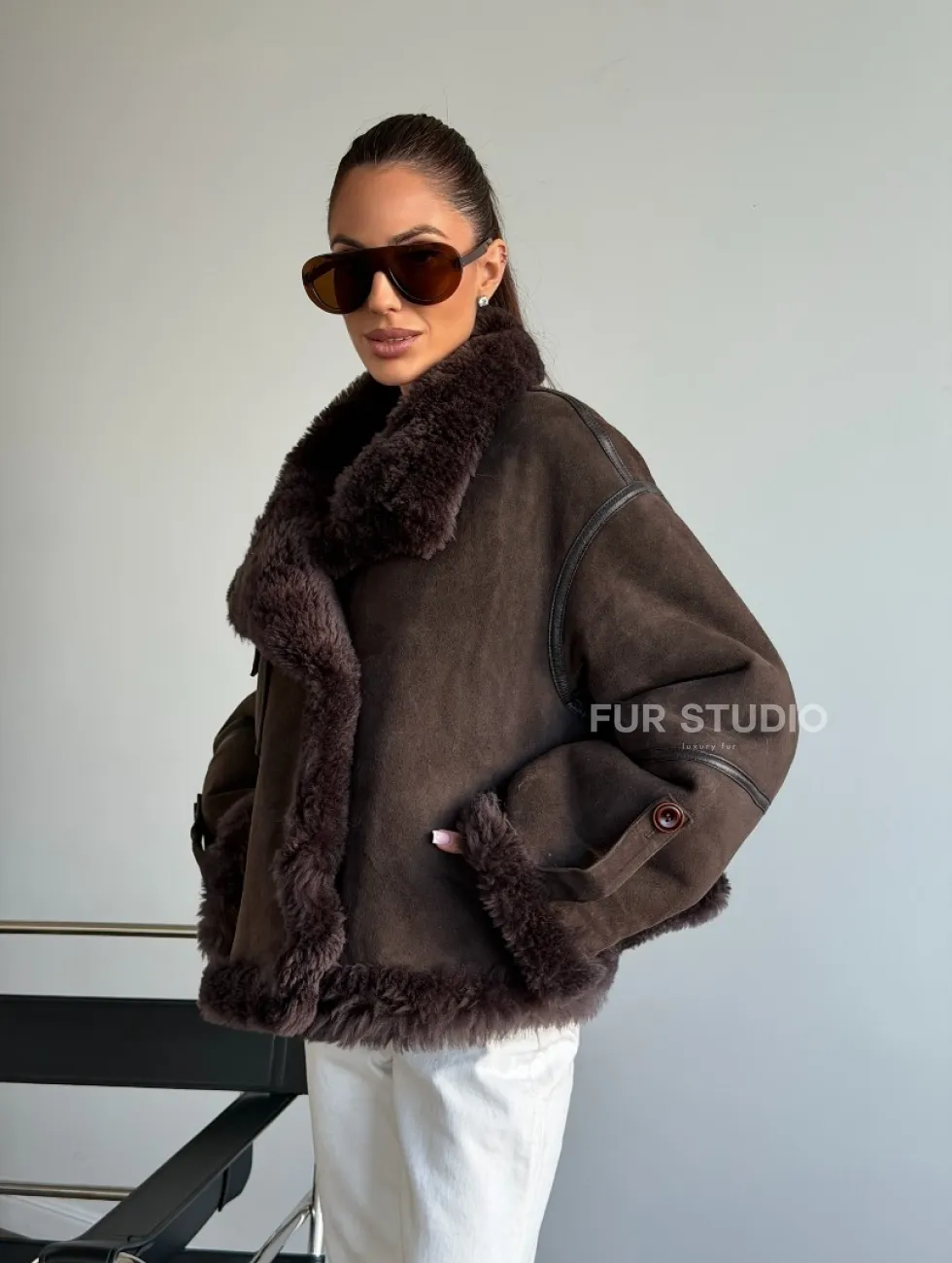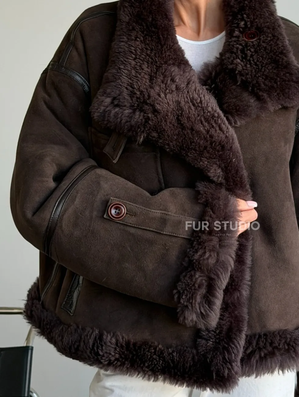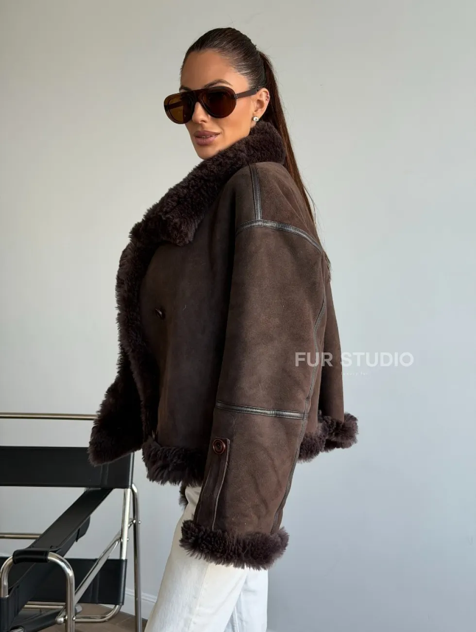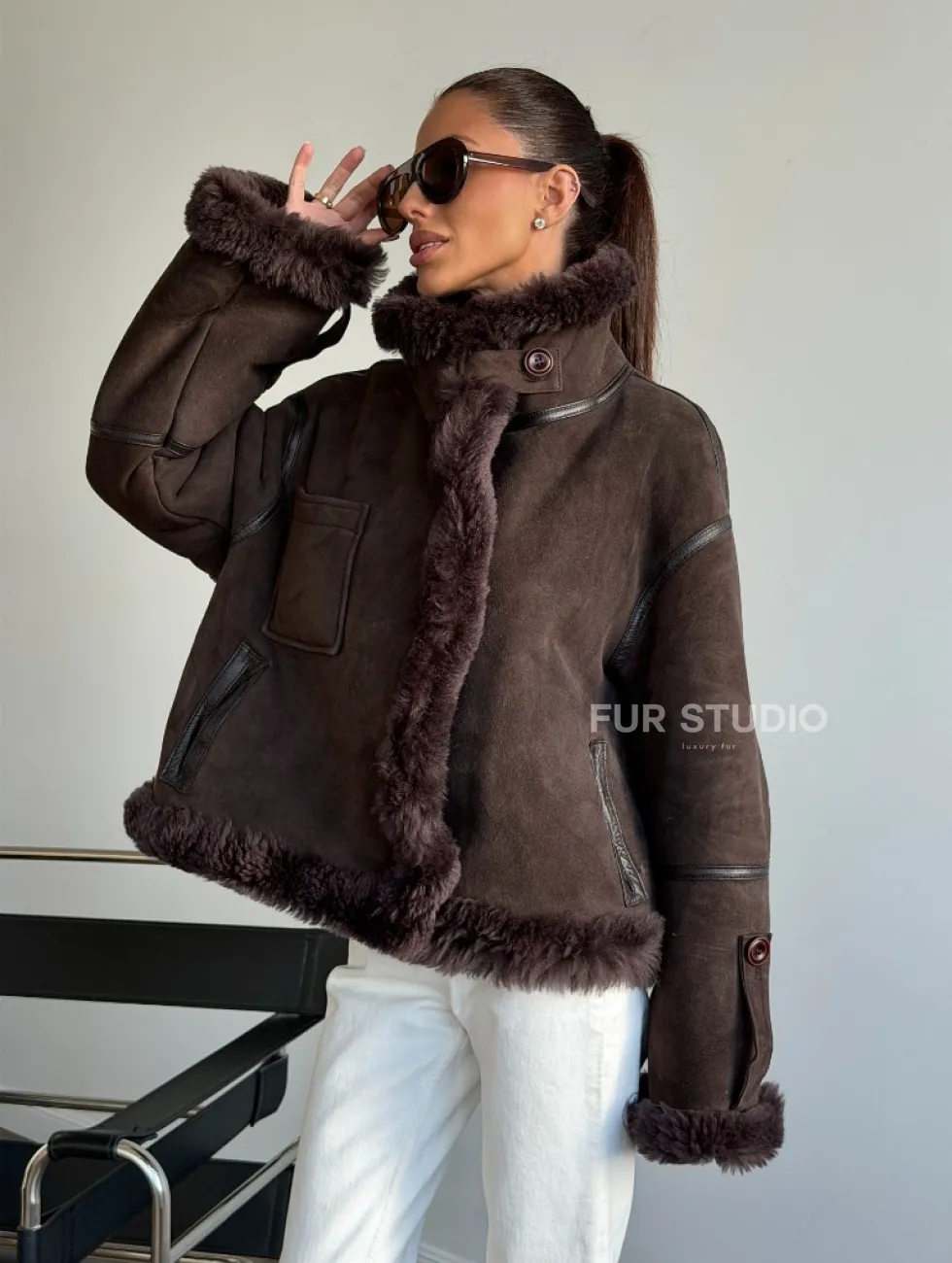 Женская двухсторонняя дубленка. Модель предлагается в размерах от 42 до 48. Оптимальная длина моделей 50-55 см подчеркивает линии вашей фигуры. Эта дубленка станет неотъемлемой частью гардероба для тех, кто предпочитает роскошь и утонченность натуральной кожи.