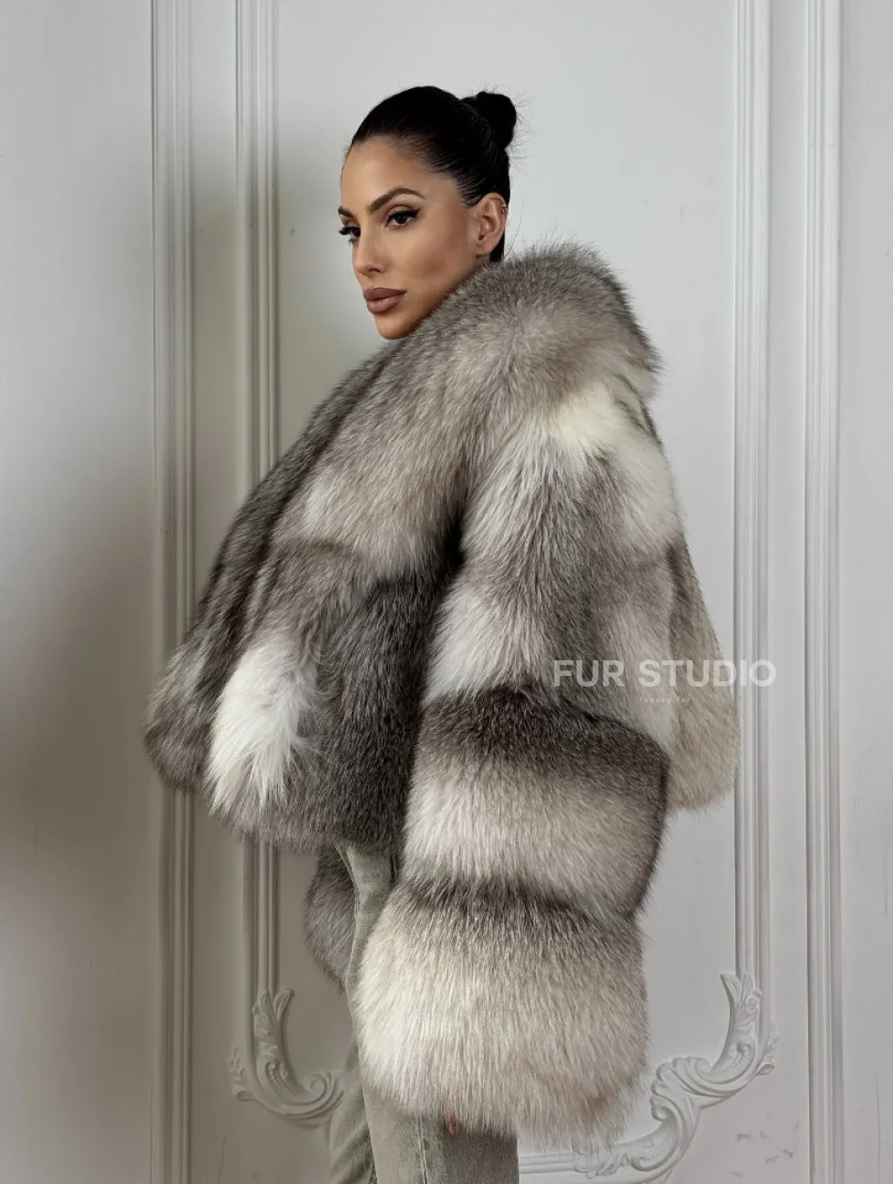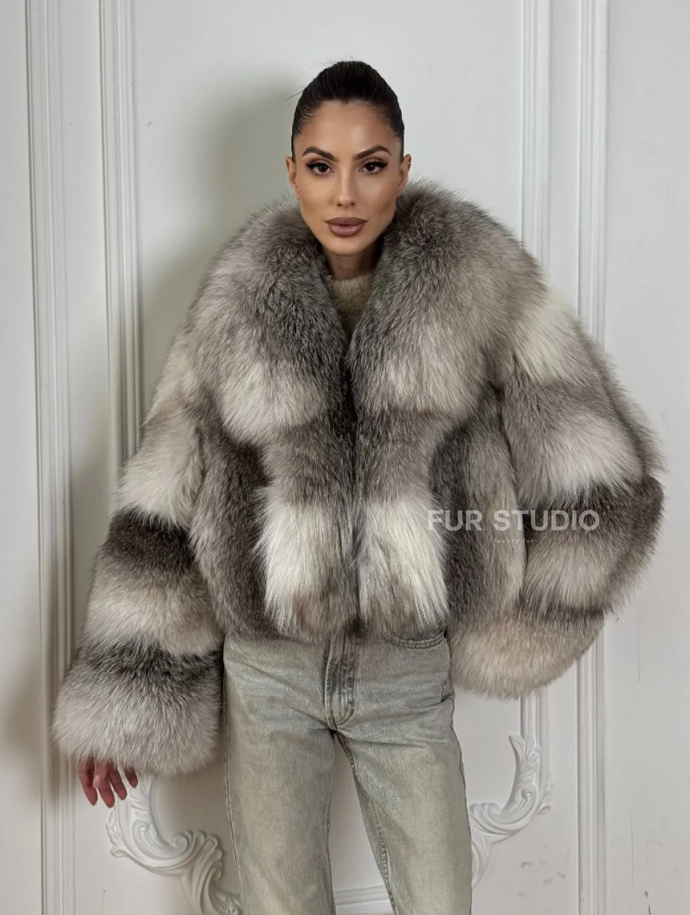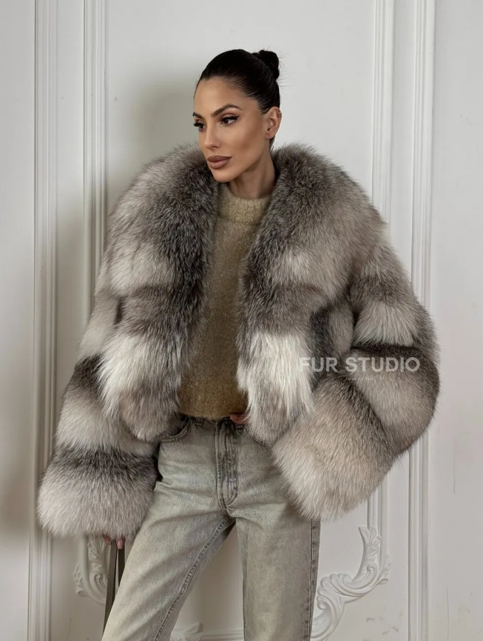 Шуба из меха арктической лисы - отличный выбор женщин, которые любят выглядеть стильно в зимнее время года. Мех смотрится шикарно и богато. Необычная расцветка подчеркнет цвет волос и глаз владелицы. В шубе будет комфортно в холодную зиму. Широкие манжеты делают акцент на тонкости кистей.
