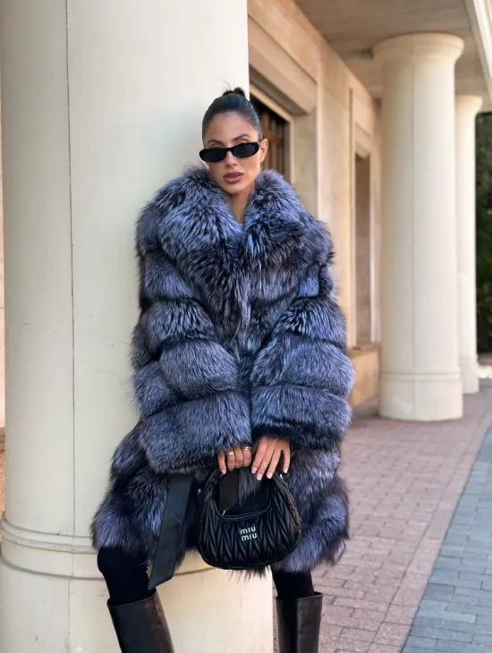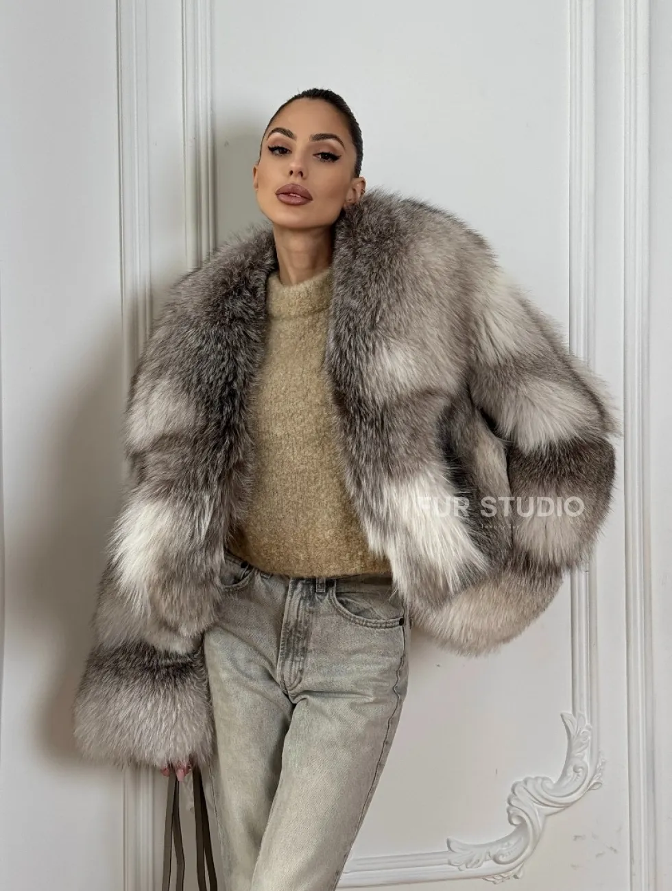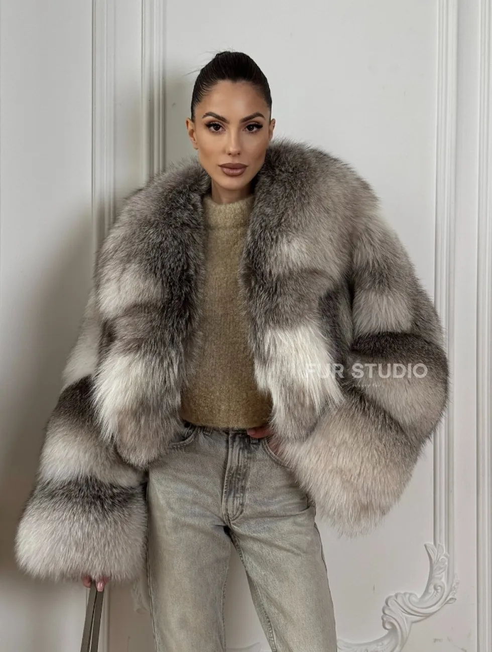 Шуба из меха арктической лисы - отличный выбор женщин, которые любят выглядеть стильно в зимнее время года. Мех смотрится шикарно и богато. Необычная расцветка подчеркнет цвет волос и глаз владелицы. В шубе будет комфортно в холодную зиму. Широкие манжеты делают акцент на тонкости кистей.