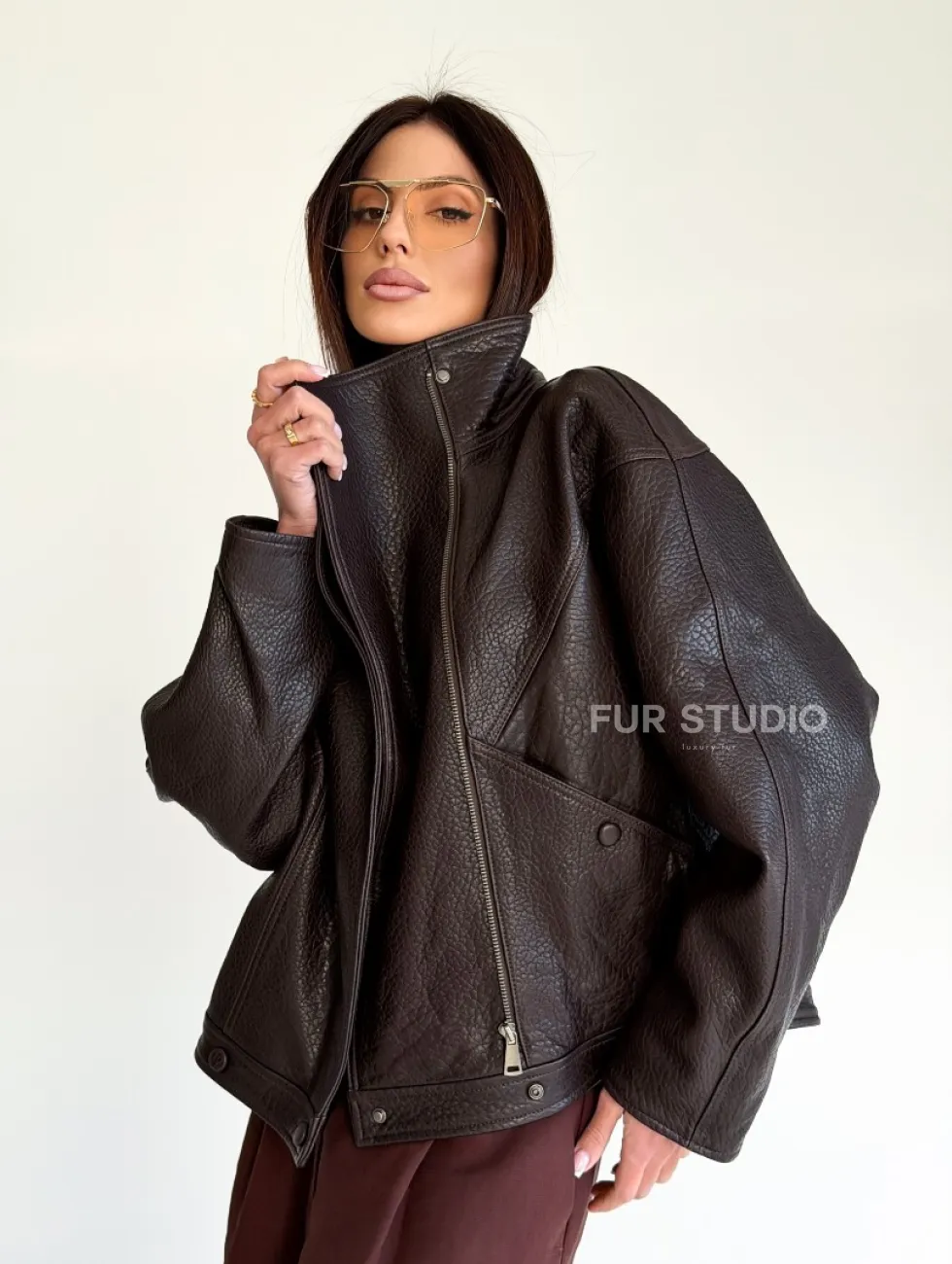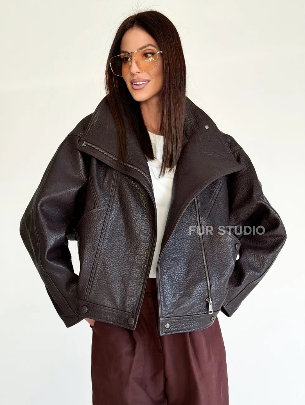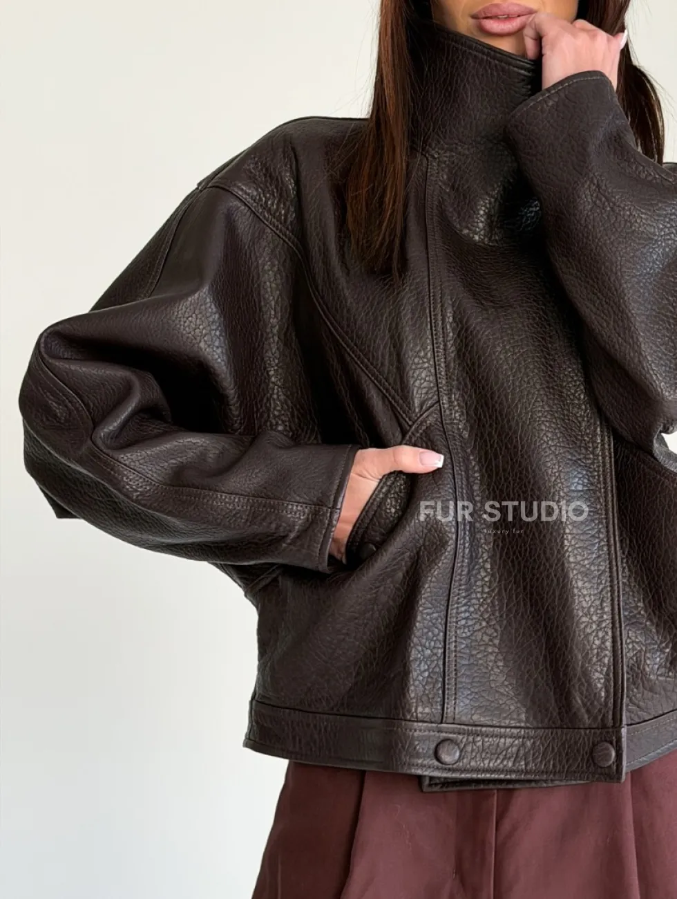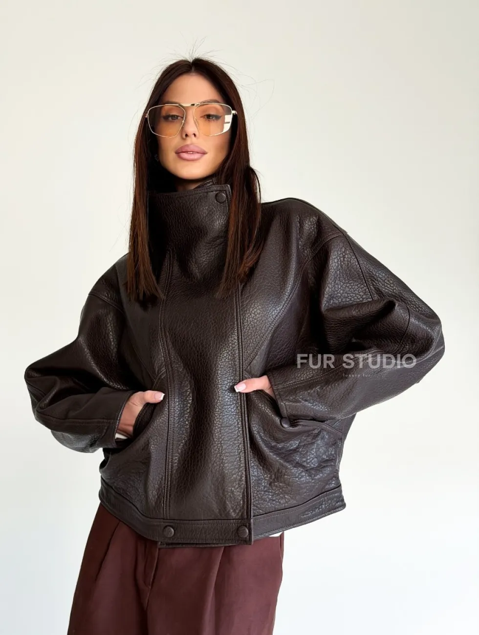 Женская кожаная куртка доступна для покупки в нашем шоуруме Furs Studio в Чите, где также предоставляется удобная доставка во все города России.