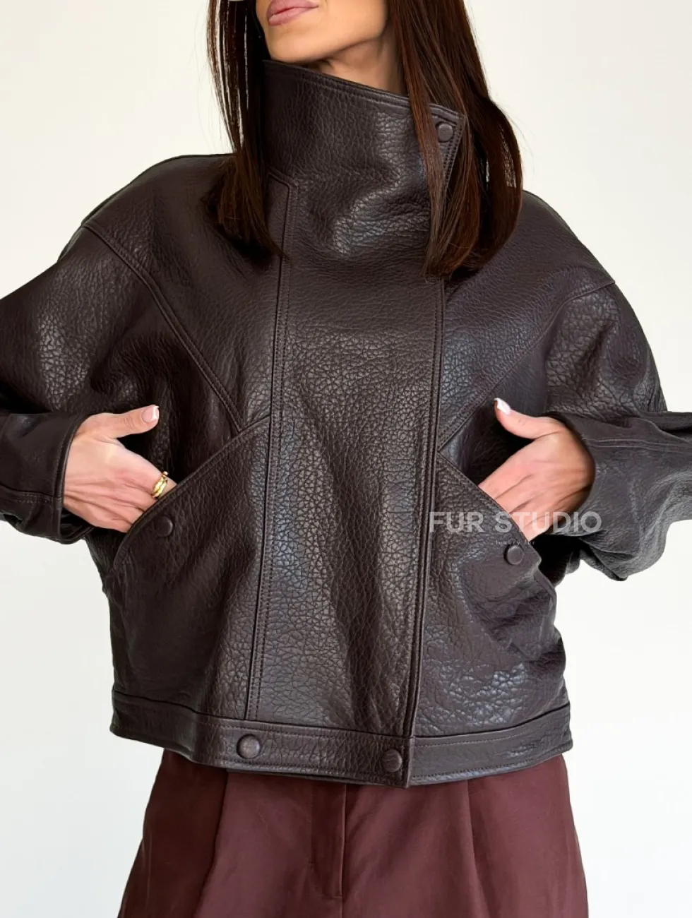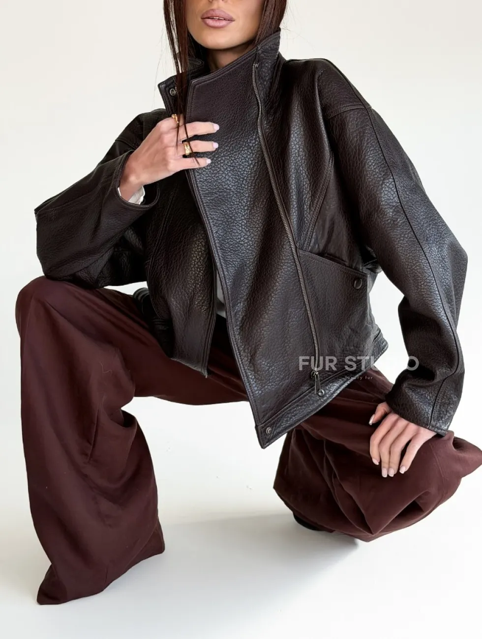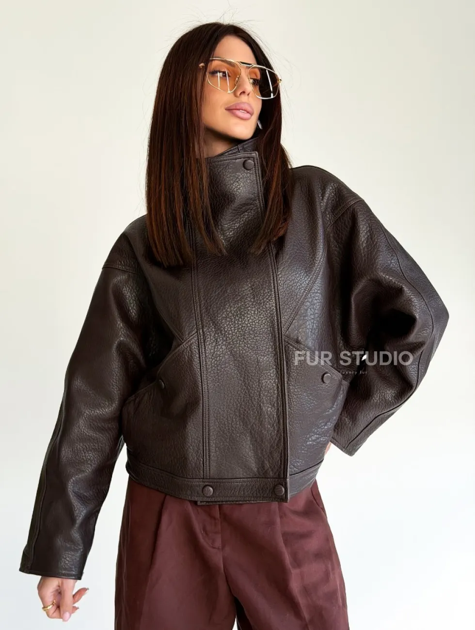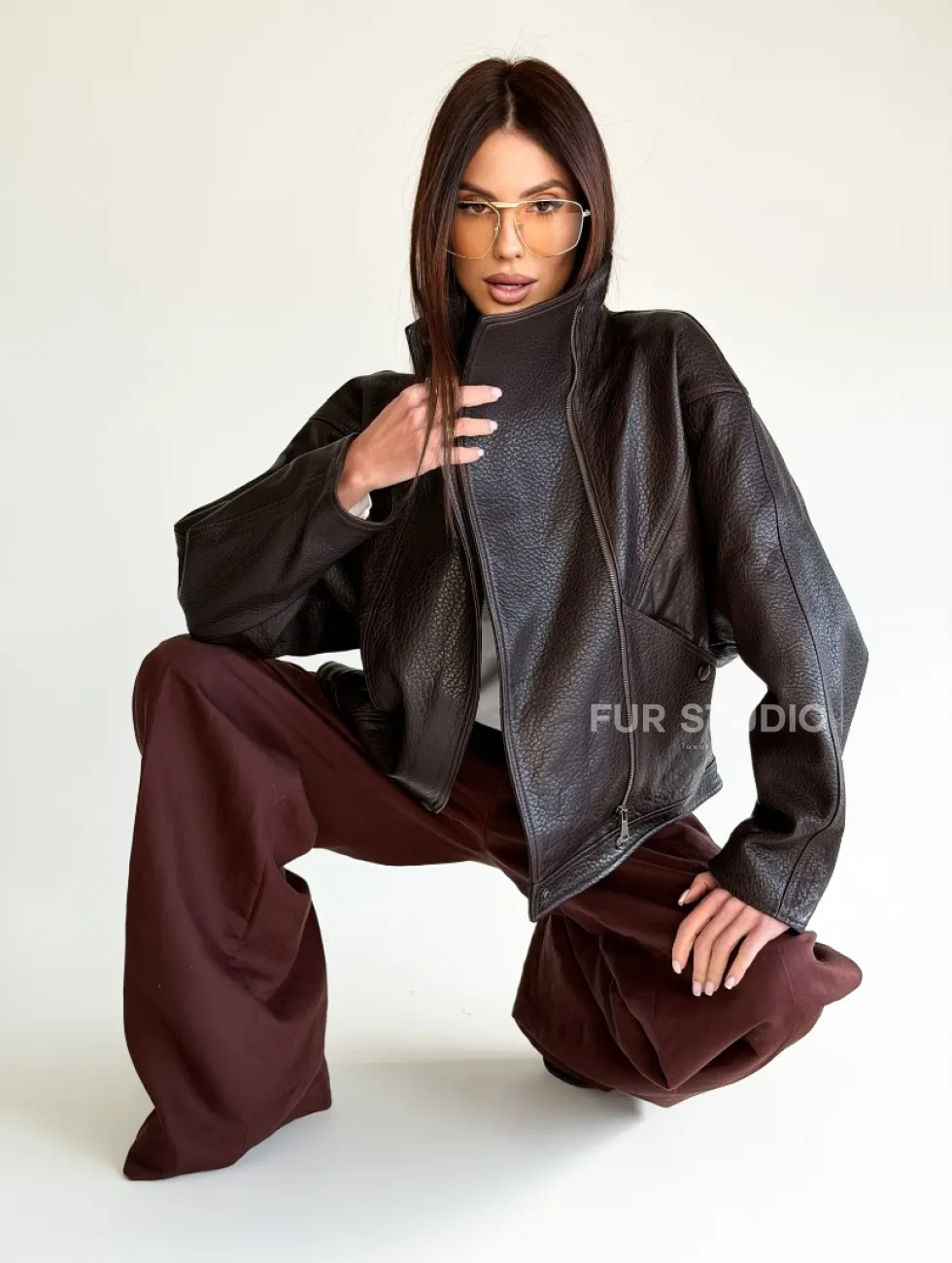 Женская кожаная куртка доступна для покупки в нашем шоуруме Furs Studio в Чите, где также предоставляется удобная доставка во все города России.