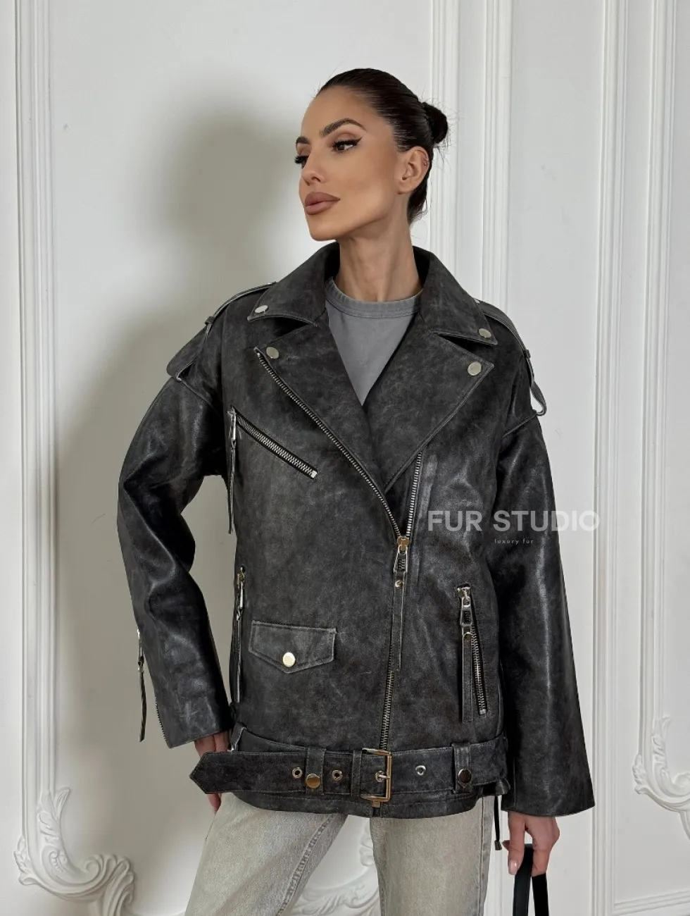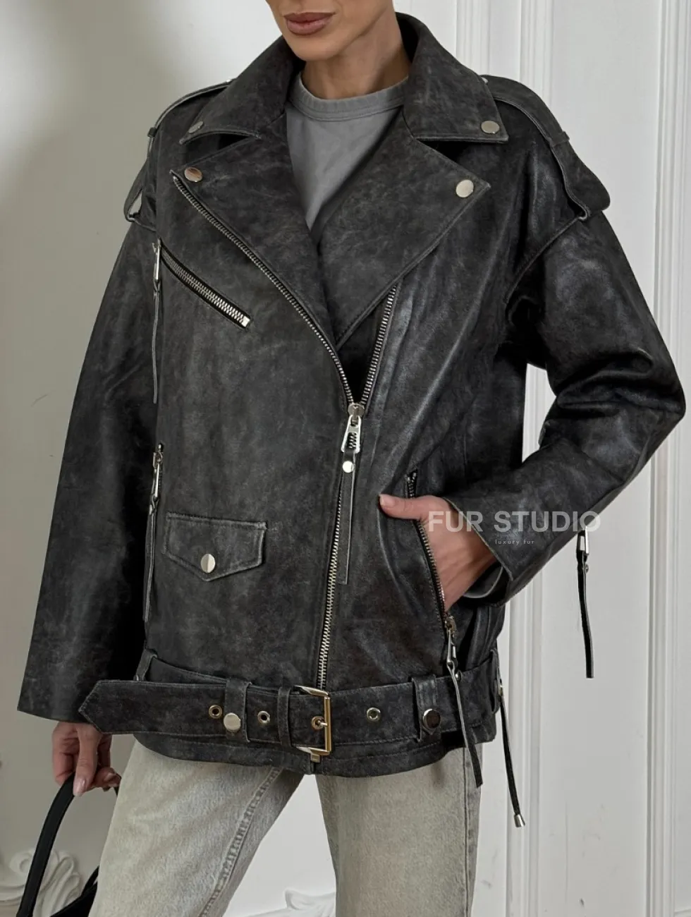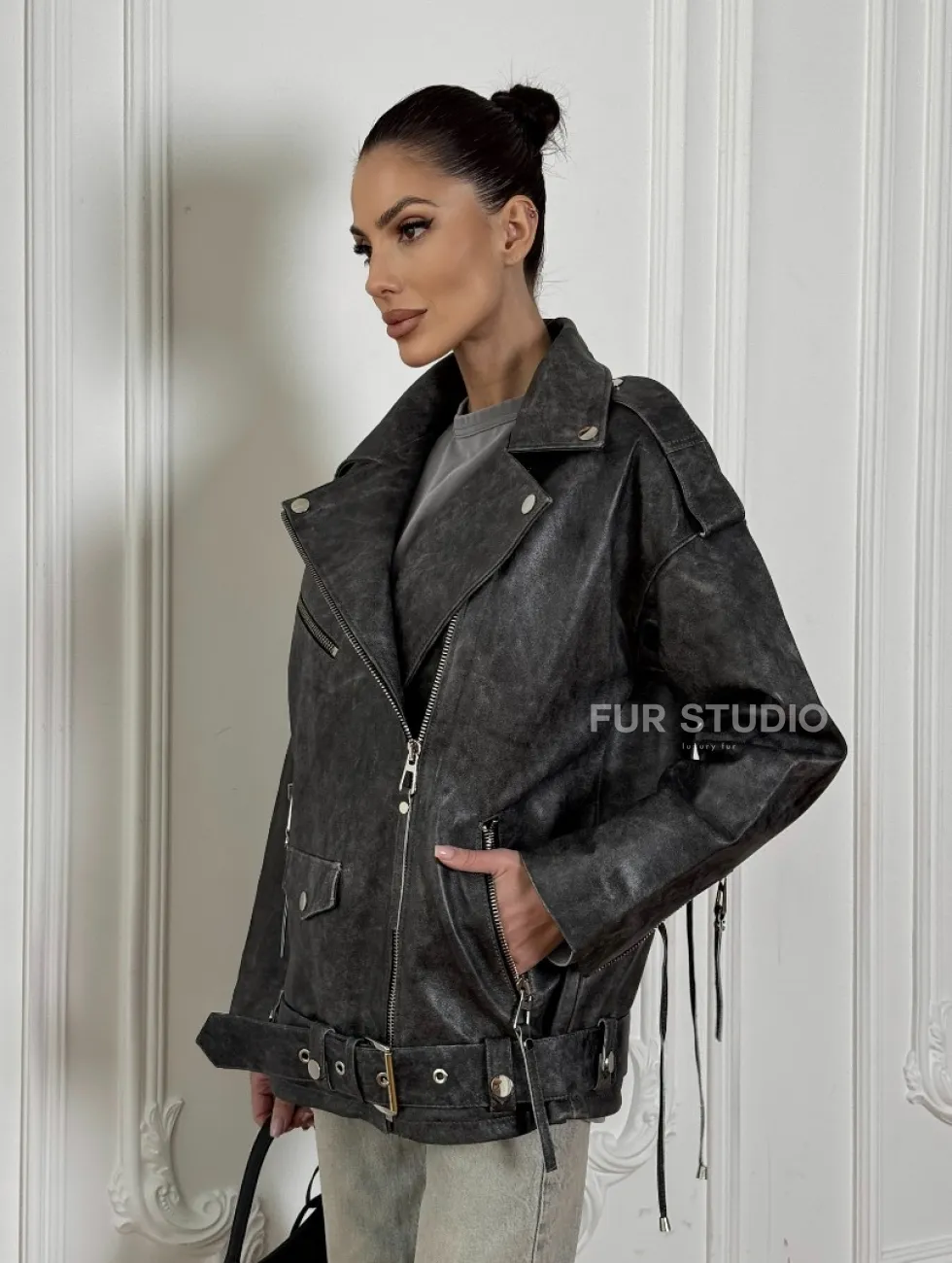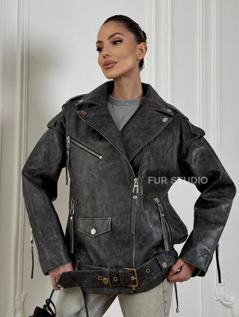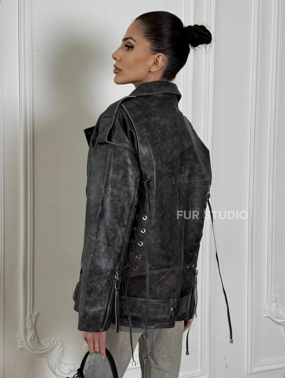 Восхититесь элегантностью и несравненным комфортом с нашей эксклюзивной коллекцией кожаных изделий. Изготовленная из первоклассной натуральной кожи, Женская кожаная куртка авиатор со шнуровкой на спине Dark grey не только согреет вас в прохладные дни, но и подчеркнет ваш изысканный вкус. Уникальный дизайн и высокое качество делают наши представленные образцы идеальным выбором для утончённых образов.