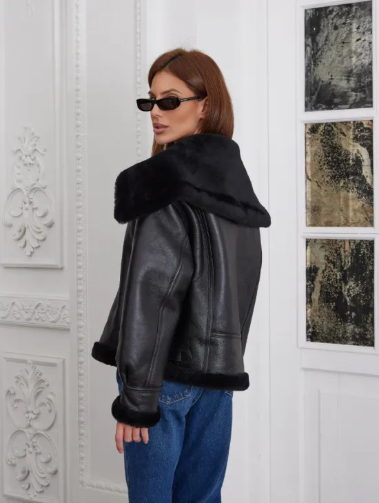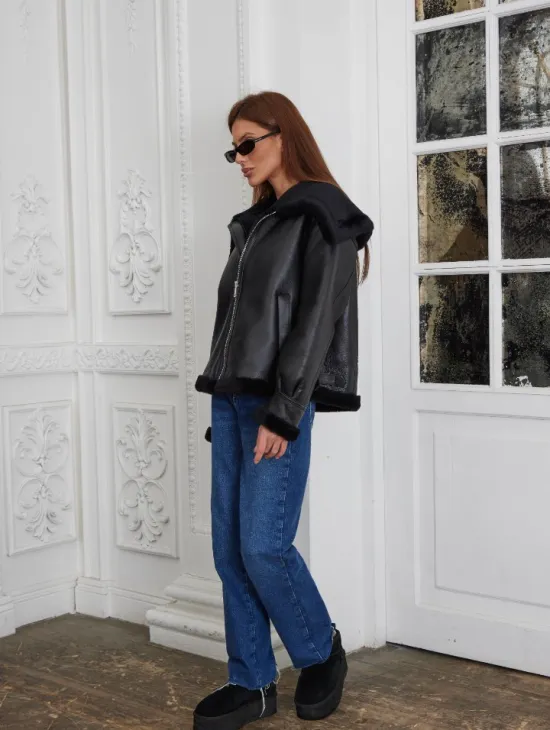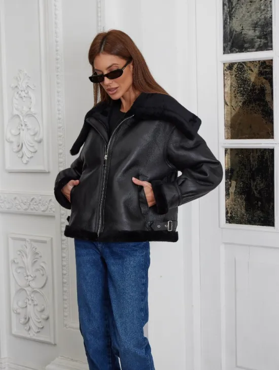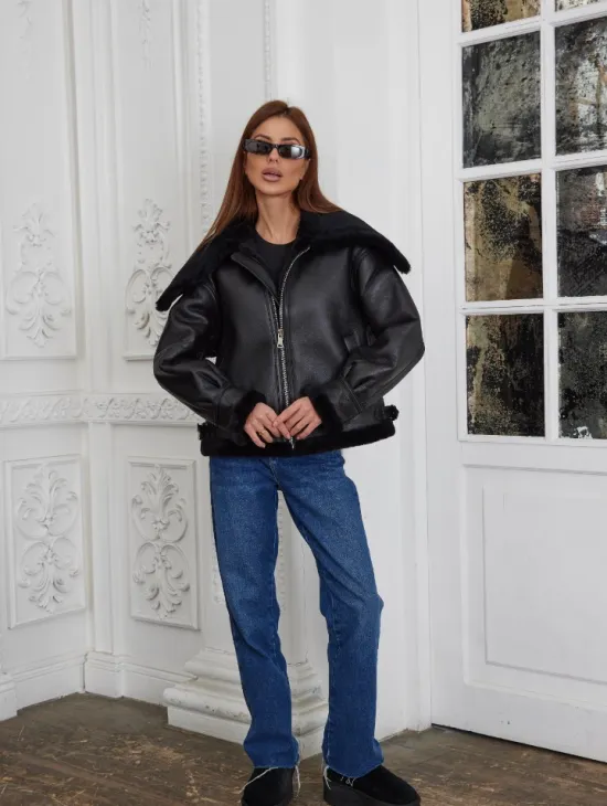 Женская кожаная куртка авиатор со шнуровкой на спине Dark grey доступна для покупки в нашем шоуруме Furs Studio в Чите, где также предоставляется удобная доставка во все города России.