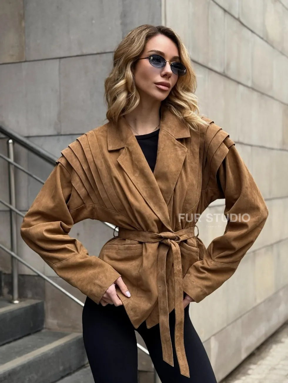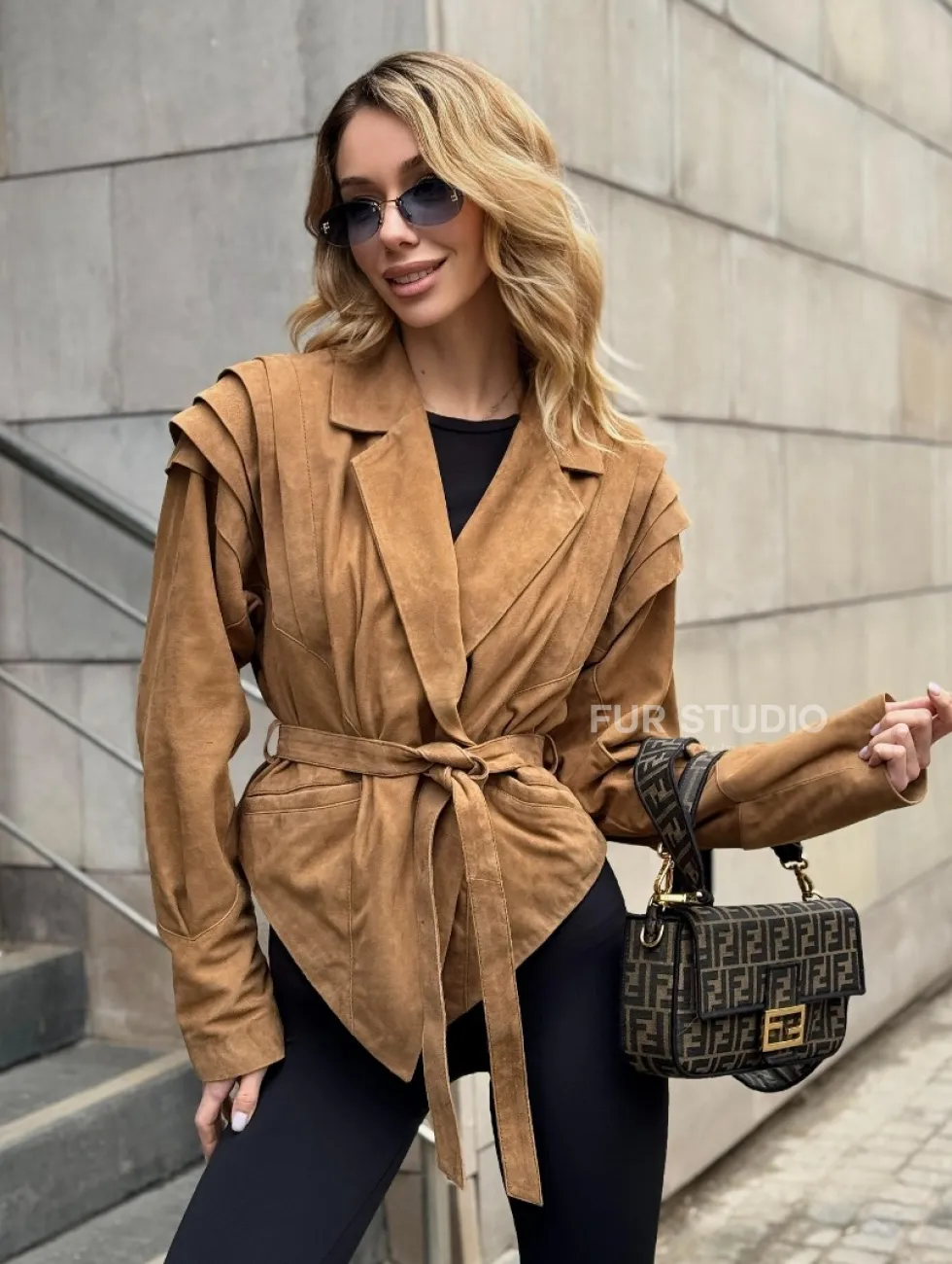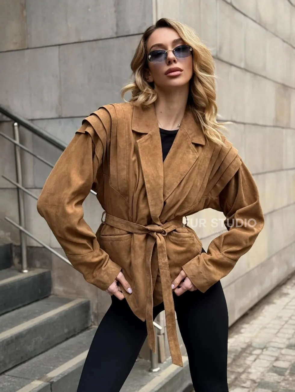 Женская куртка из замшевой кожи с поясом - American style доступна для покупки в нашем шоуруме Furs Studio в Чите, где также предоставляется удобная доставка во все города России.