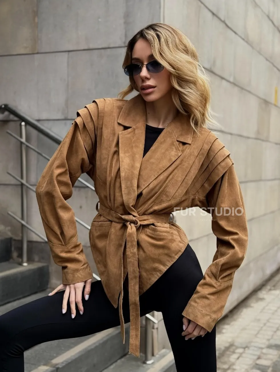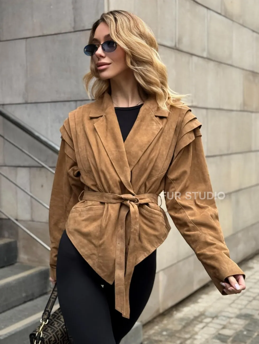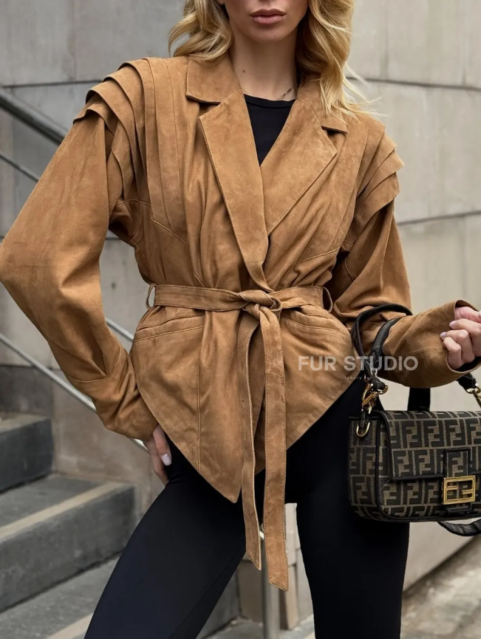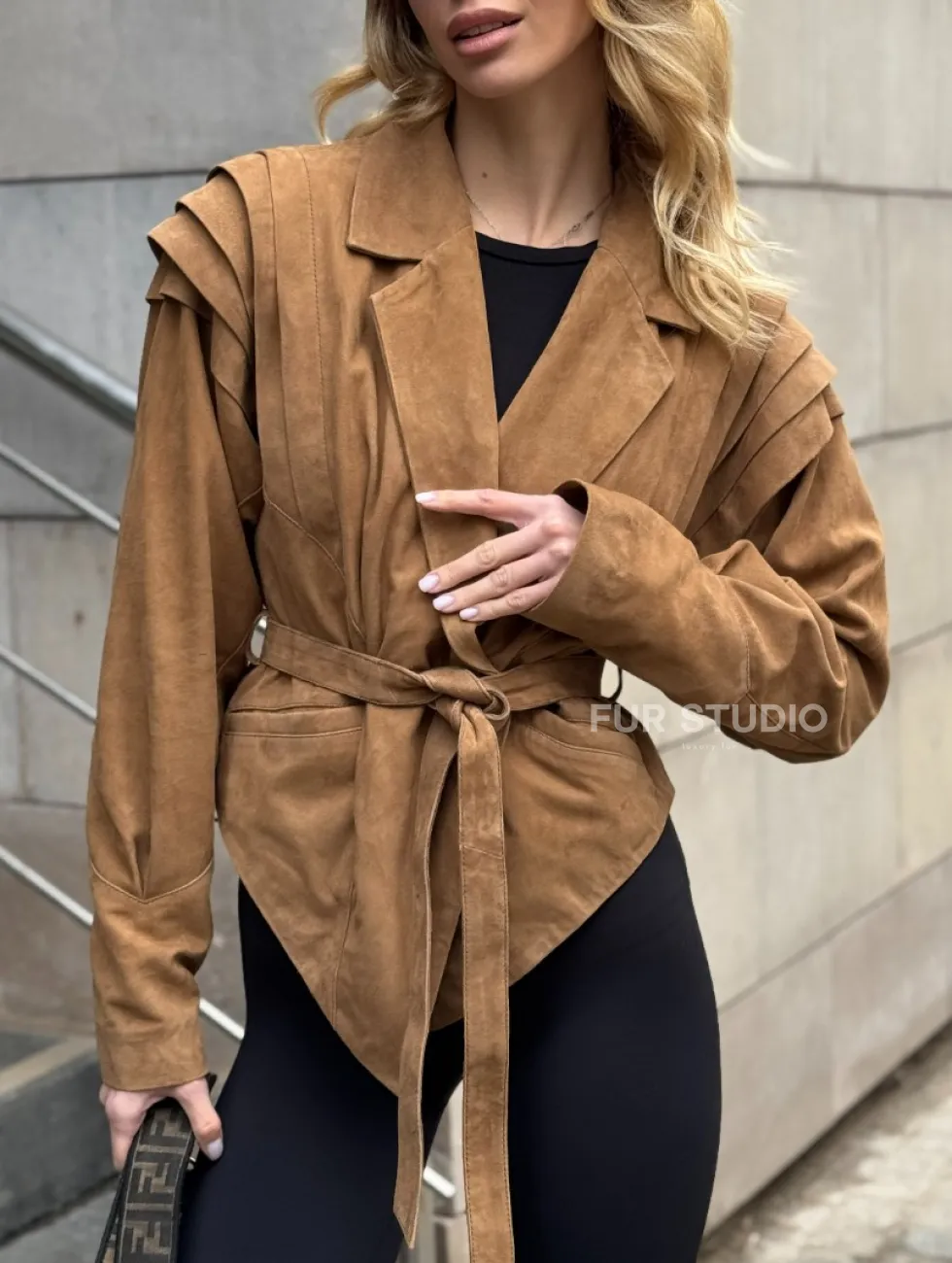 Женская куртка из замшевой кожи с поясом - American style доступна для покупки в нашем шоуруме Furs Studio в Чите, где также предоставляется удобная доставка во все города России.