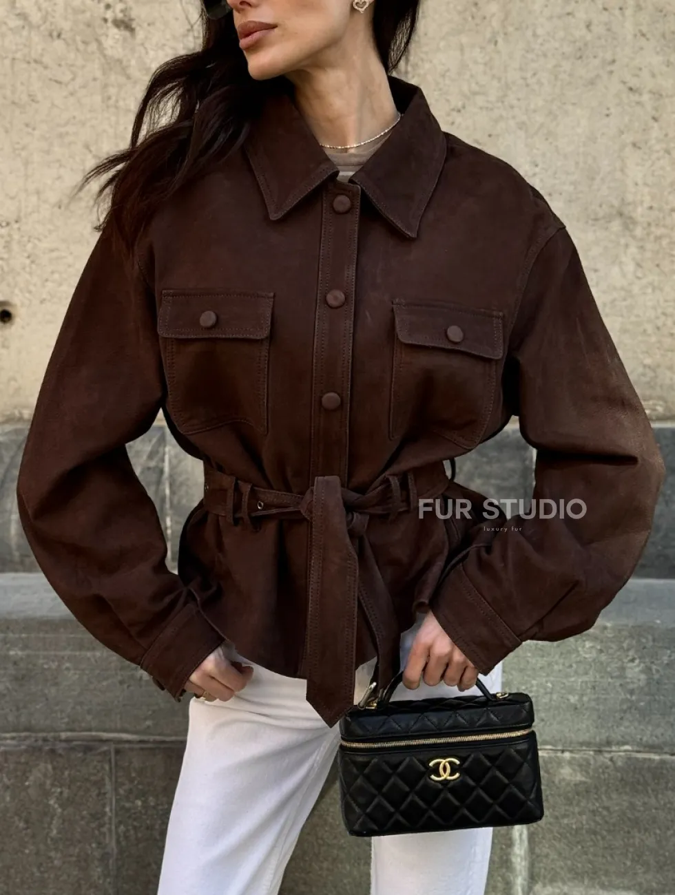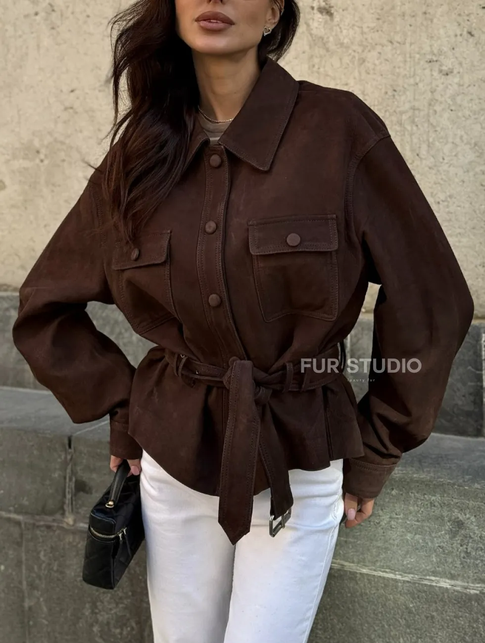 Женская куртка - рубашка из замши доступна для покупки в нашем шоуруме Furs Studio в Чите, где также предоставляется удобная доставка во все города России.