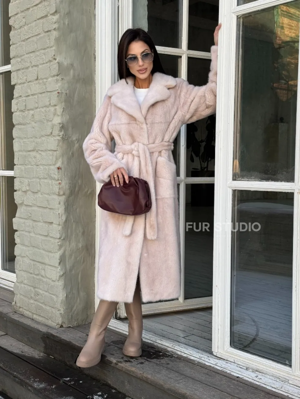 Женская норковая шуба прямого кроя с разрезами по бокам, пояс доступна для покупки в нашем шоуруме Furs Studio в Чите. У нас так же есть доставка во все города России. Добавьте немного роскоши в свой гардероб с этой шубой, которая будет служить вам многие годы.
