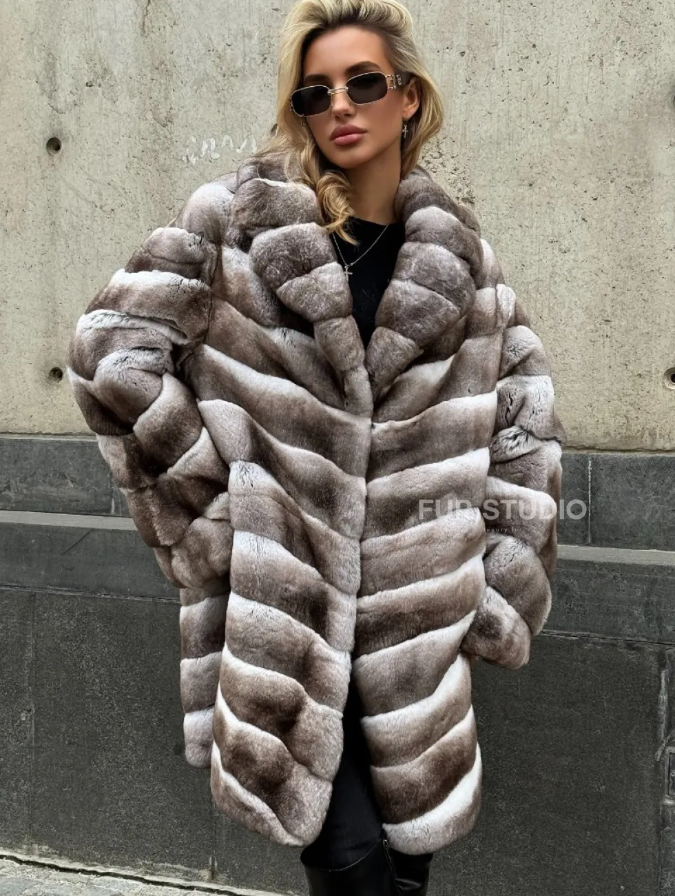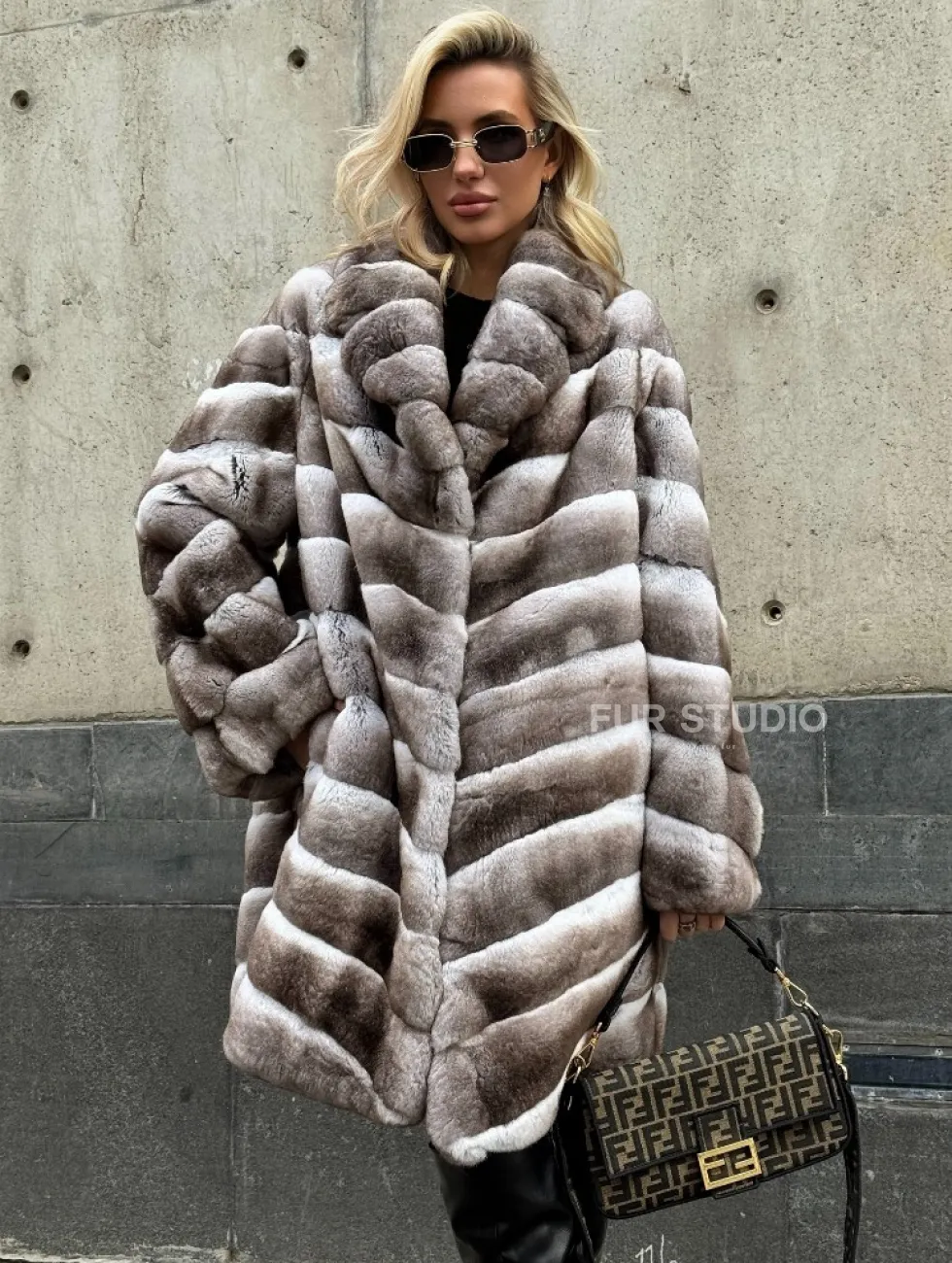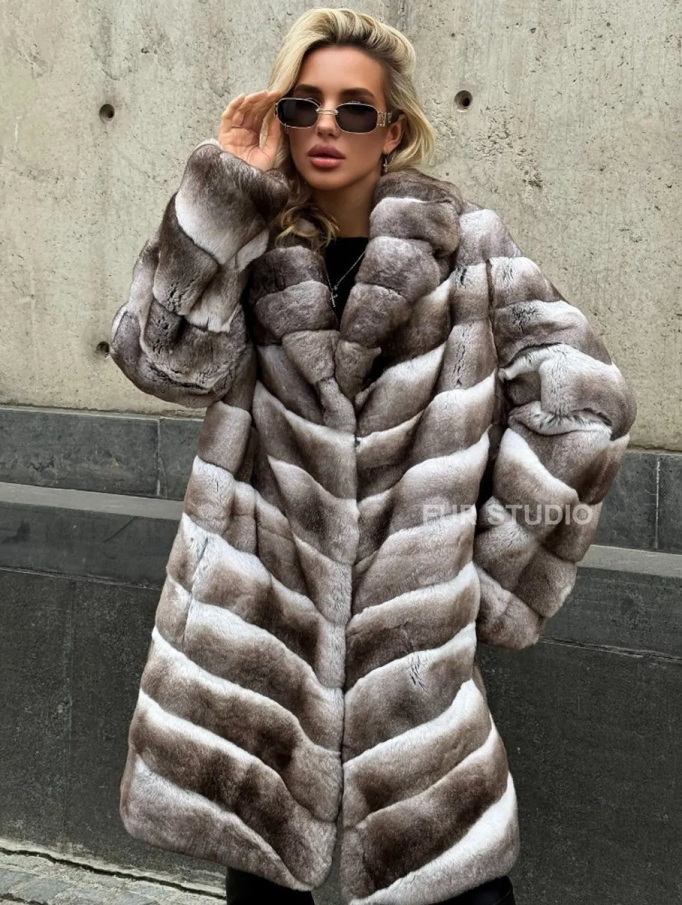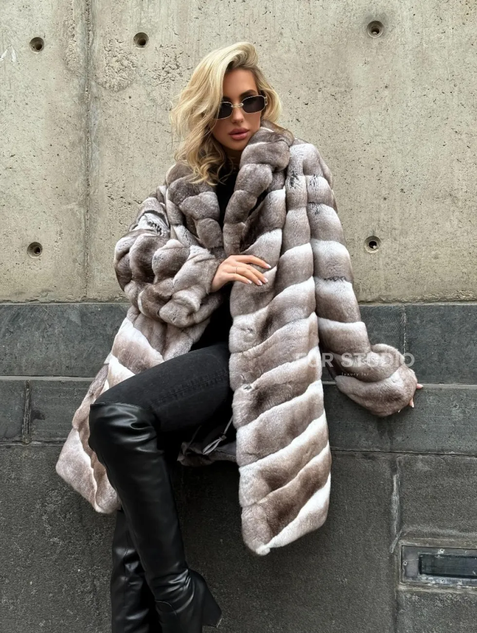 Женская серая шуба из элитного шиншиллового кролика (рекса) с английским воротником доступна для покупки в нашем шоуруме Furs Studio в Чите. У нас так же есть доставка во все города России. Добавьте немного роскоши в свой гардероб с этой шубой, которая будет служить вам многие годы.