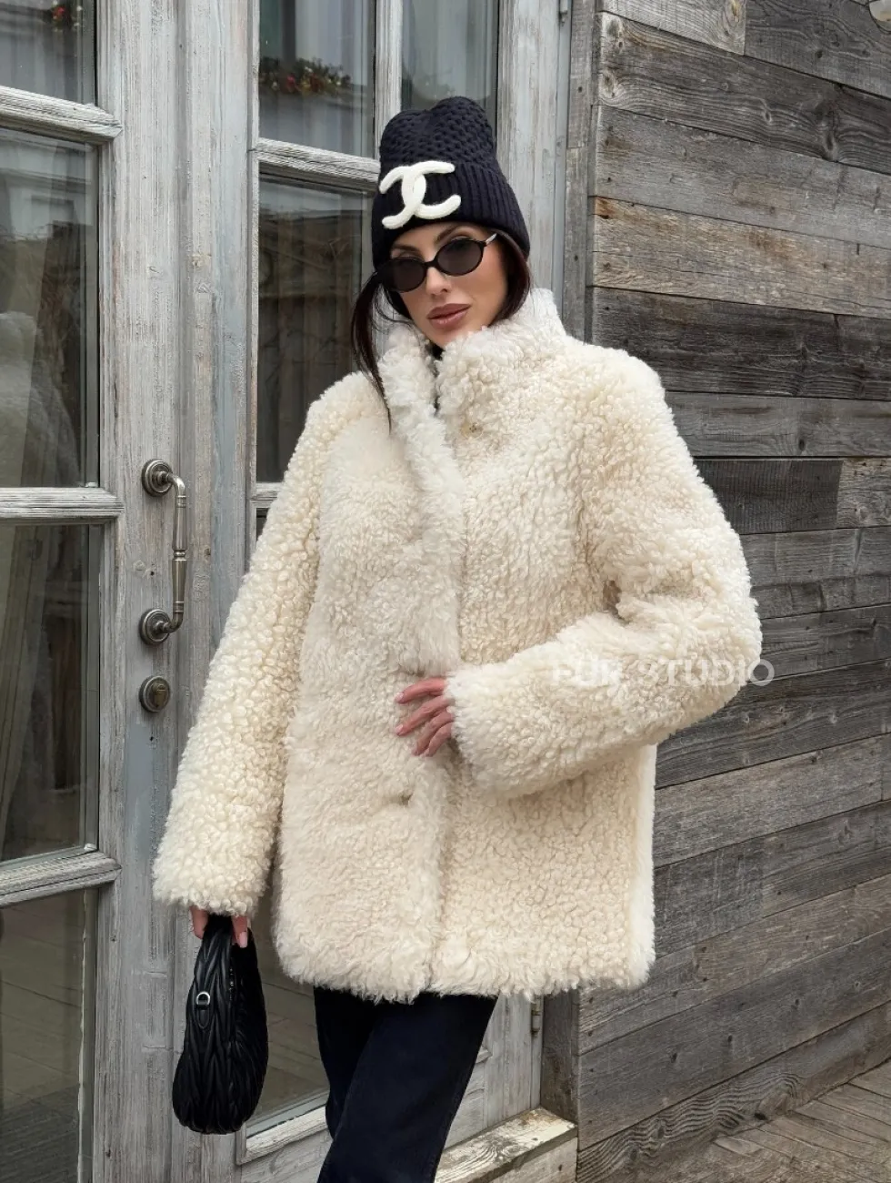 Женская шуба - дубленка двухсторонняя из натурального меха тиградо, стойка воротник доступна для покупки в нашем шоуруме Furs Studio в Чите, а также предлагается удобная доставка во все города России. Обогатите свой гардероб этой дубленкой, которая прослужит вам многие годы, добавив немного роскоши в ваш повседневный образ.